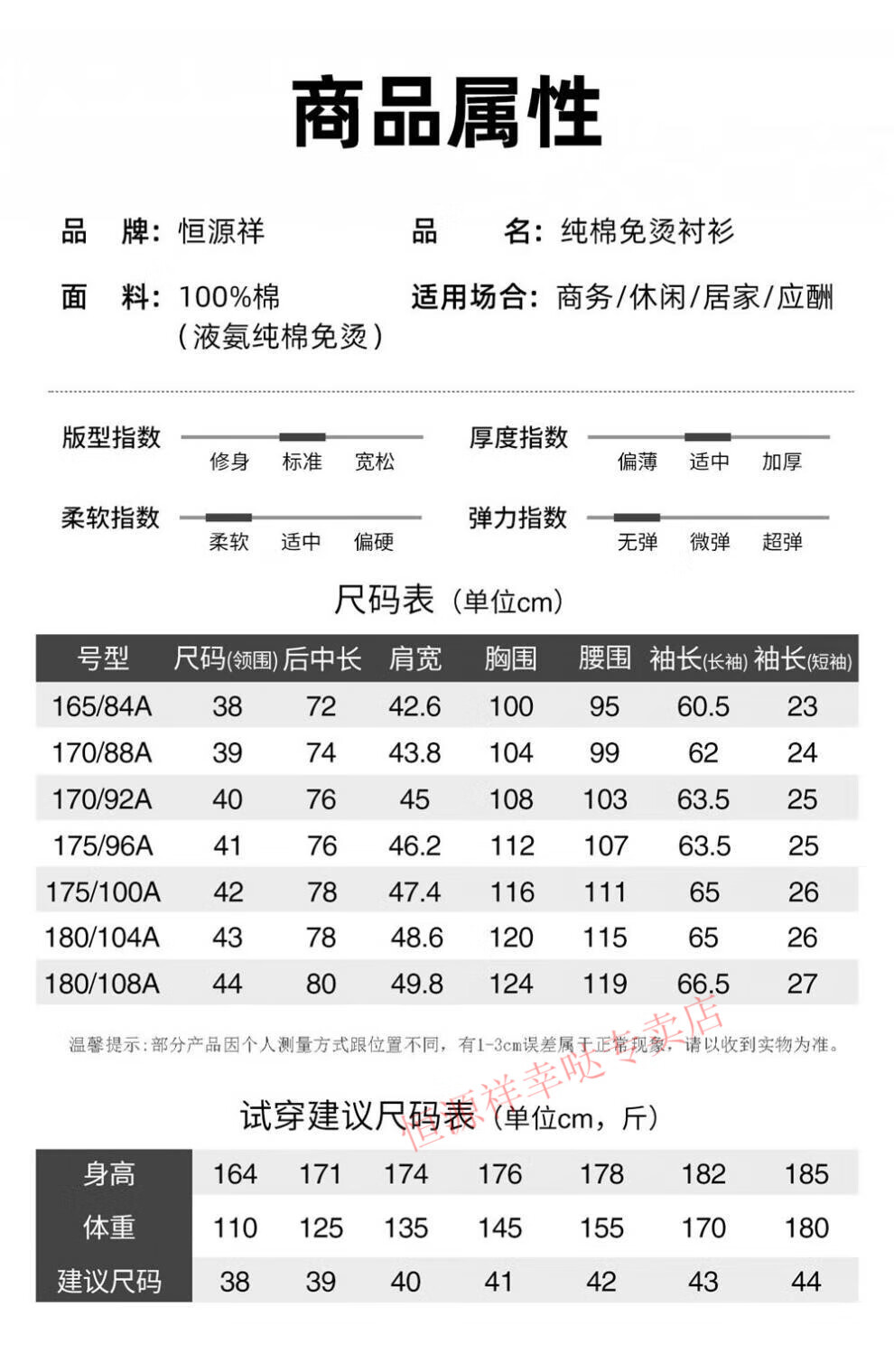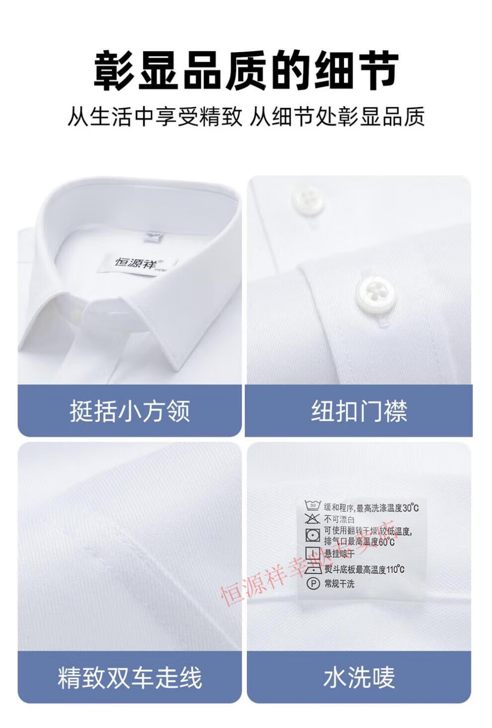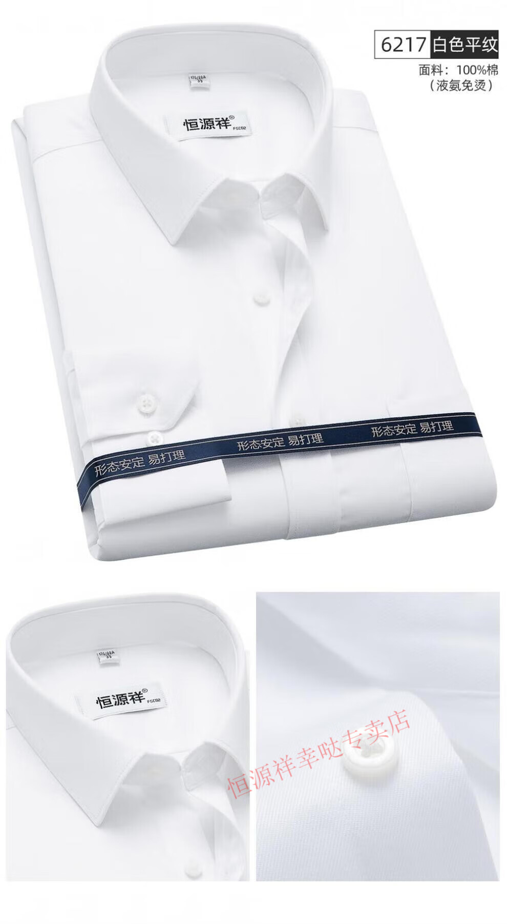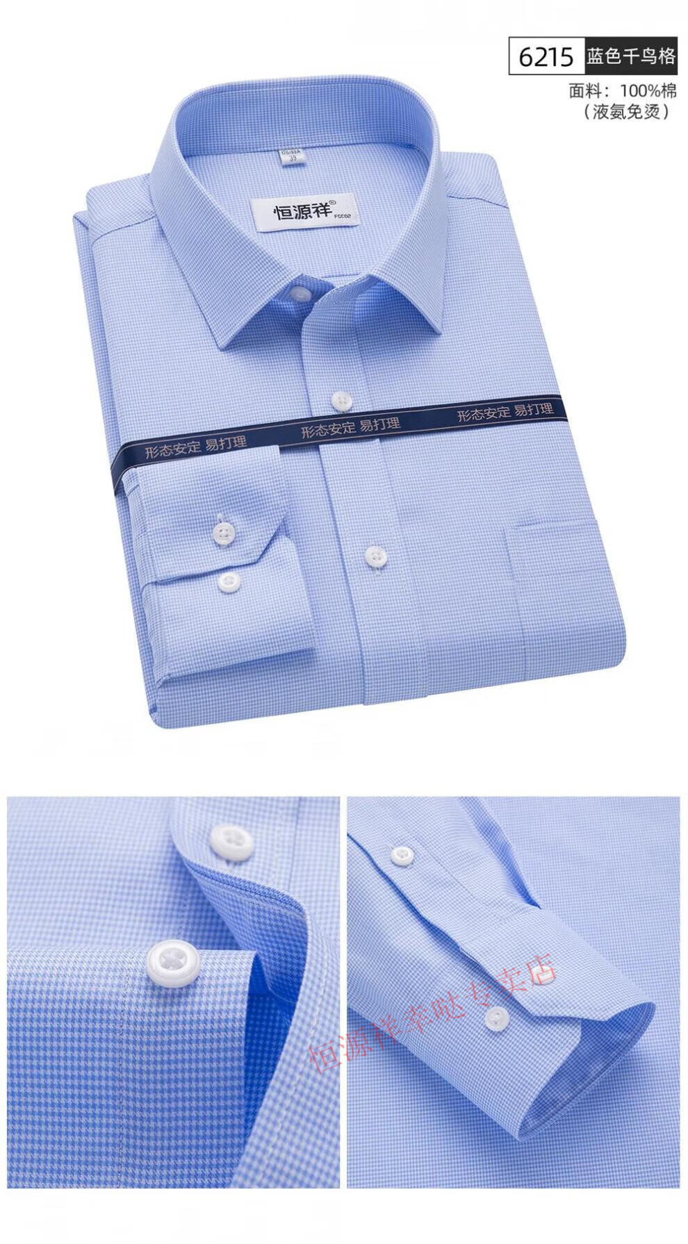 恒源祥100%纯棉免烫长袖白衬衫男士高档春秋季商务休闲正装西装衬衣男装 长 袖6623浅蓝条纹【纯全新100】 38 [体重100斤-125斤]