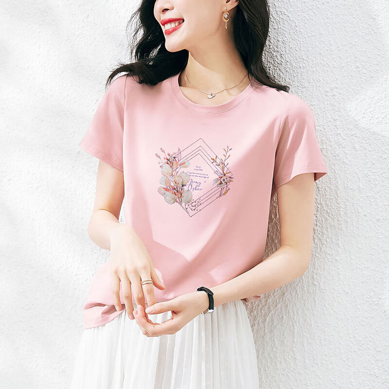 子耳气质女士短袖高档女时尚一点2025广州十三行夏季纯棉t恤宽松衫 6172灰粉 短.袖 M (建议80至105斤)