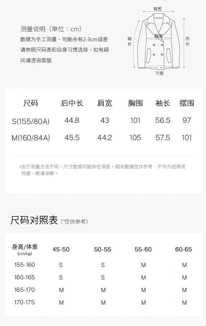 China (cm) 160-165/84-86 165-170 / 88-90 167-172 / 92-96 168-173 / 98-102 170-176 / 106-110