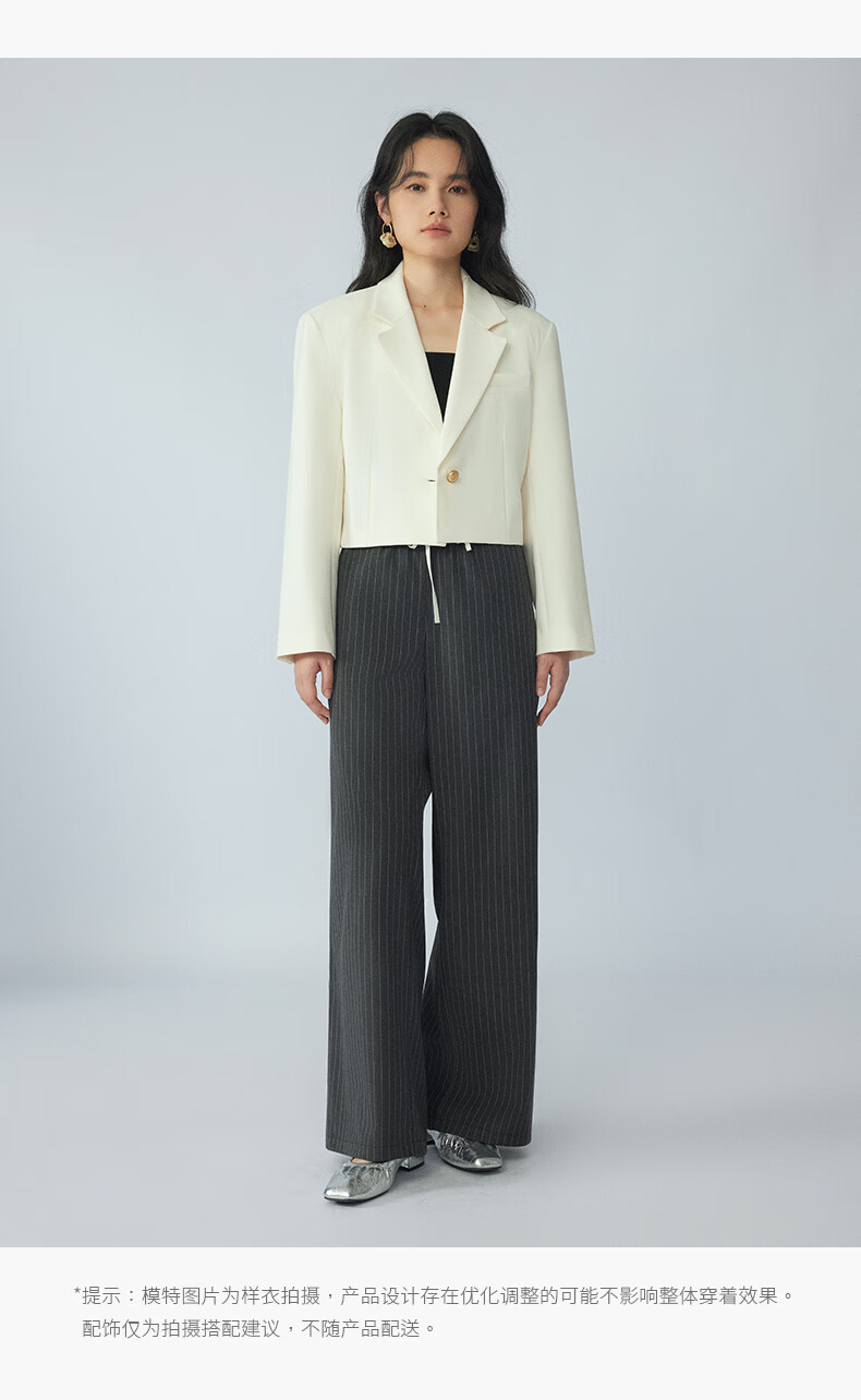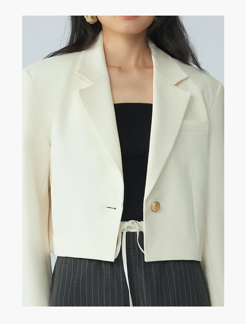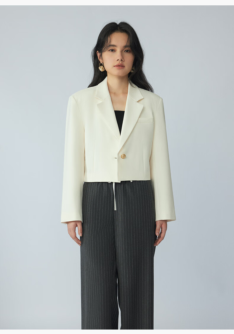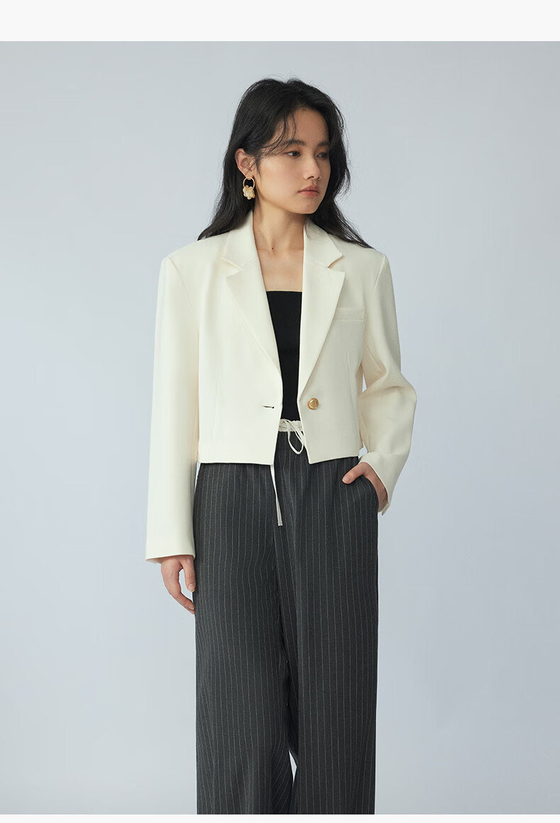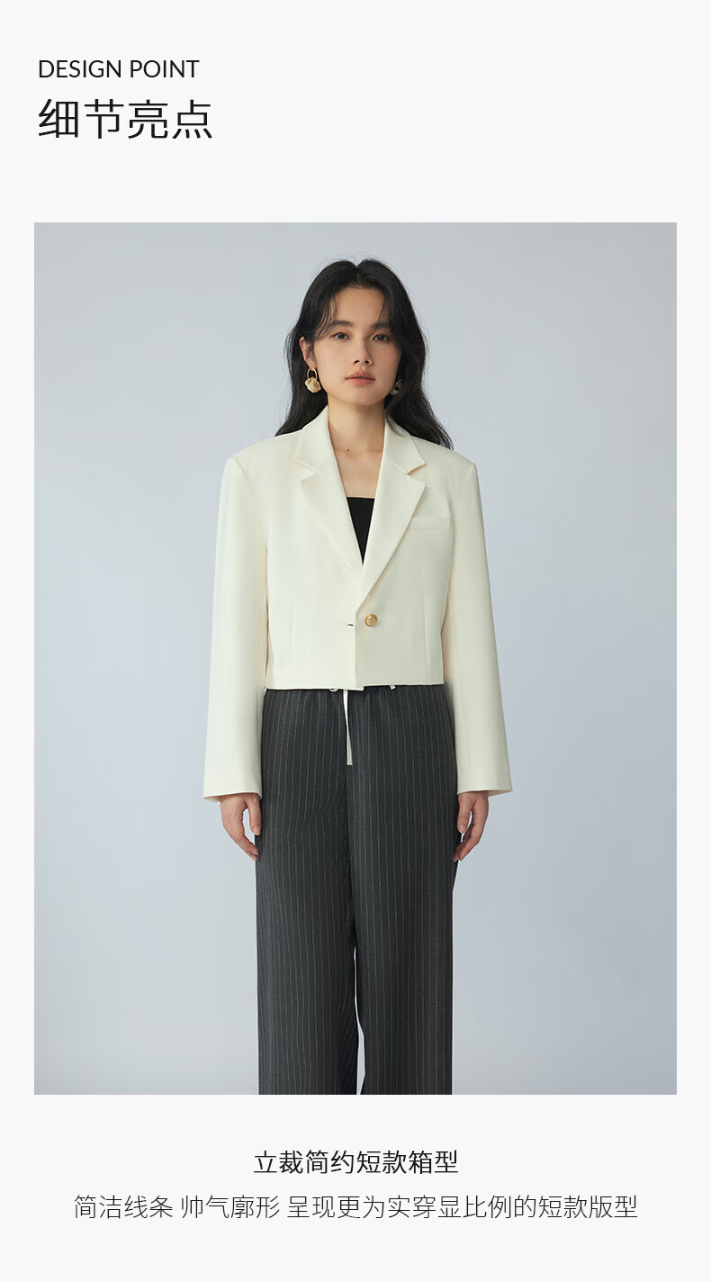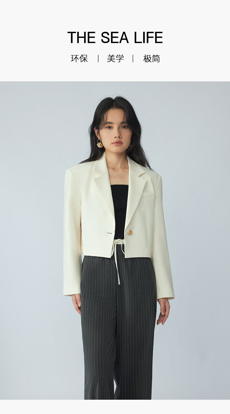 THE SEA LIFE休闲西装女2025春新款女装正肩一粒扣枪驳领西装外套15253 白桦色 S