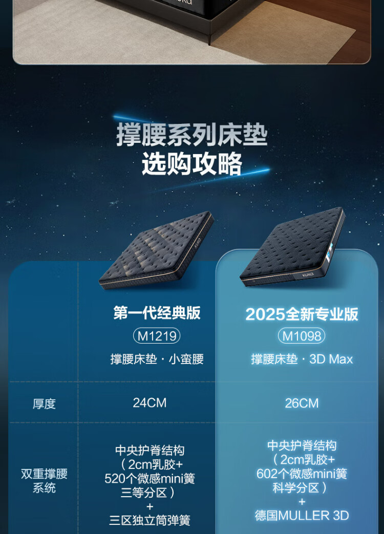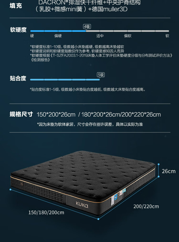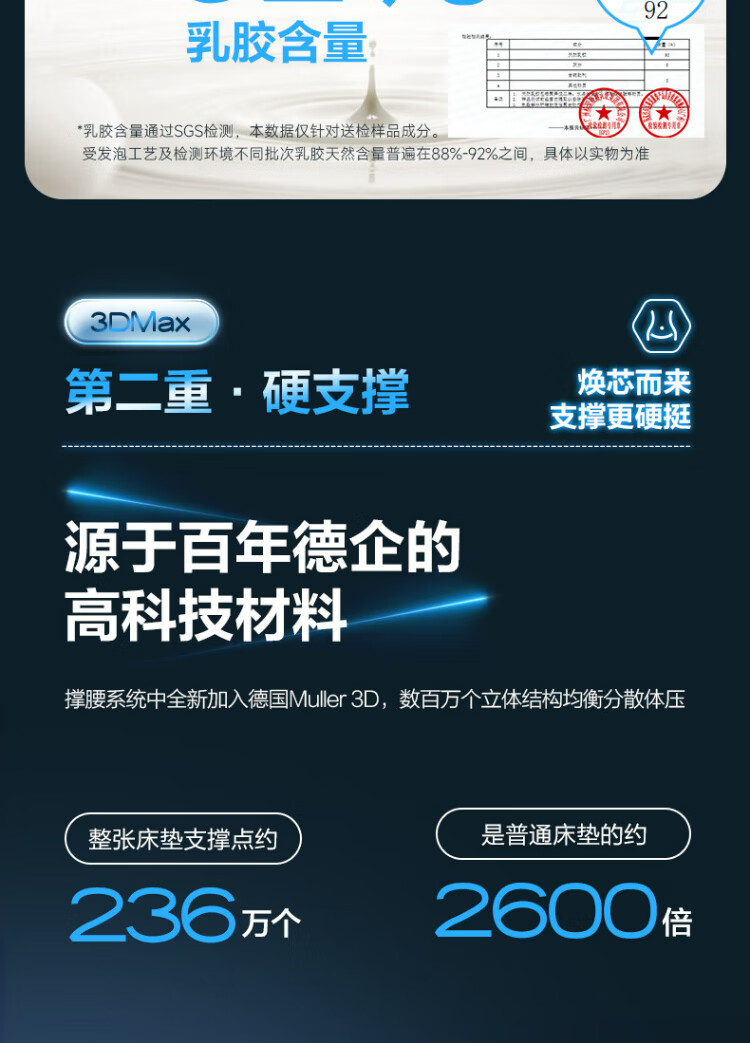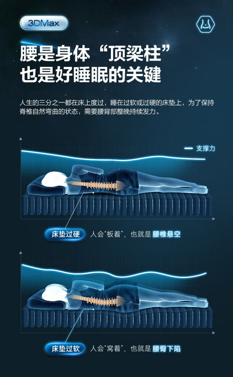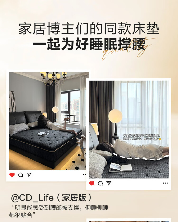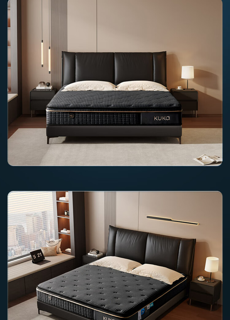 顾家家居【撑腰.3Dmax】床垫护脊支撑天然乳胶舒睡卧室撑腰床垫-M1098 撑腰床垫3DMAX+极夜黑真皮床1.8m