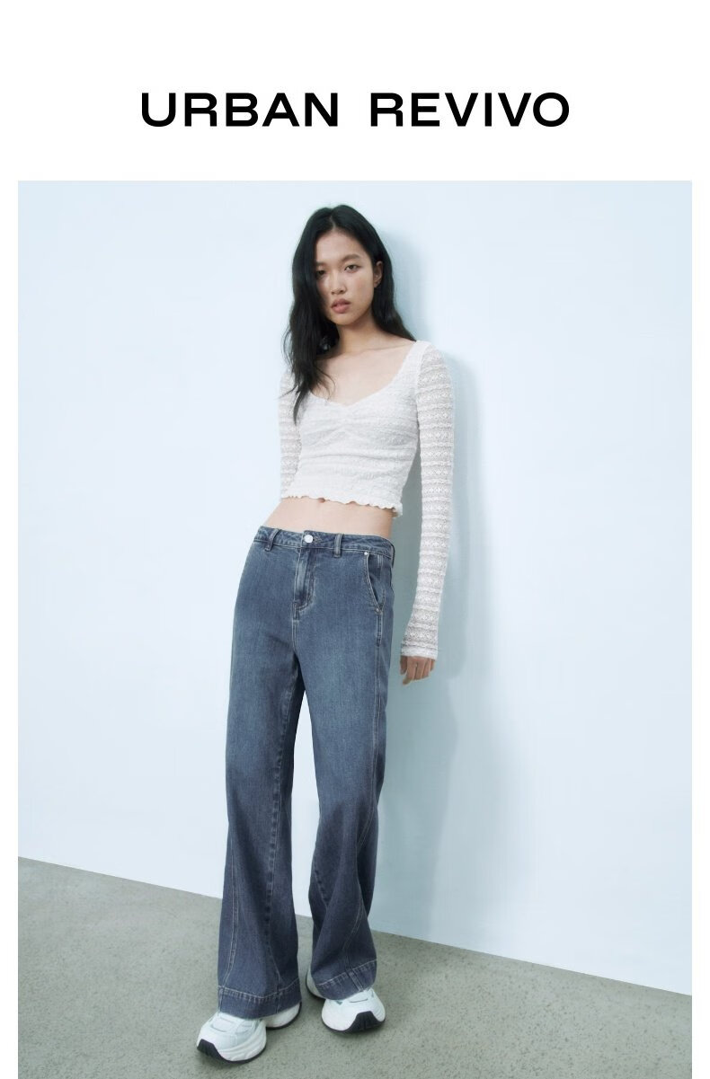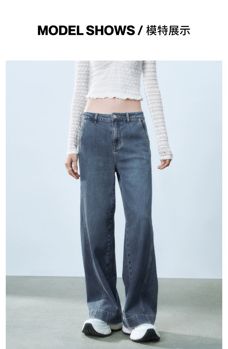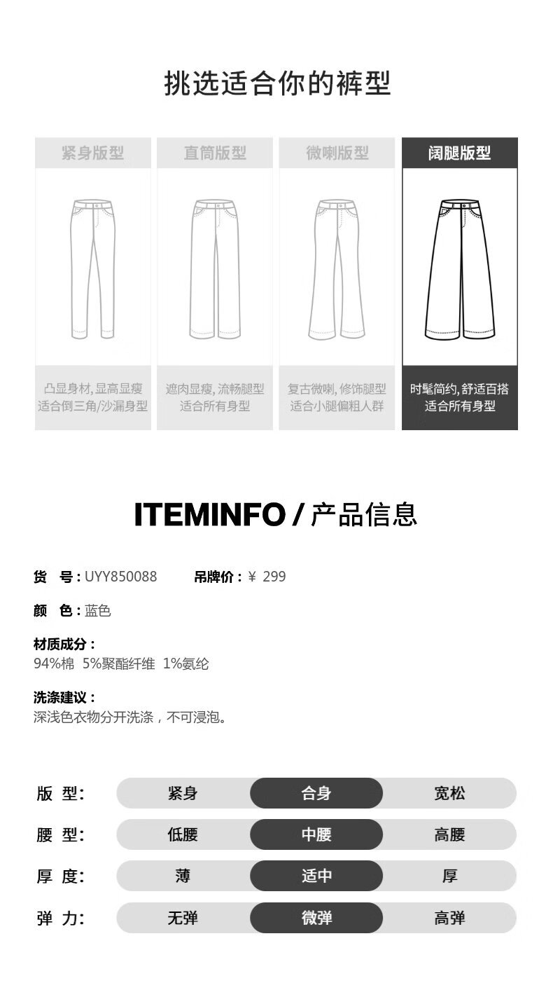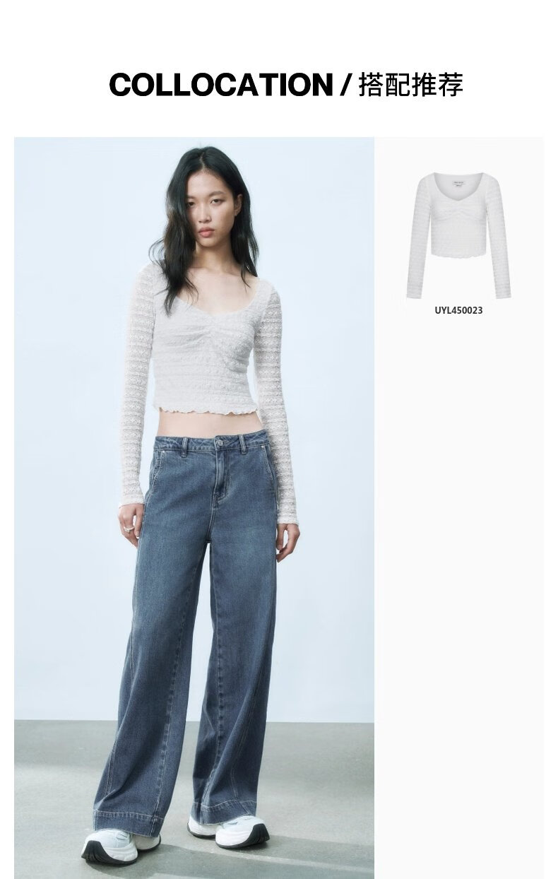 UR2025春季新款女装休闲复古水洗阔腿牛仔长裤UYY850088 蓝色 27