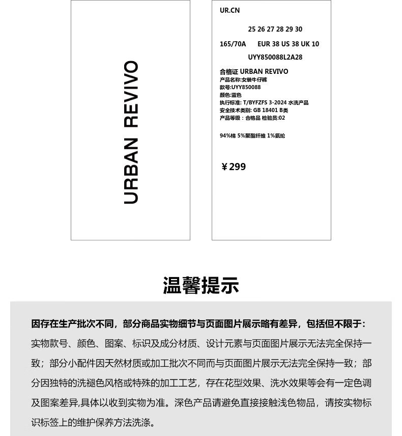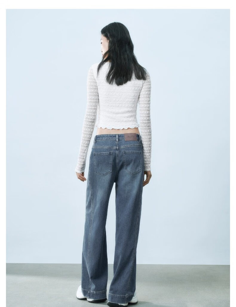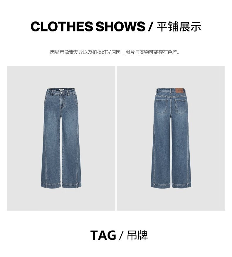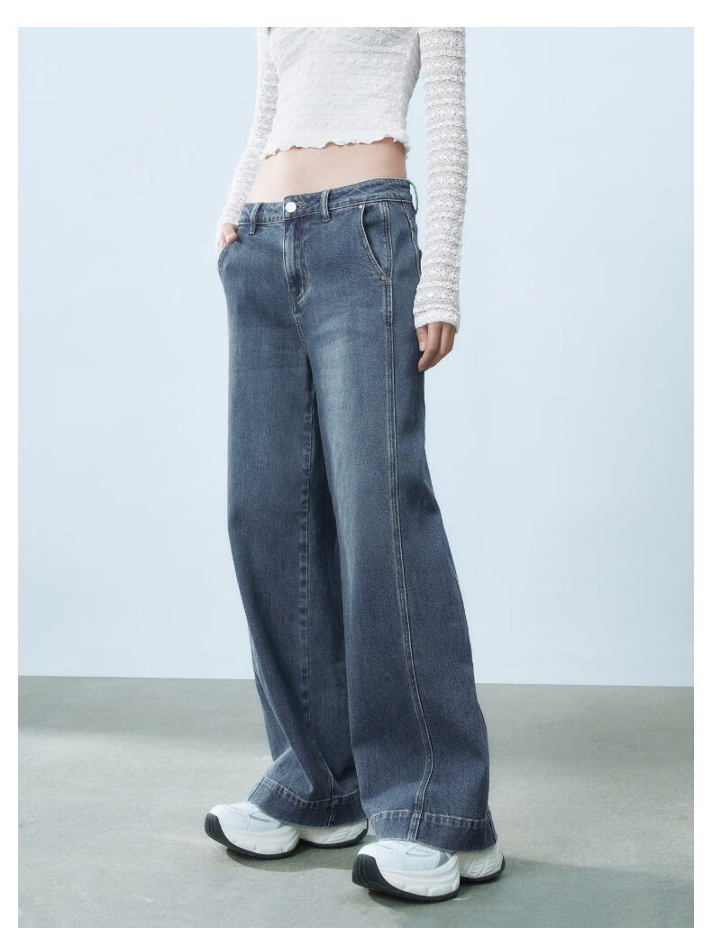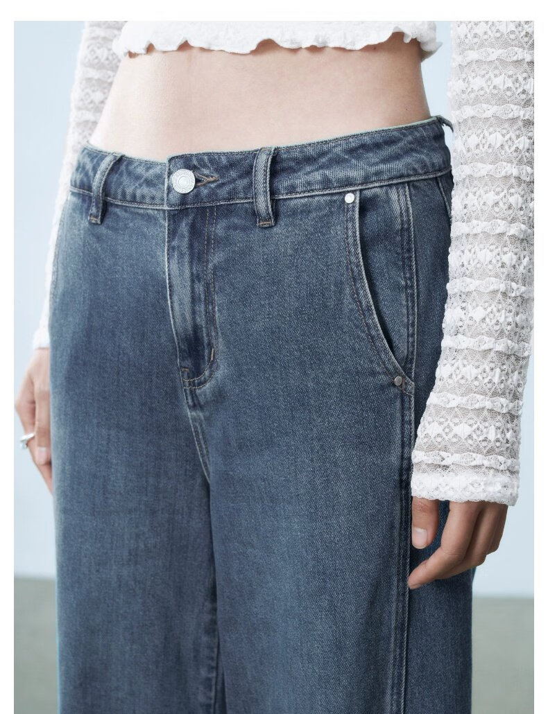 UR2025春季新款女装休闲复古水洗阔腿牛仔长裤UYY850088 蓝色 27