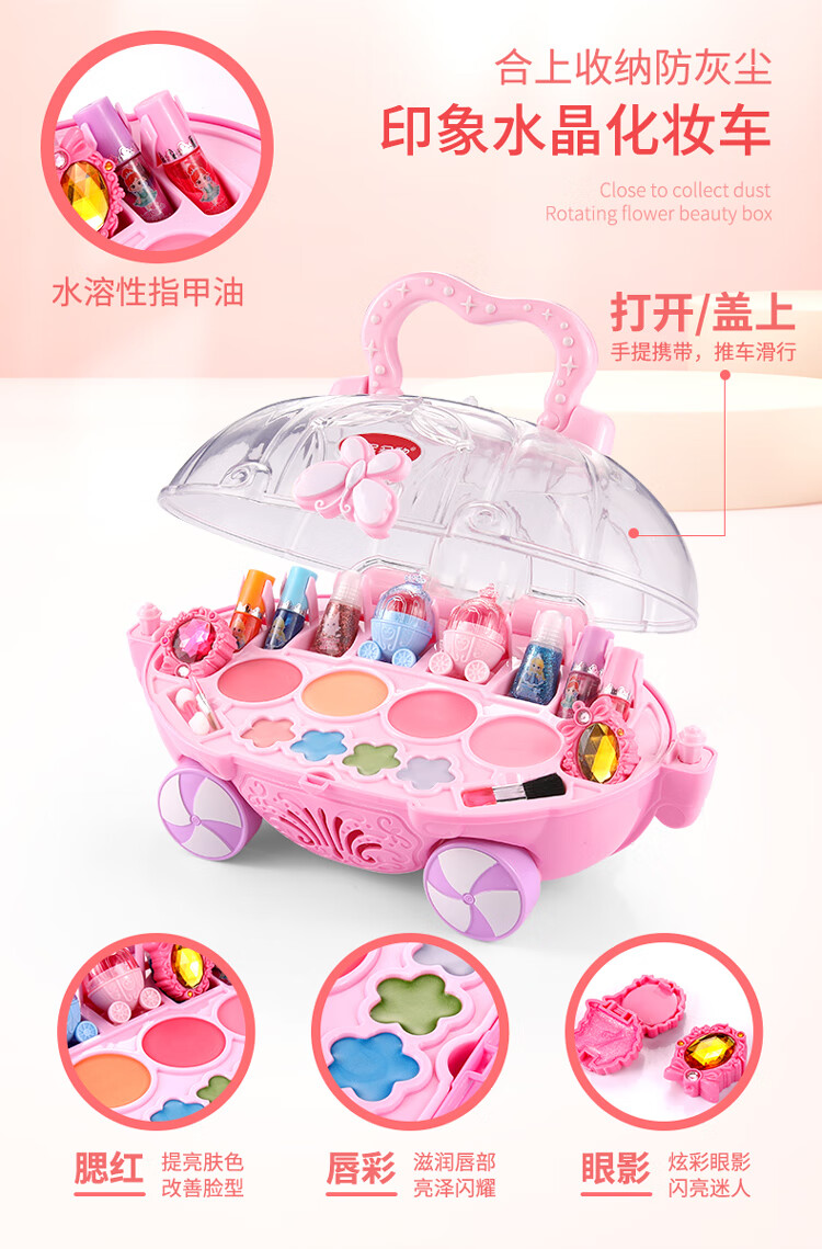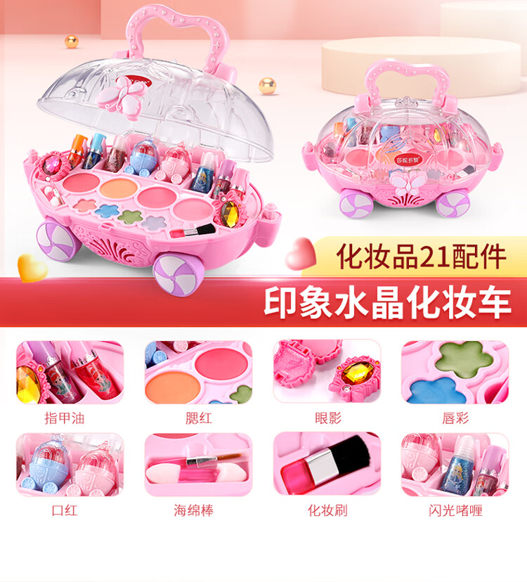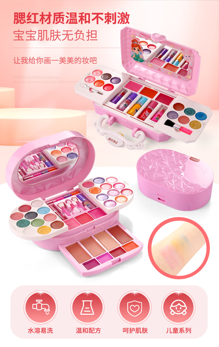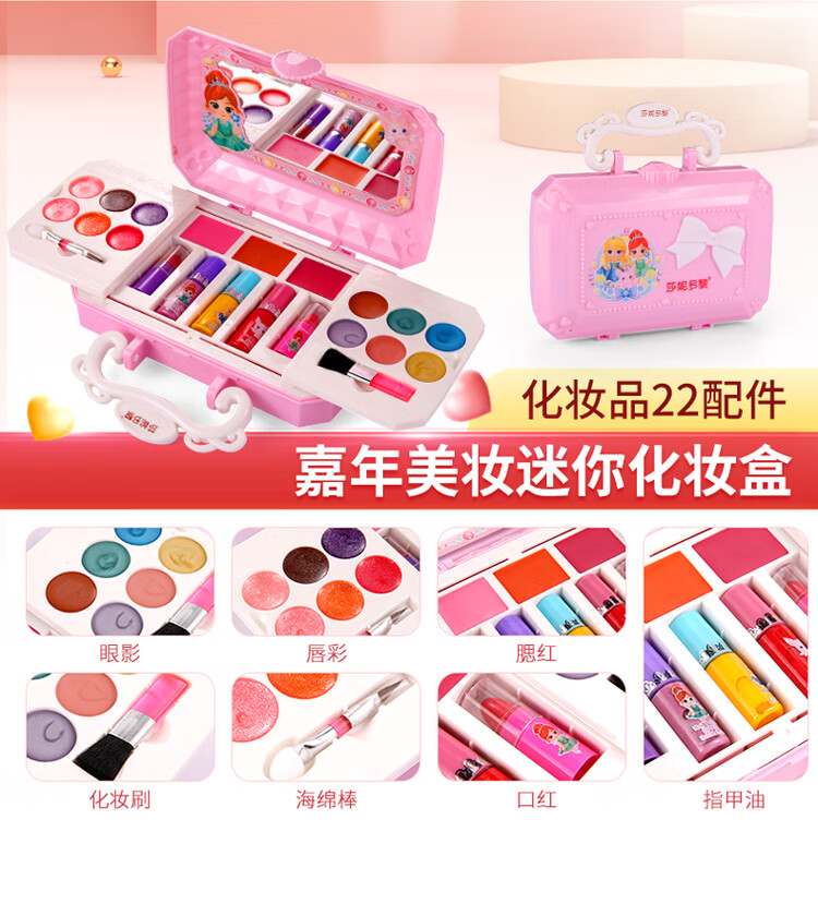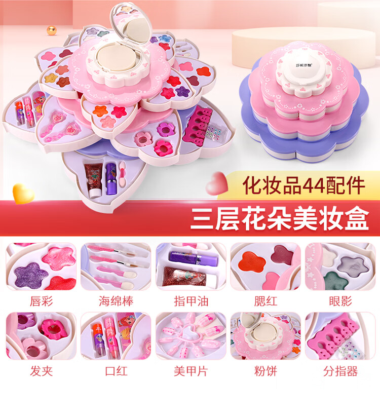 创京懿选儿童化妆品变装套盒女孩公主彩妆玩具 双层甜心蛋糕美妆盒【6配件】