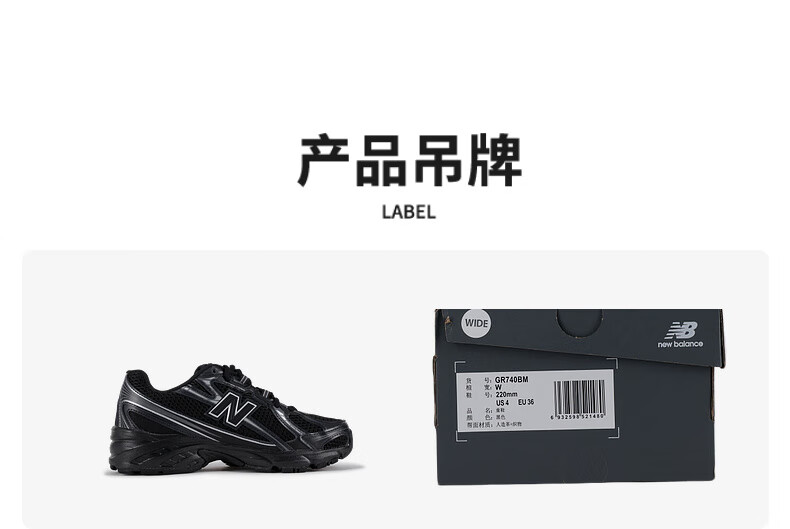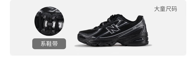 NEW BALANCE nb童鞋0-14岁小中大男女儿童网面透气舒适减震科技休闲运动鞋740 黑色740BM 28.5 (脚长17cm)