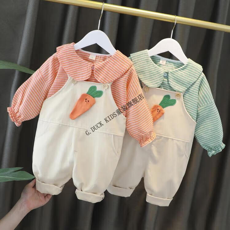 G.duck kleine gelbe Ente Mädchenanzug Frühling und Herbst neue Kinderkleidung Baby Mädchen Overall Anzug zweiteiliges Set für Säuglinge und Kleinkinder Orange 100 Größe 2~3 Jahre alt 90-100 cm cm