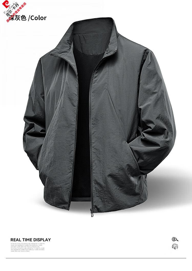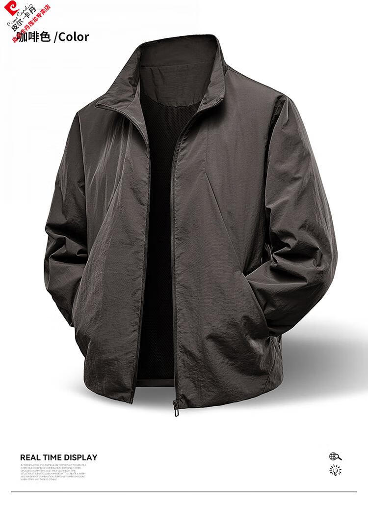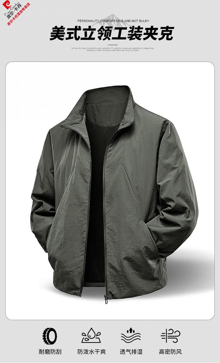 皮尔卡丹(pierre cardin)外套男春秋季2025新款百搭休闲防风防水宽松透气三防立领上衣夹克 深灰 XL =130-145斤
