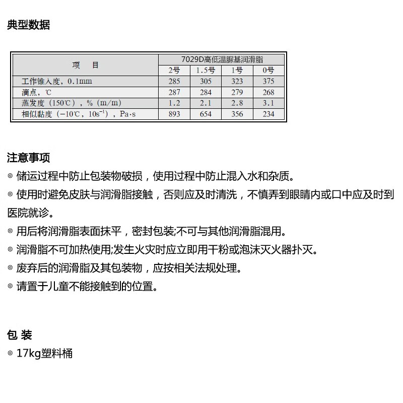 长铁7029D2号高低温脲基润滑脂-40C180C轴承齿轮脂17kg