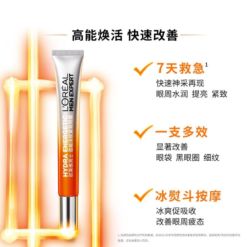 欧莱雅 L'OREAL男士眼霜提亮眼周改善眼袋提拉紧致抗皱日夜眼霜减少淡化细纹皱纹 欧莱雅男士劲能抗皱紧致眼霜两