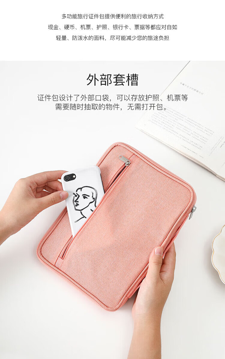 仙僖俫证件收纳包大容量多功能票据夹护照保护套文件户口本外套整理袋盒 小号-灰