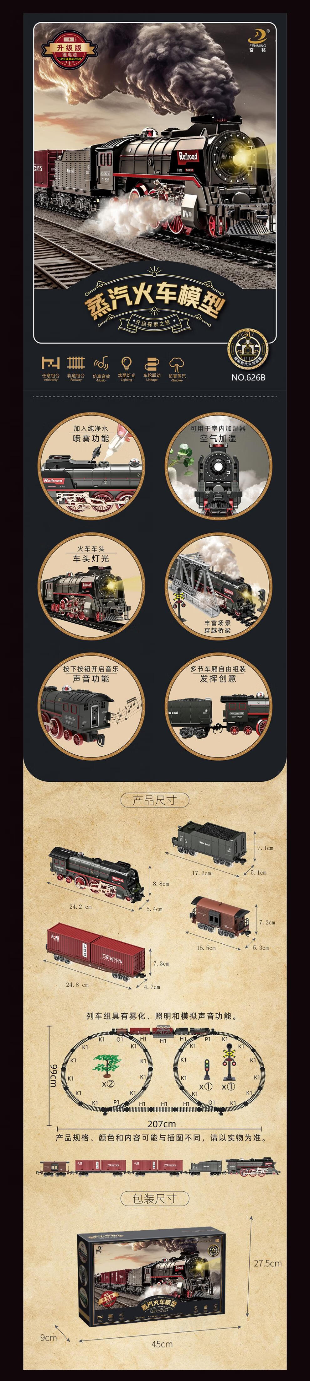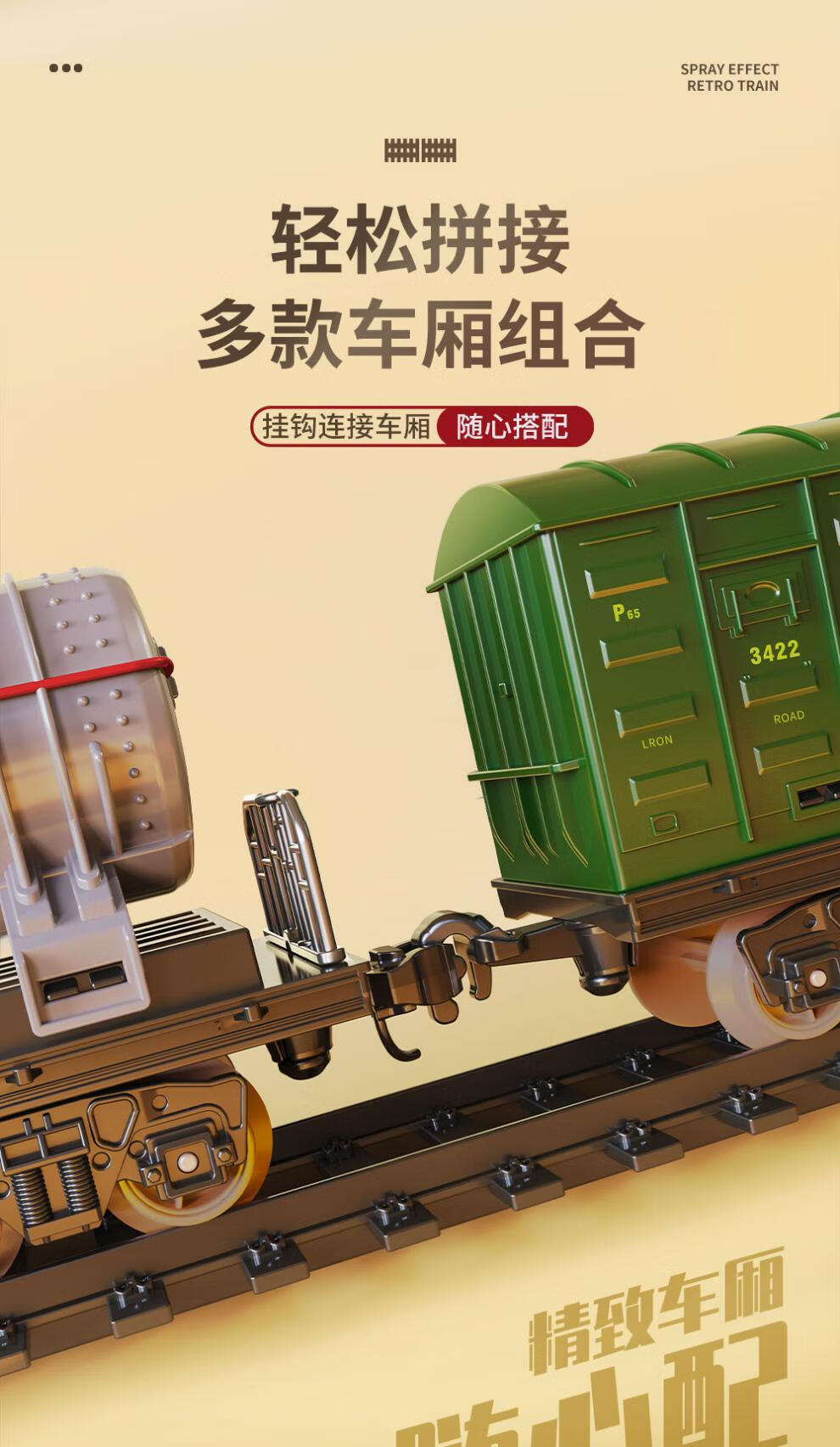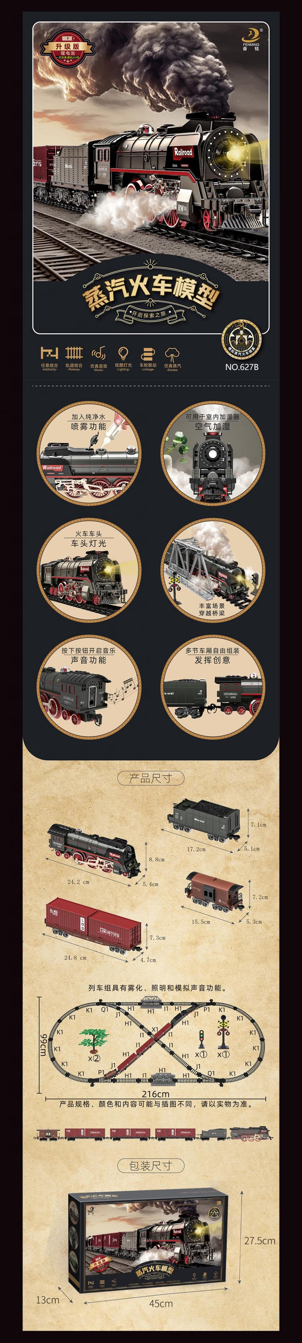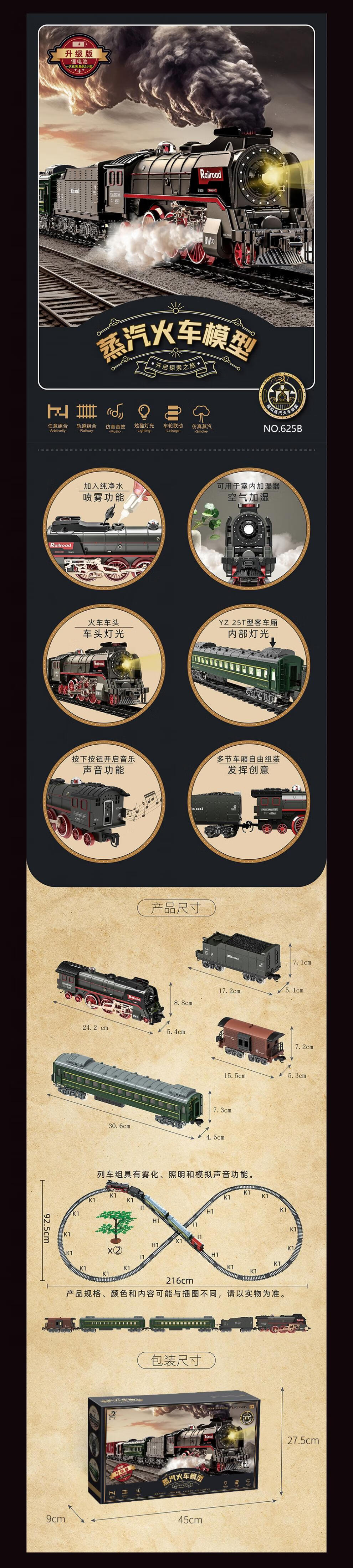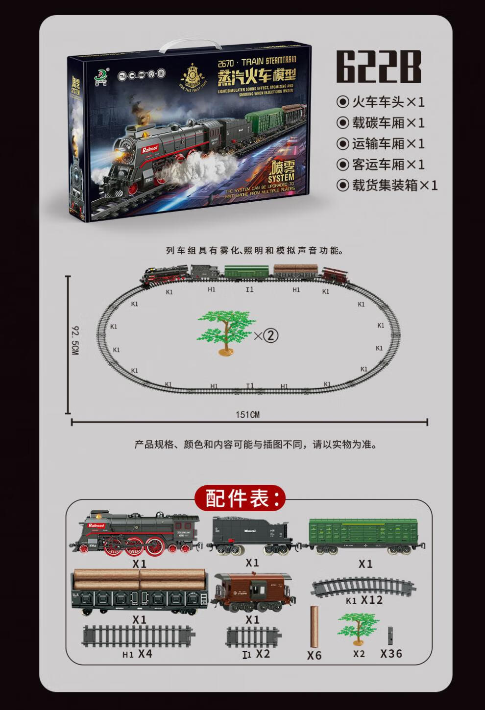仿真合金蒸汽轨道模型大号电动绿皮高铁路遥控小火车玩具儿童男孩 【充电/礼盒】仿真音效/喷雾/灯e