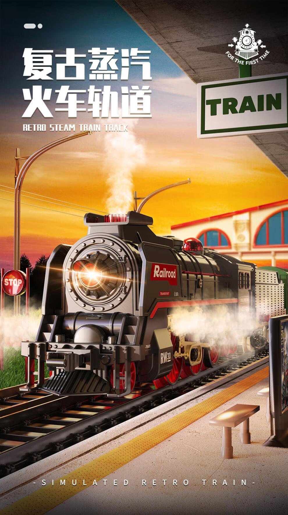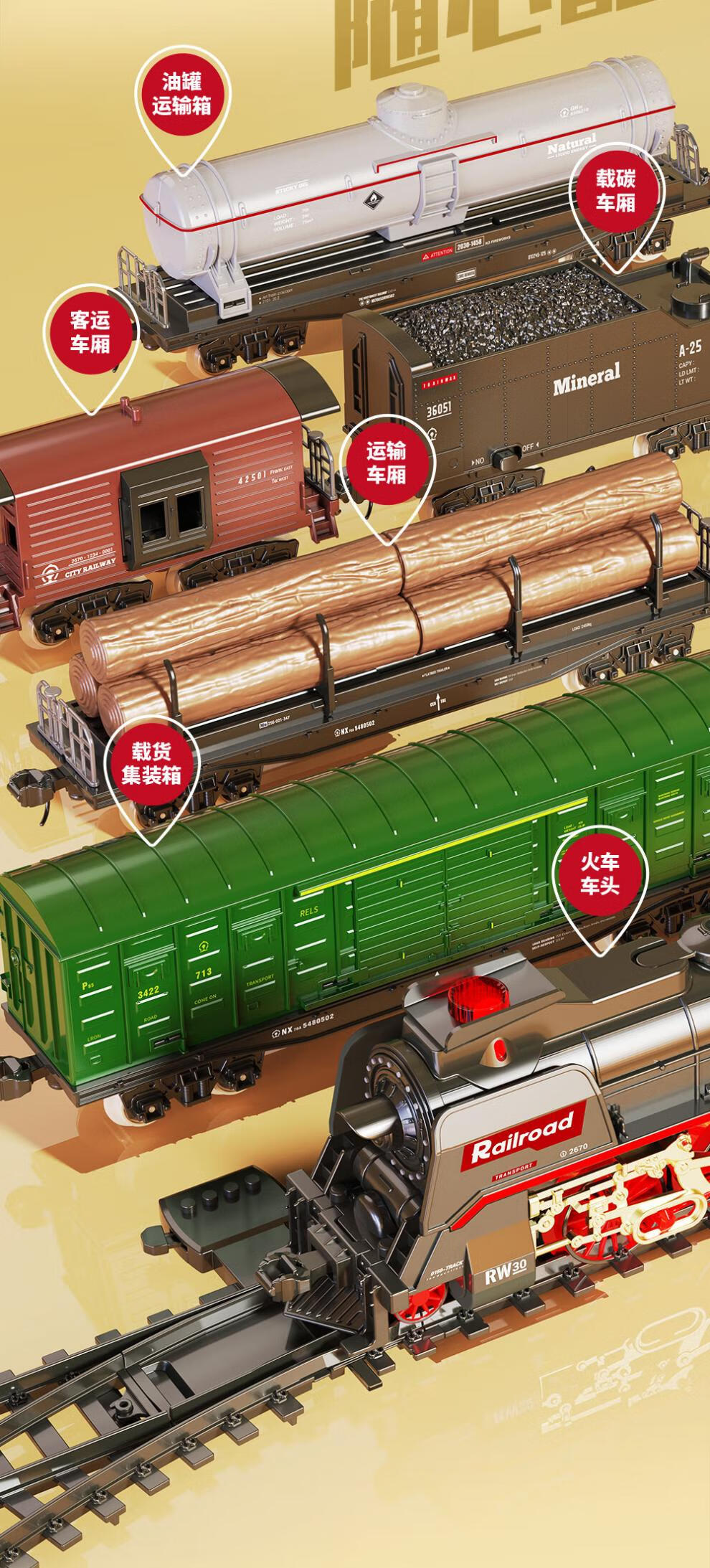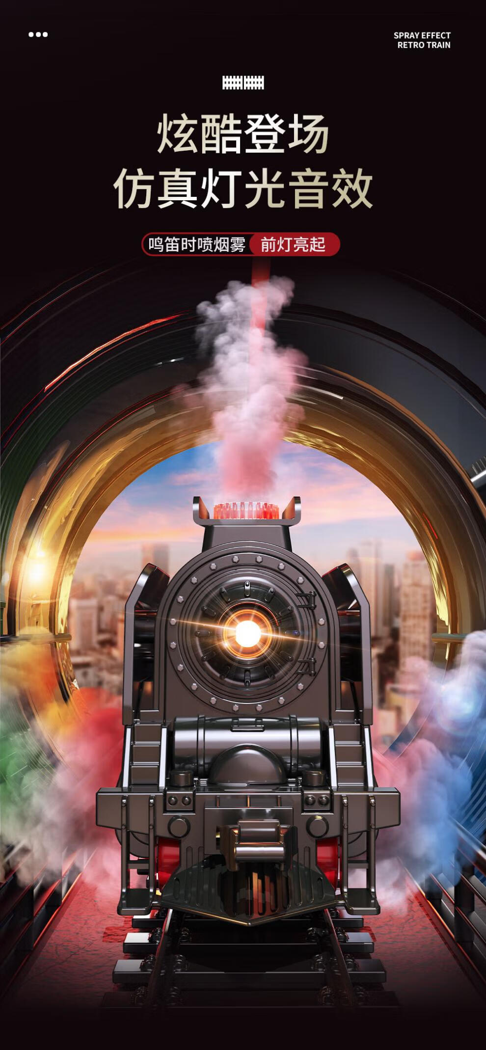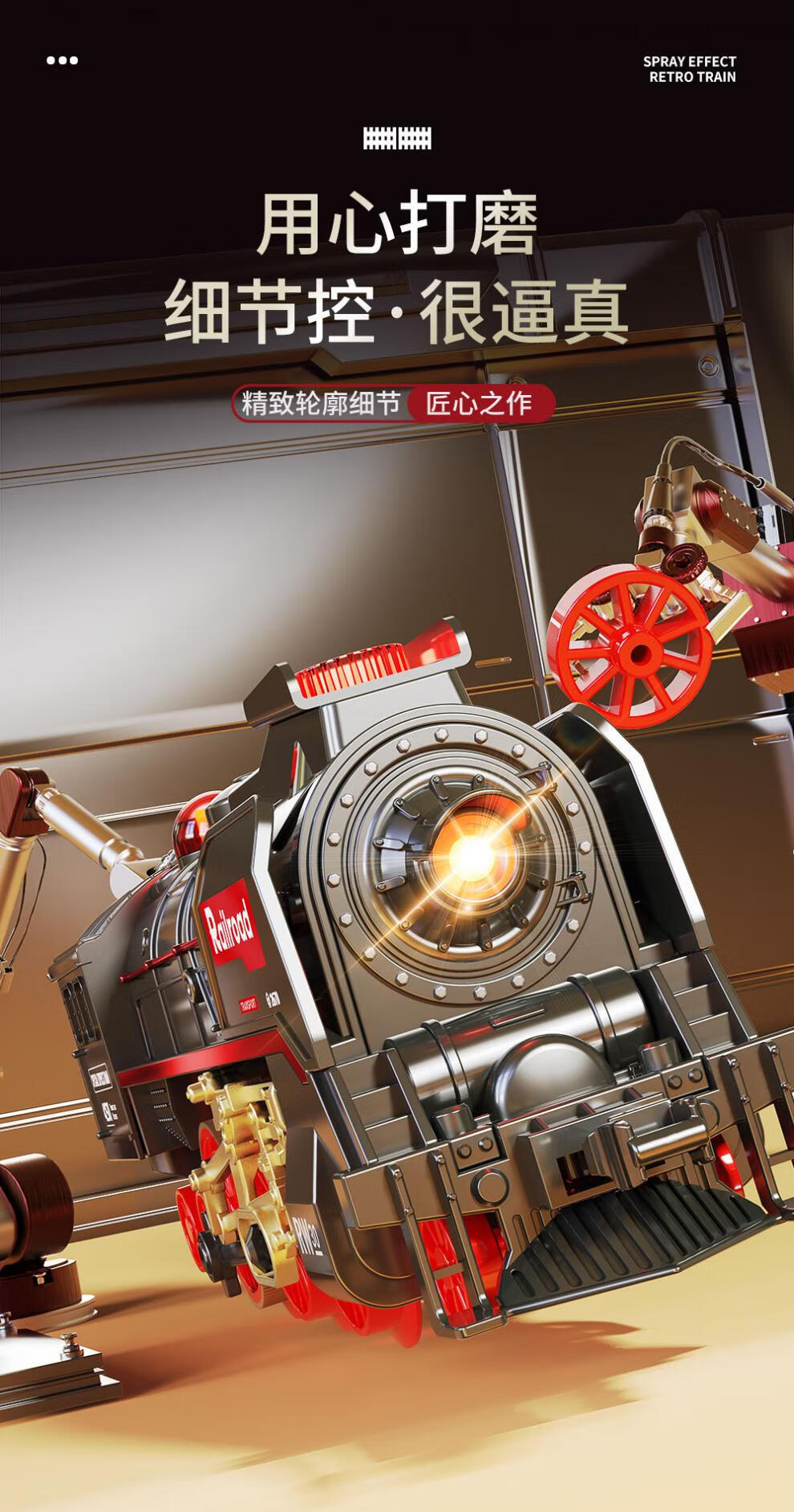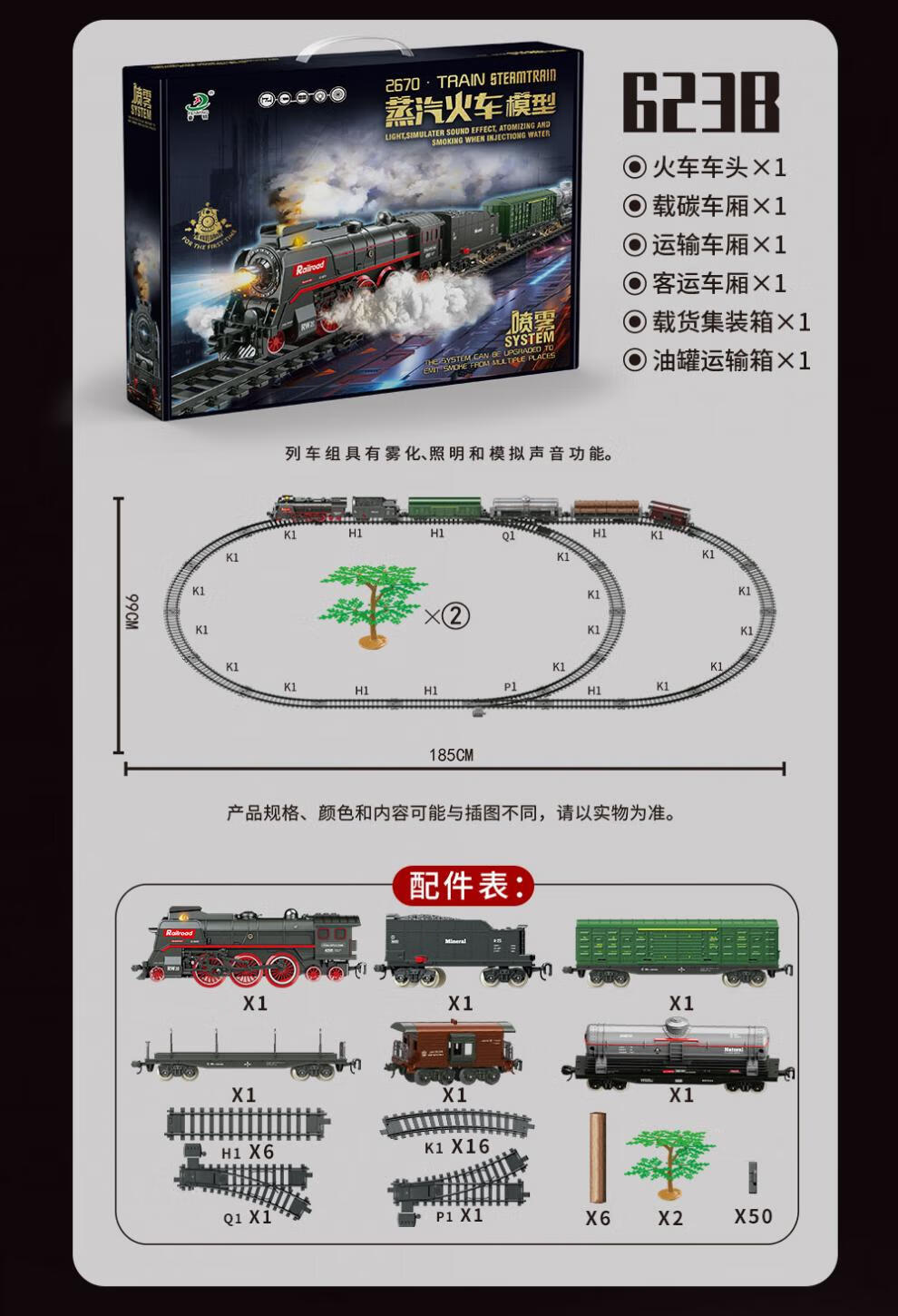 仿真合金蒸汽轨道模型大号电动绿皮高铁路遥控小火车玩具儿童男孩 【充电/礼盒】仿真音效/喷雾/灯e