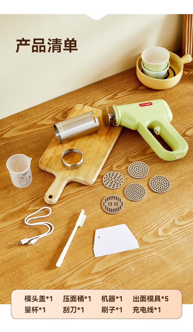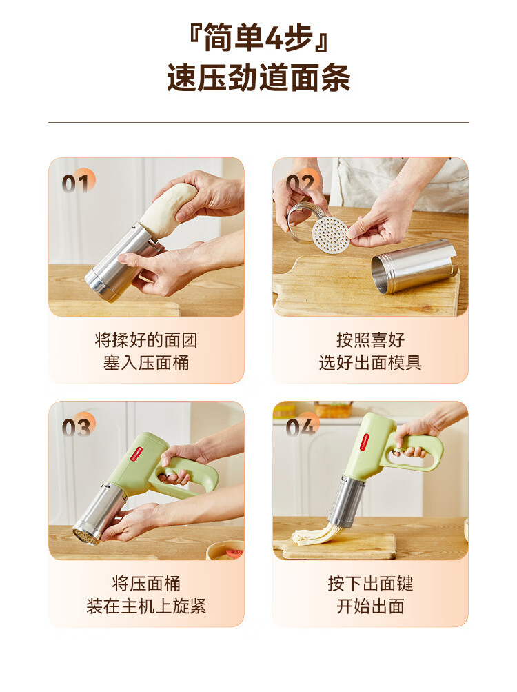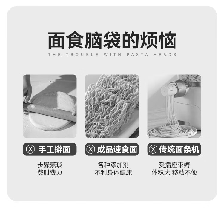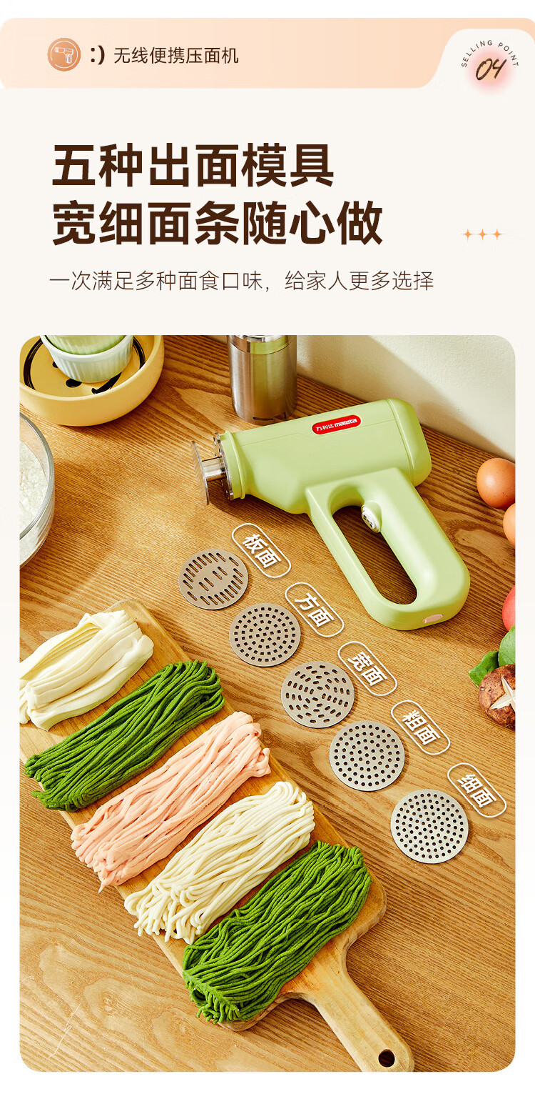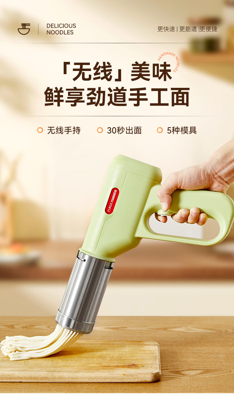万利达面条机家用手持压面机小型电动全自动不锈钢无线便携多功能捞面机 升级手持充电款【白色送赠品】