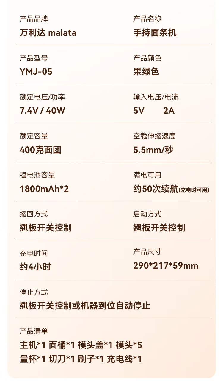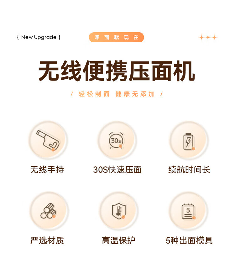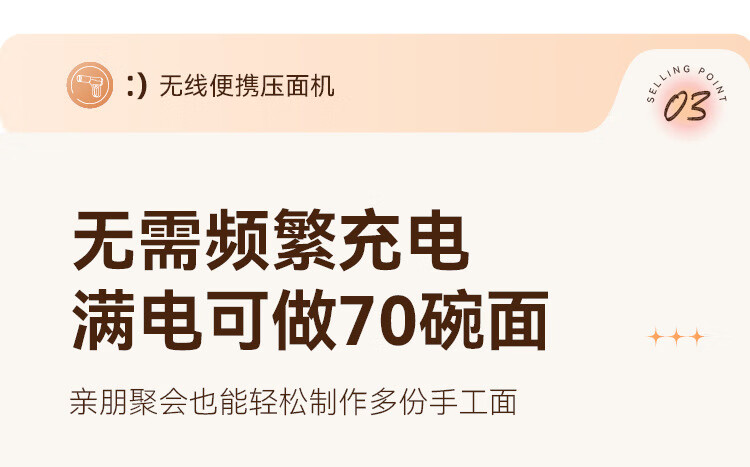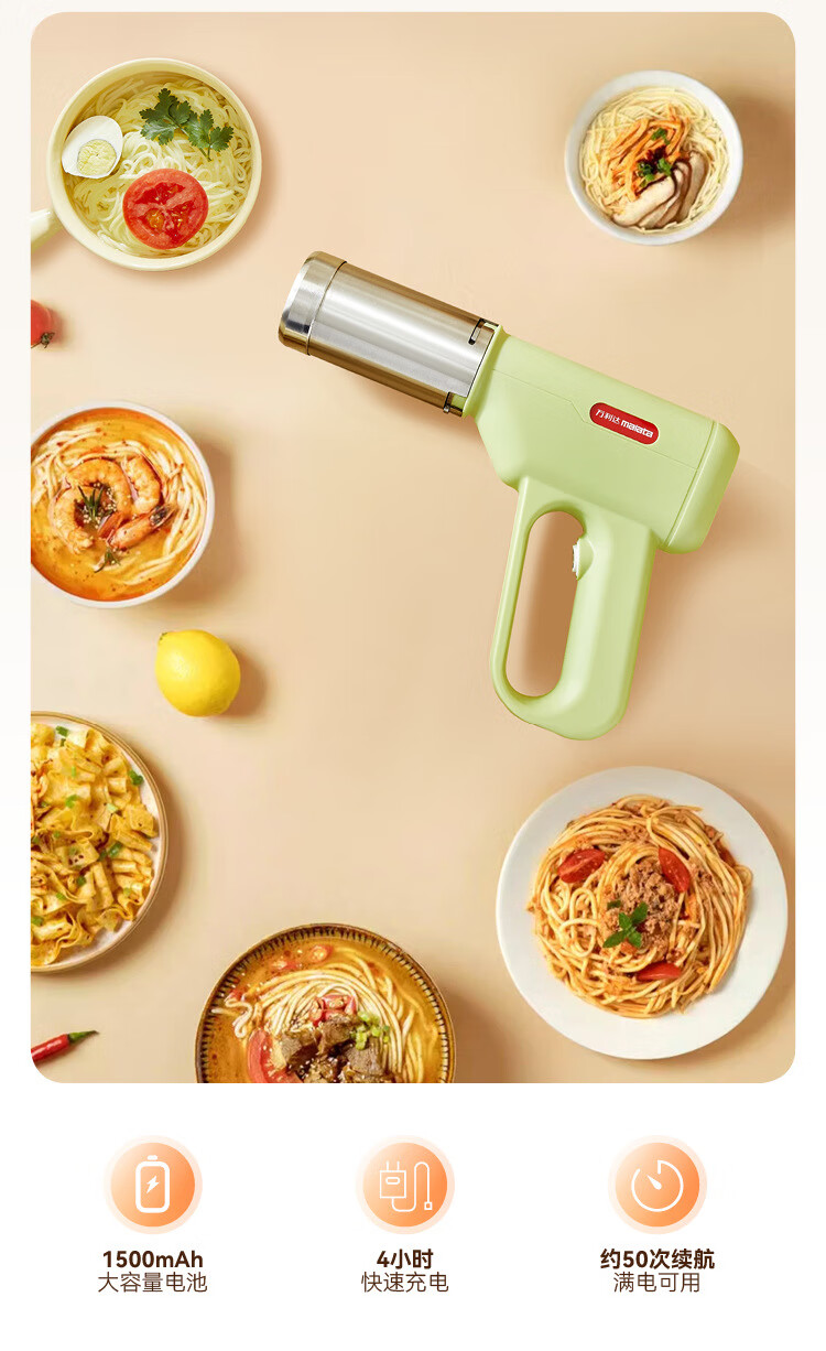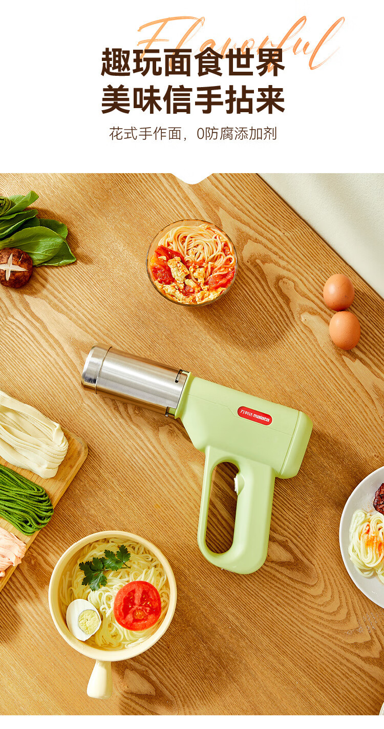 万利达面条机家用手持压面机小型电动全自动不锈钢无线便携多功能捞面机 升级手持充电款【白色送赠品】