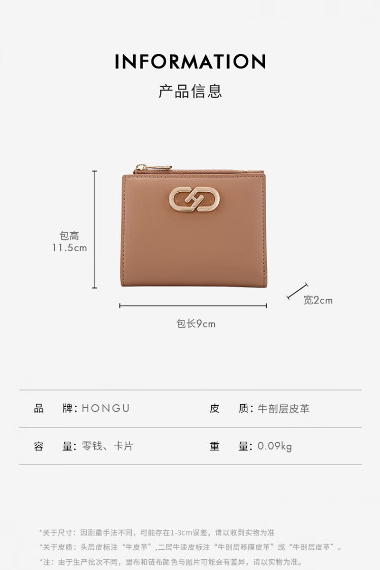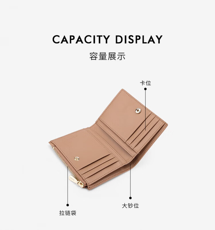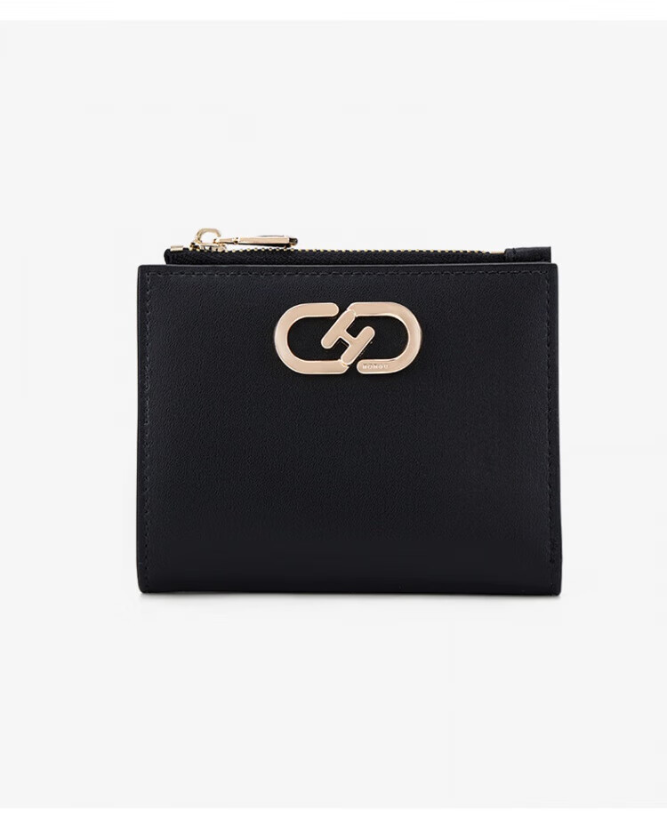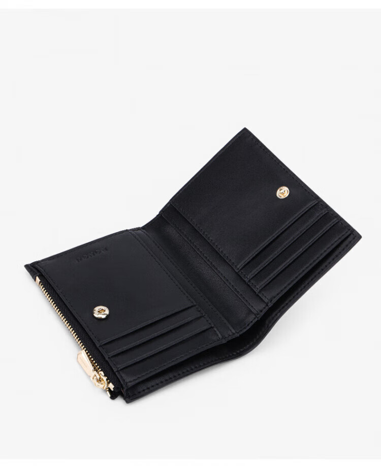 红谷新款时尚钱包女短款迷你薄款卡包钱夹一体包多卡位零钱包 漆黑