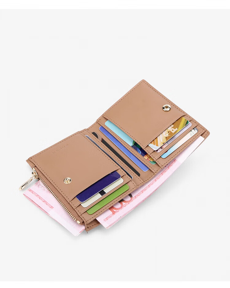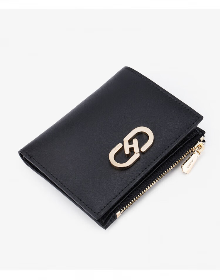 Honggu New Fashion Wallet Women's Short Mini Thin Card Holder Wallet All-in-One Multi-Card Slot Coin Purse Pitch Black