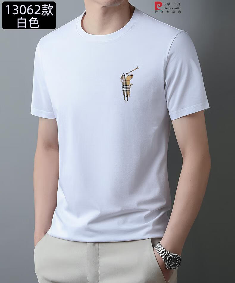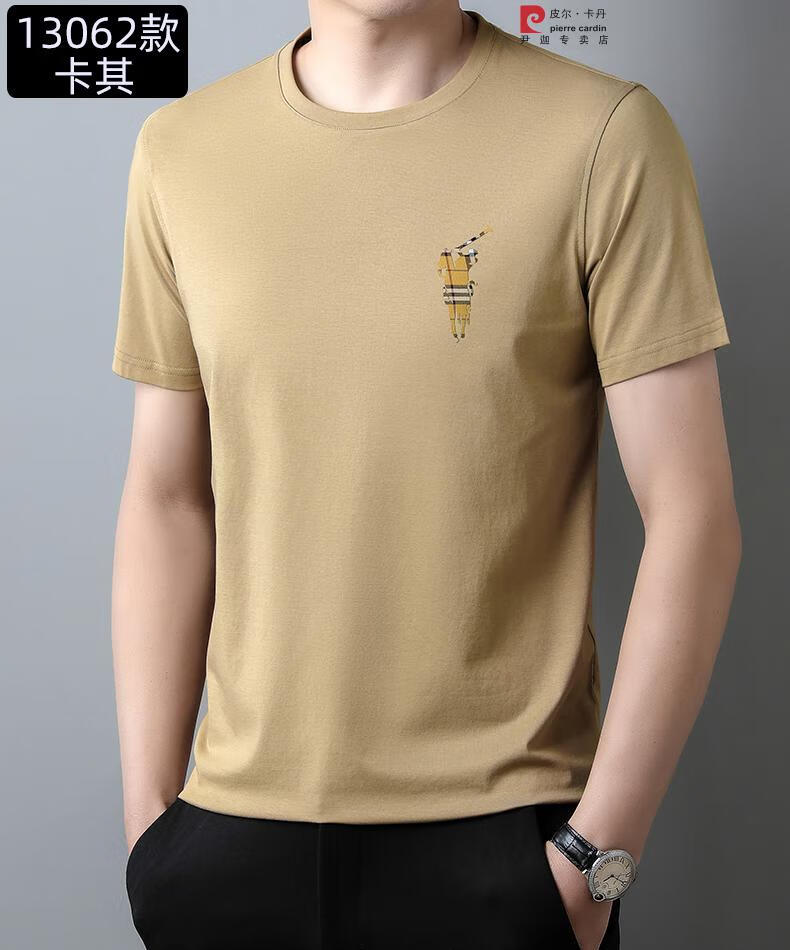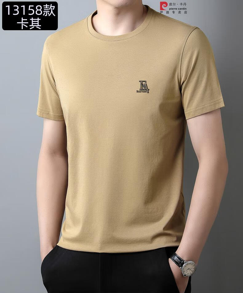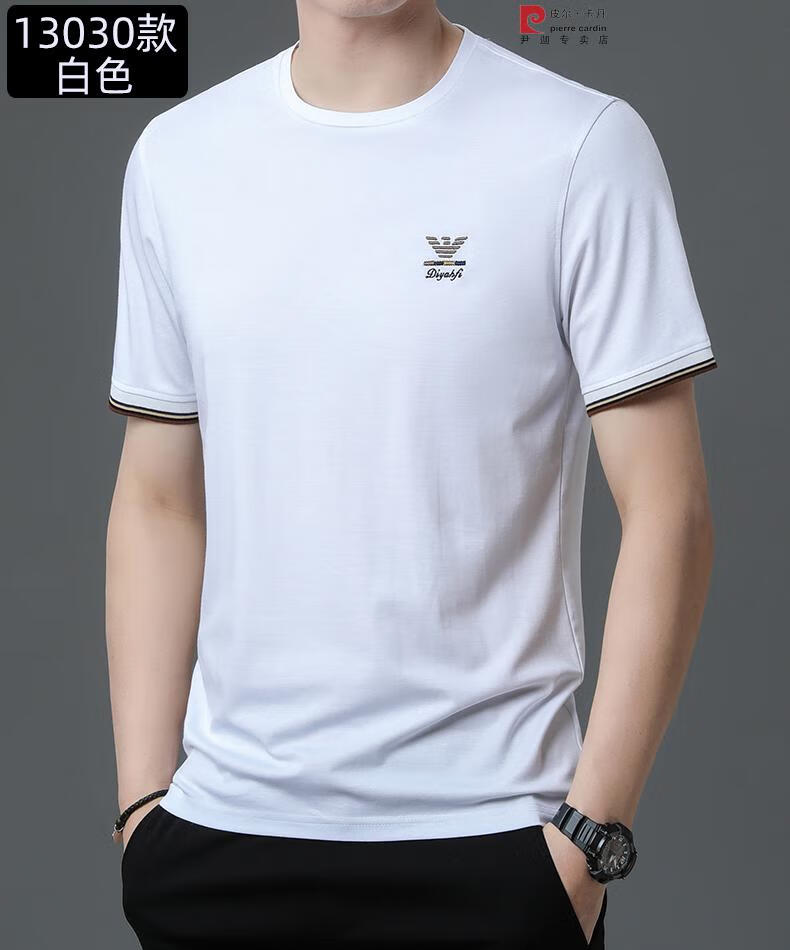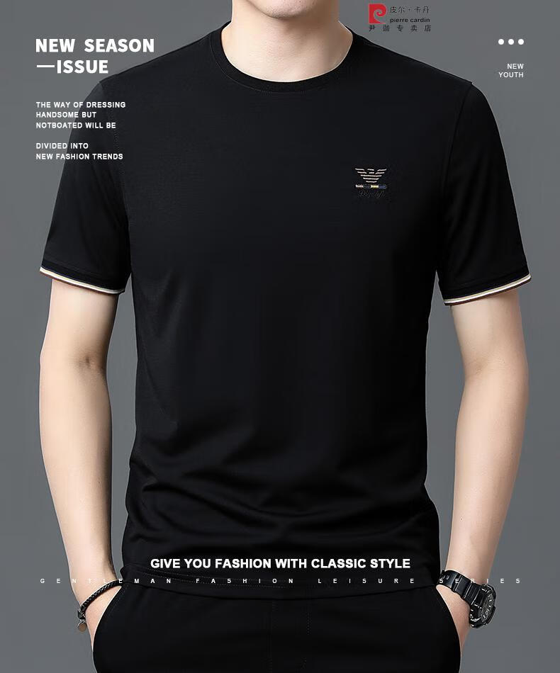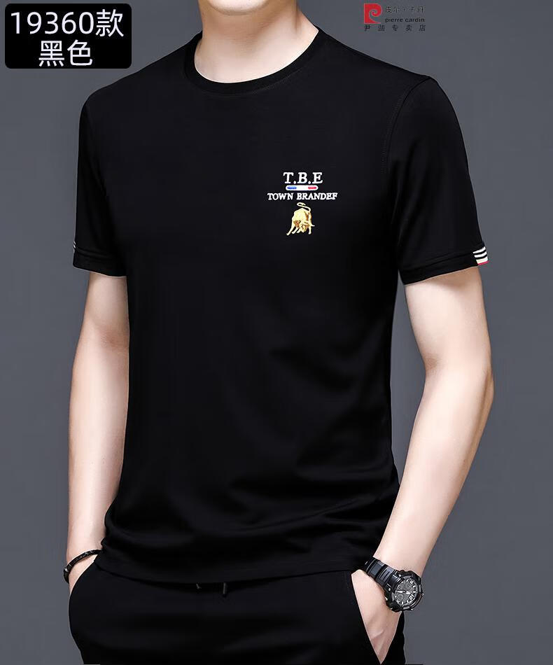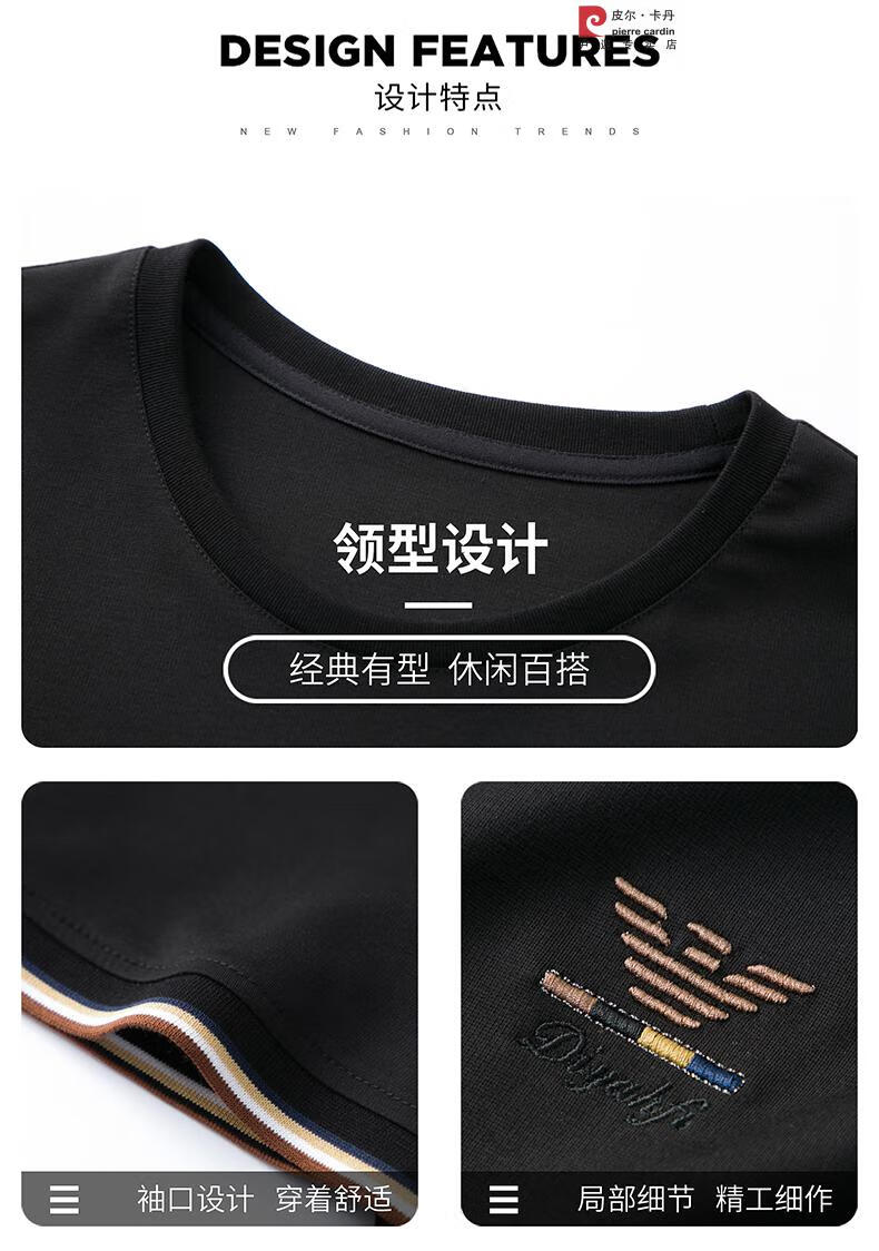 皮尔卡丹(pierre cardin)高端品牌夏季2026新款刺绣短袖t恤男士上衣薄款圆领凉感冰丝t恤 黑色【蒂13062】 4XL 190【适合体重195-220斤】