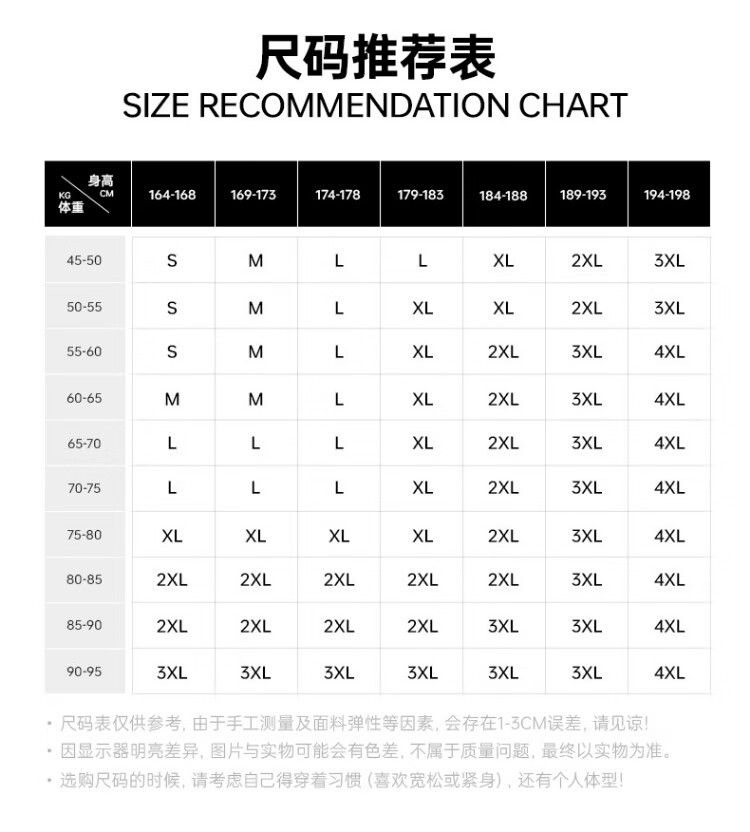 China (cm) 160-165/84-86 165-170 / 88-90 167-172 / 92-96 168-173 / 98-102 170-176 / 106-110