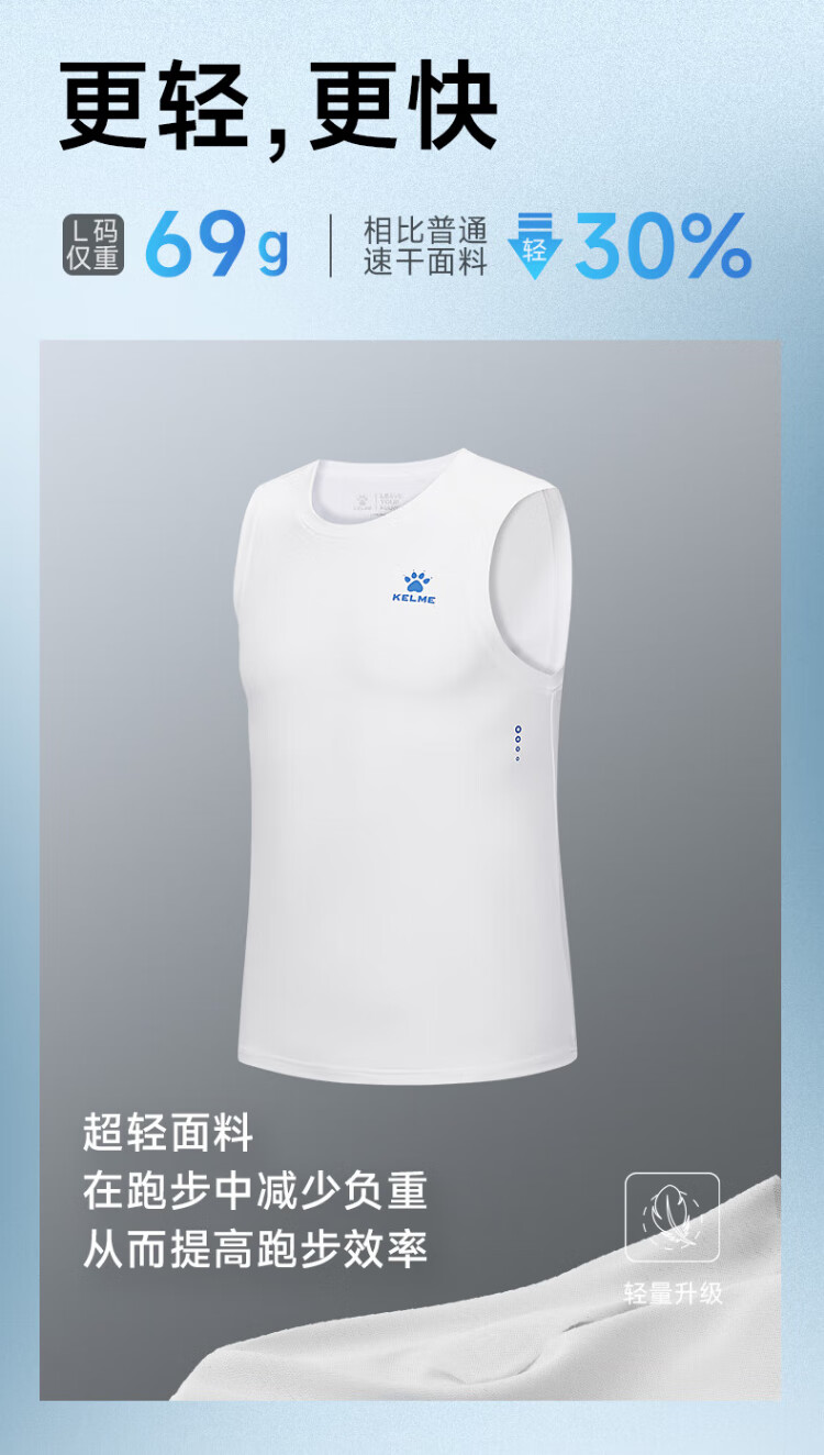 卡尔美(KELME)跑步背心男2025夏季新款马拉松训练速干衣足球健身无袖T恤 光亮白 L