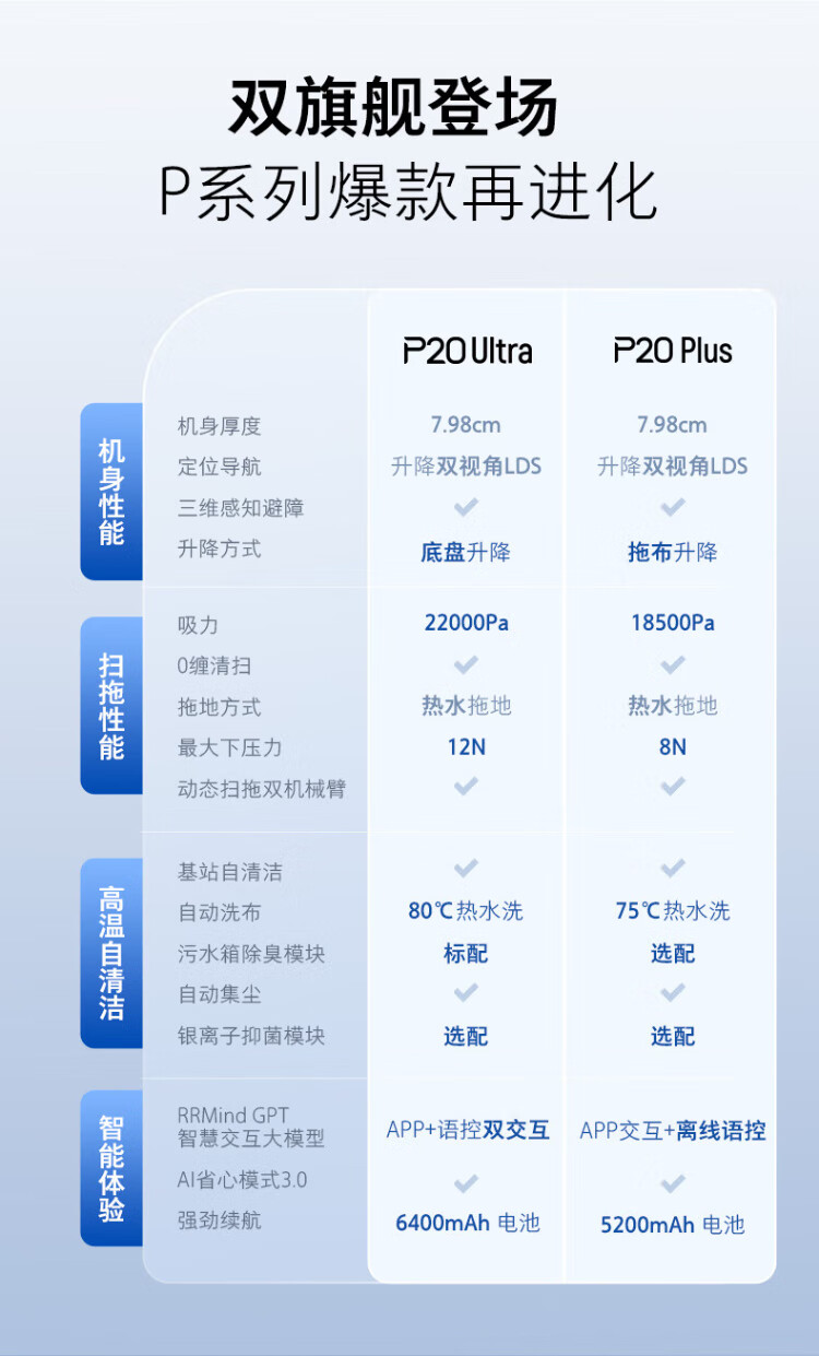 Roborock robot barredor todo en uno para barrer y trapear P20 Plus Máquina para barrer, trapear, lavar y secar todo en uno Recolección automática de polvo Lavado con agua caliente Trapeador Secado y rehidratación Trapeador P20 Plus