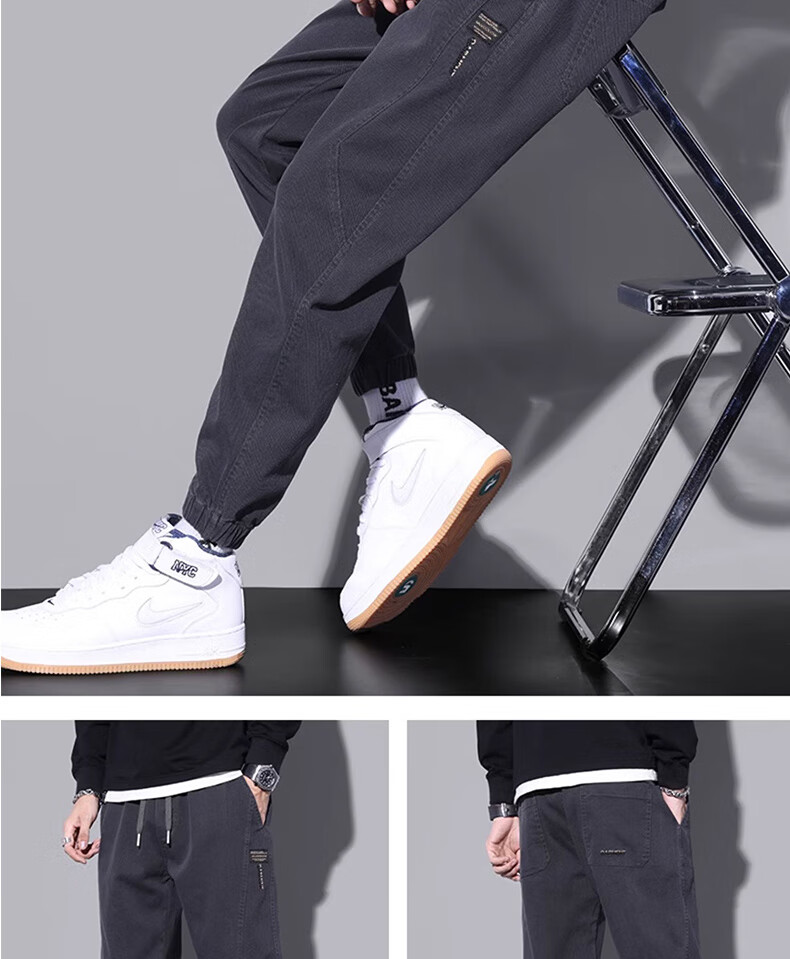 森馬春季工装牛仔裤男春秋款宽松束脚哈伦长裤子男士2025新款休闲裤男 9859黑色 常规 M 建议【90-110斤】