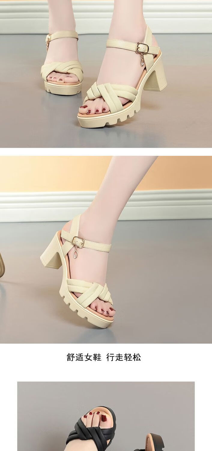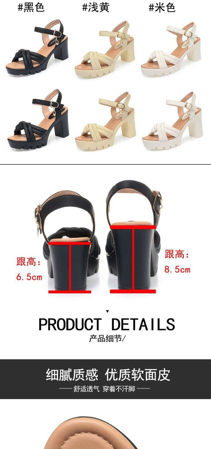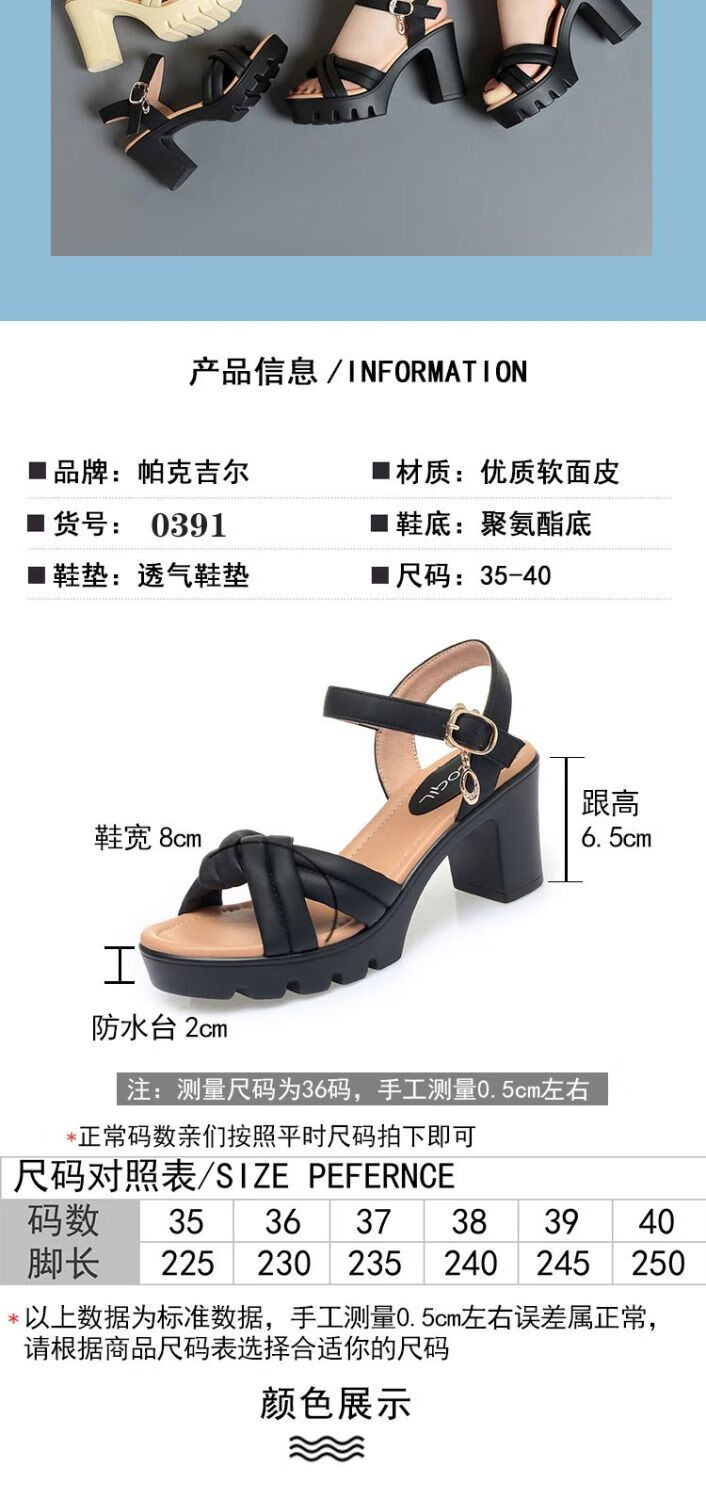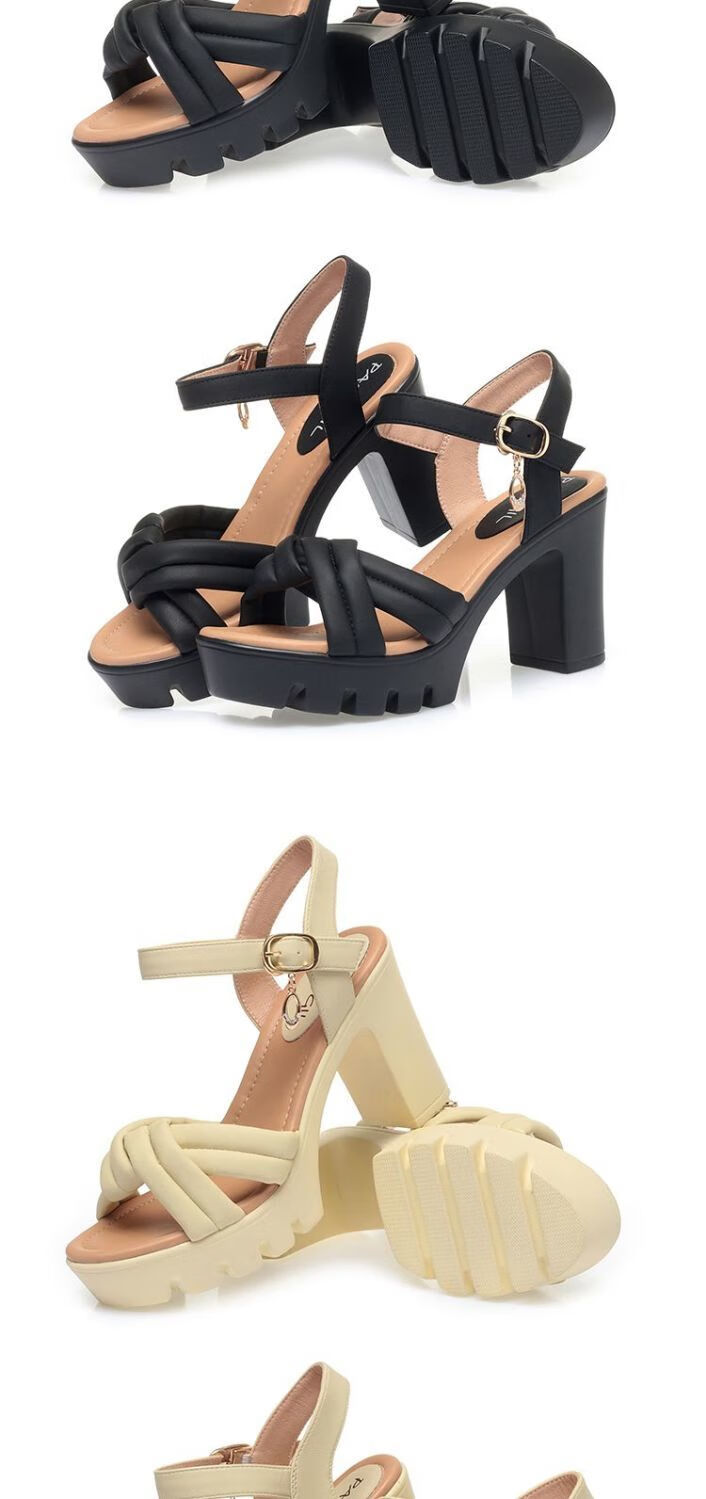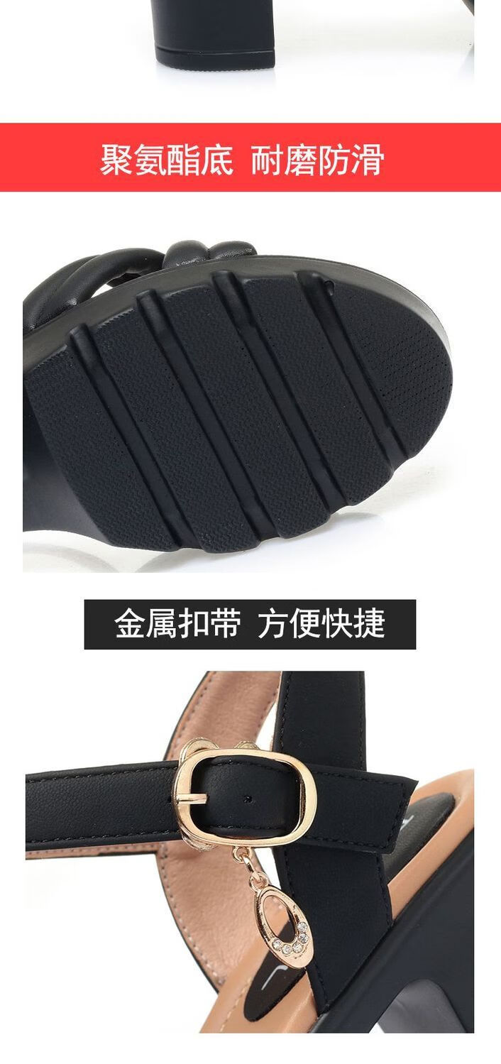 Lingka Qiyuzui shoes summer sandals open toe one-line elegant high heels thick sole waterproof platform versatile black 6.5 cm style 35