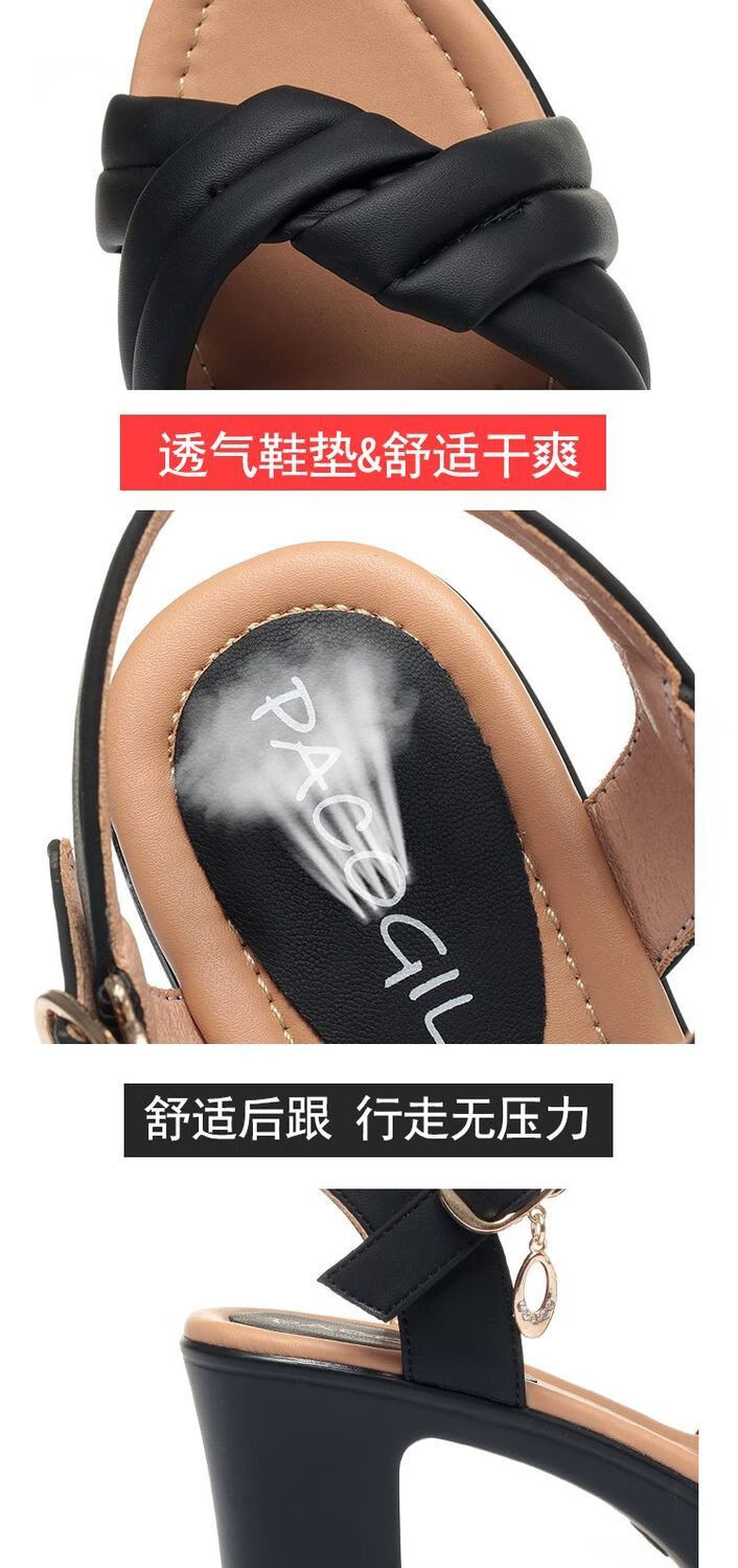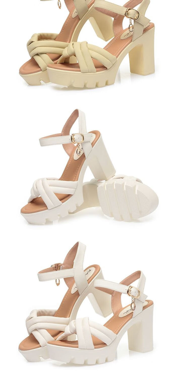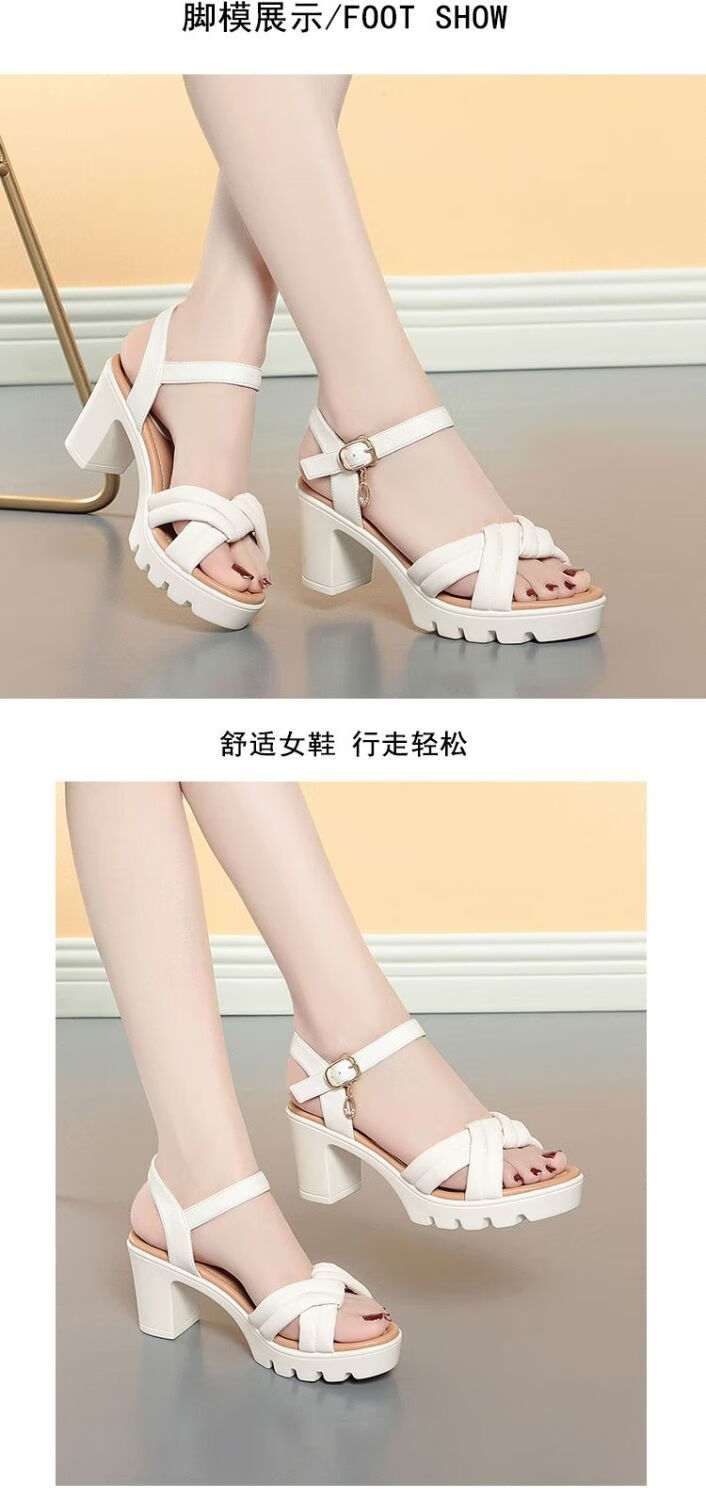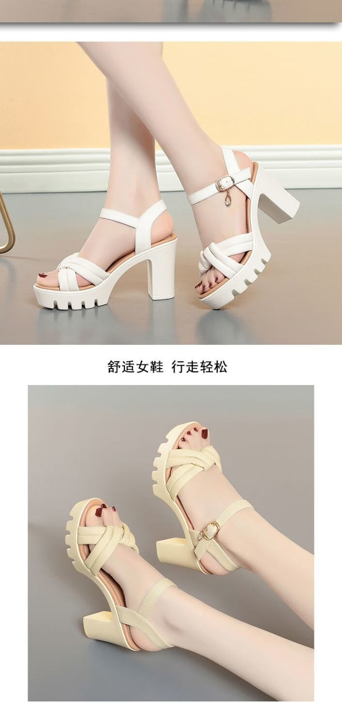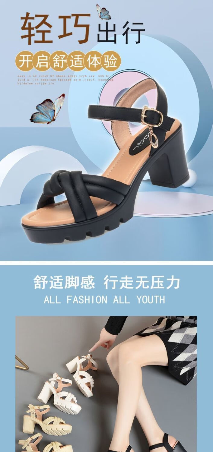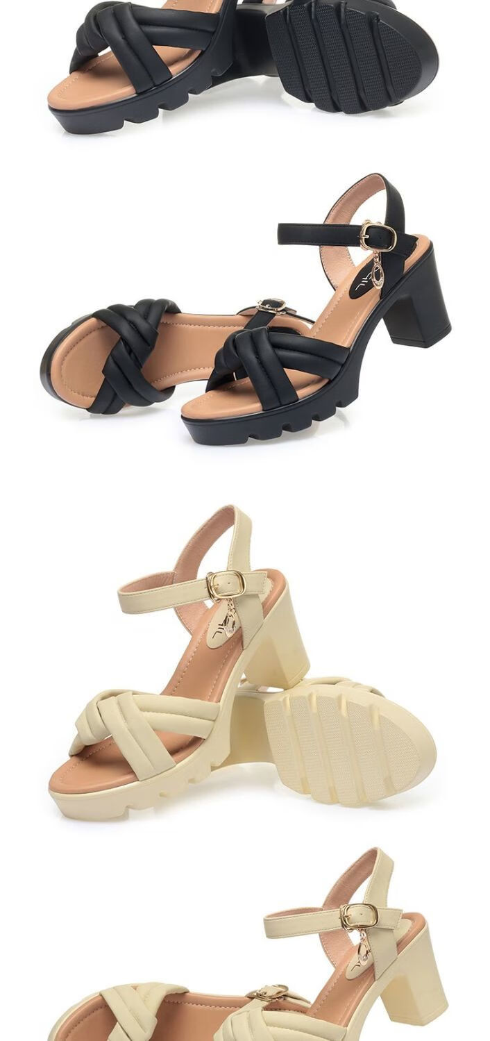 Lingka Qiyuzui shoes summer sandals open toe one-line elegant high heels thick sole waterproof platform versatile black 6.5 cm style 35
