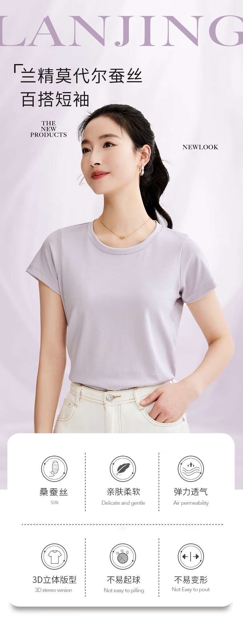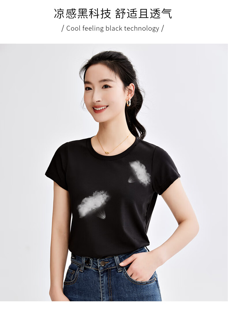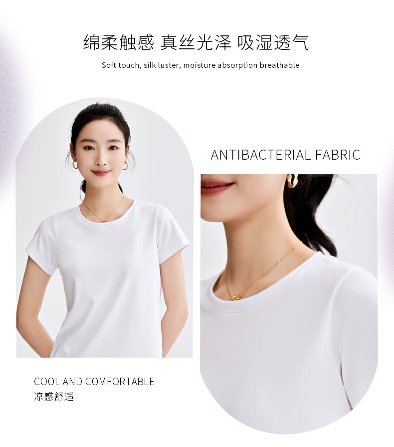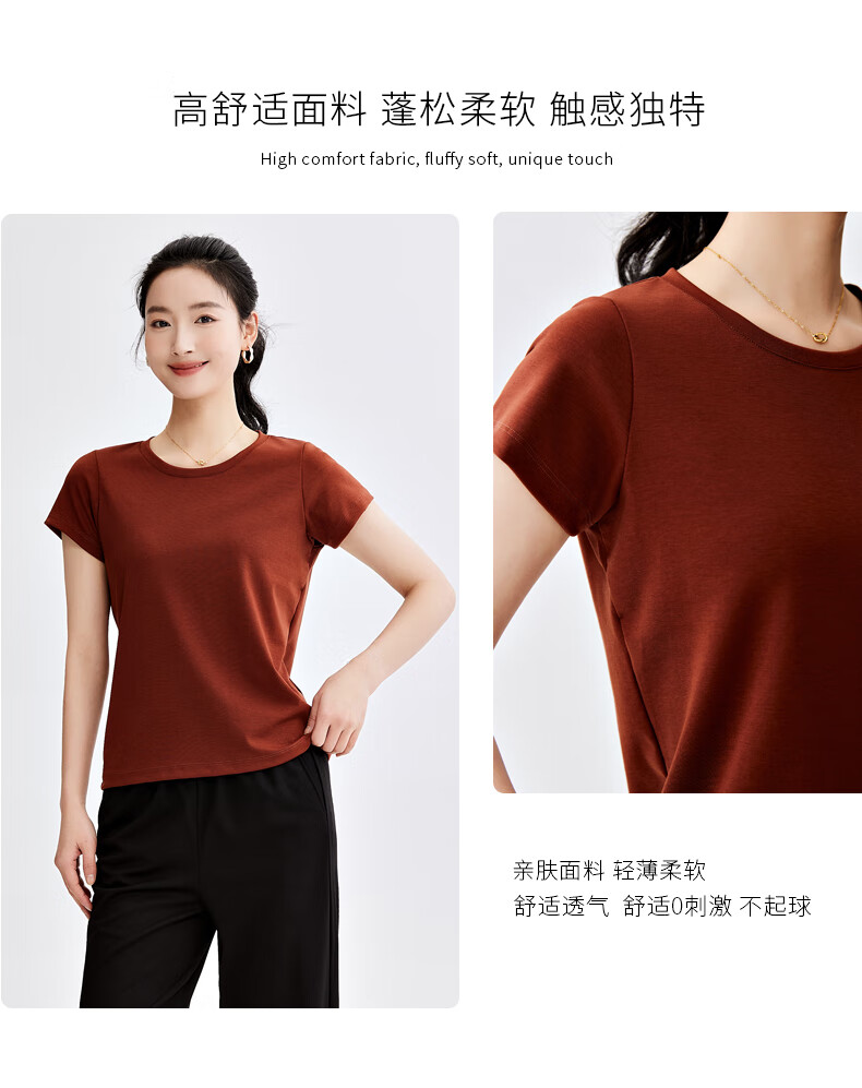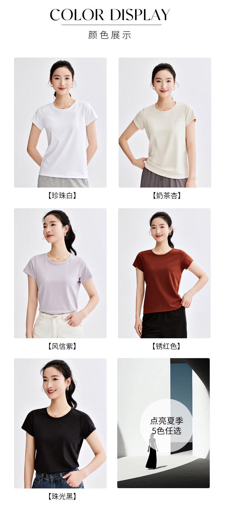 Armani Manufacturer Women's Modal Silk Short Sleeve T-Shirt Solid Color T-shirt Bottoming Top A6167 Pearlescent Black 2XL (135-150Jin Jin equals 0.5kg)