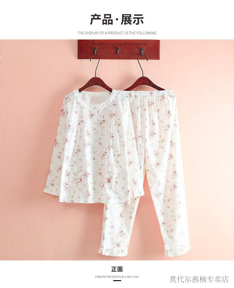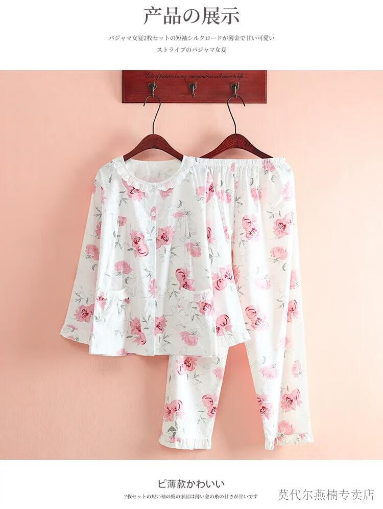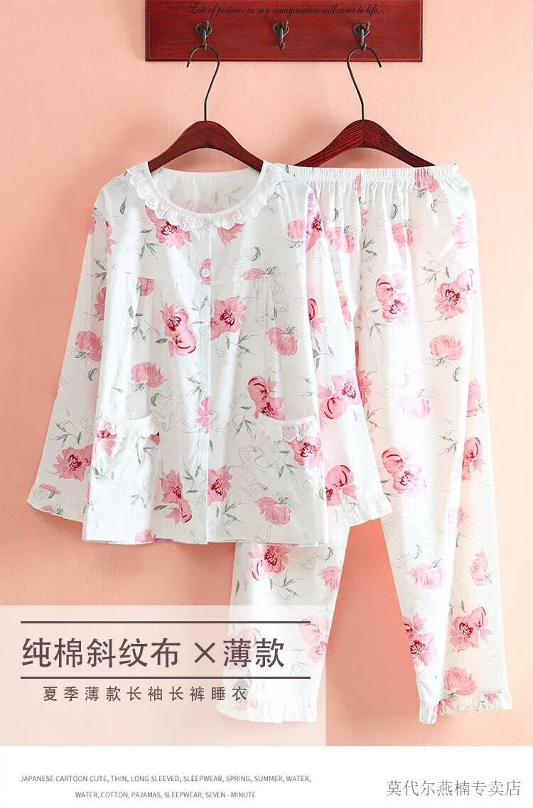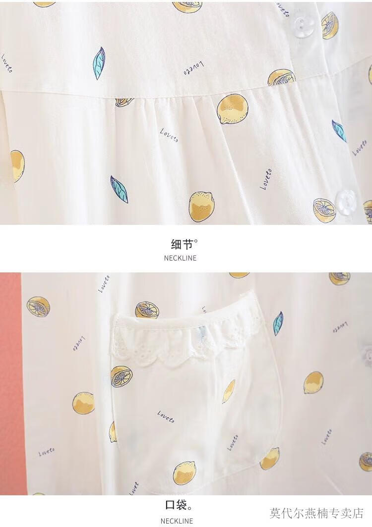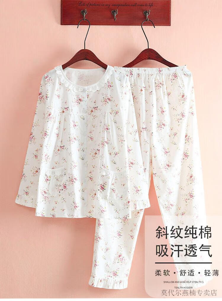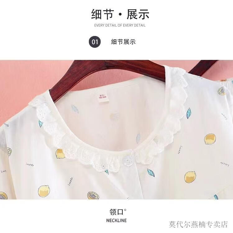 莫代尔全棉斜纹布睡衣女春夏薄款长袖小清新碎花梭织纯棉布睡衣家居服套 蓝色柠檬 6636 M 80-108斤左右