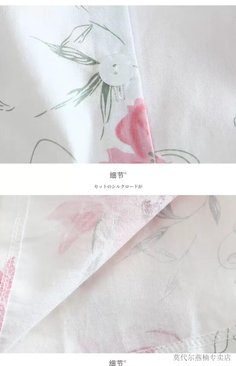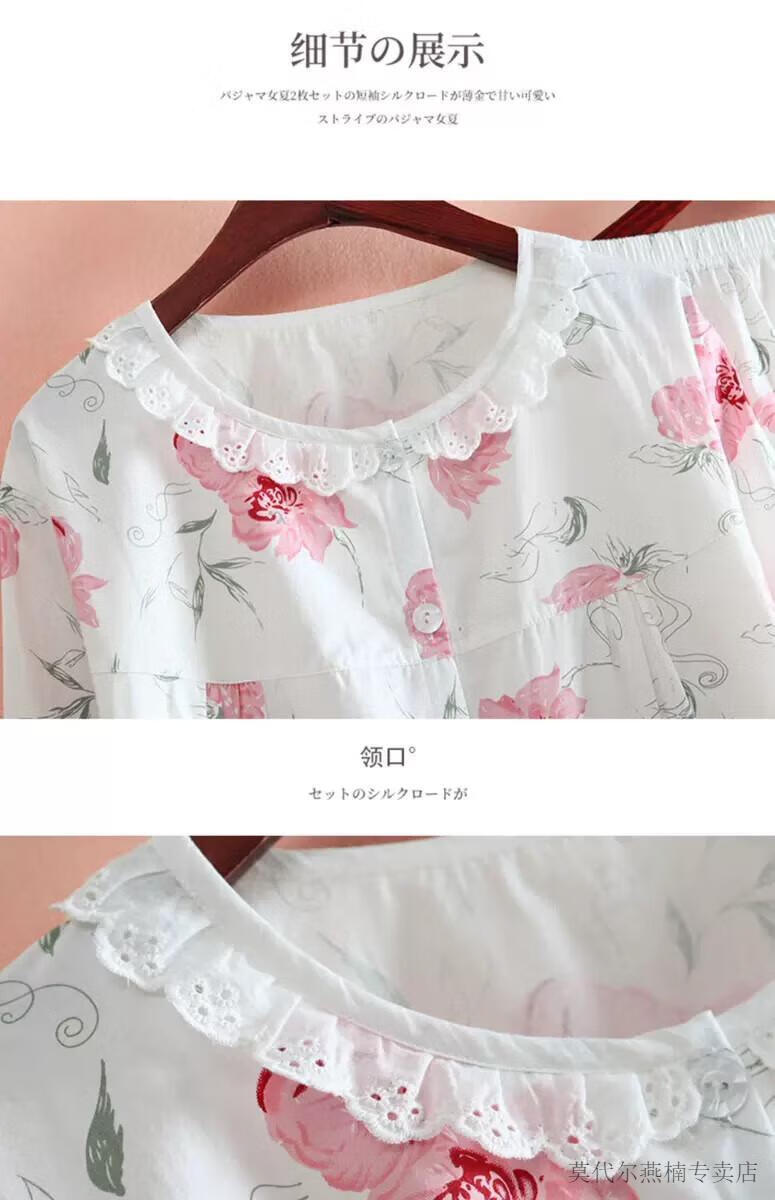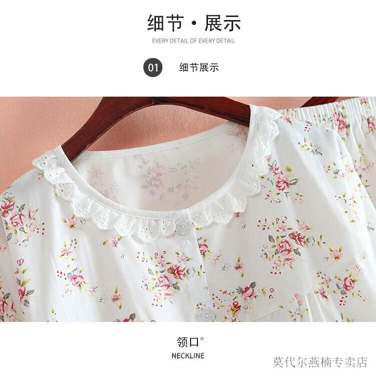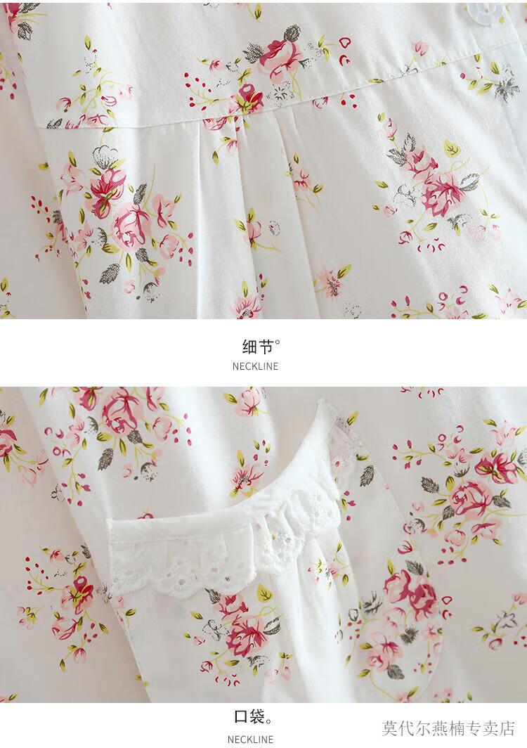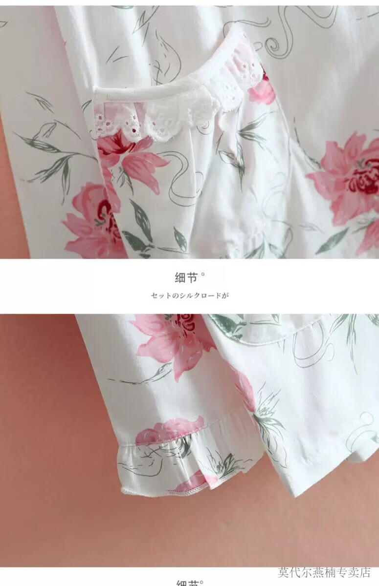莫代尔全棉斜纹布睡衣女春夏薄款长袖小清新碎花梭织纯棉布睡衣家居服套 蓝色柠檬 6636 M 80-108斤左右