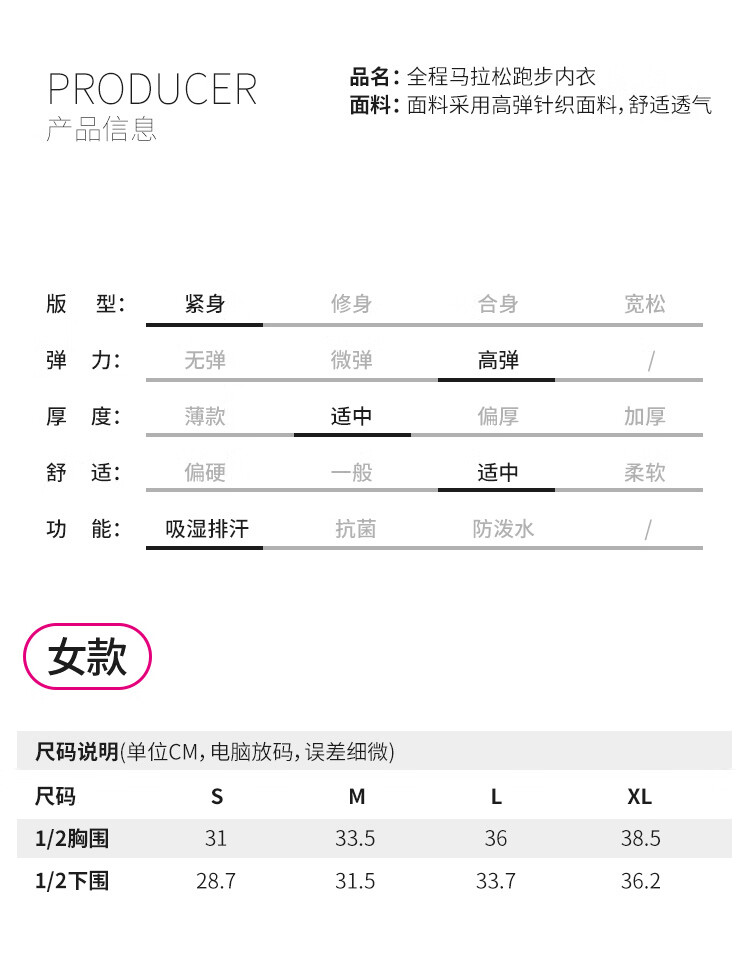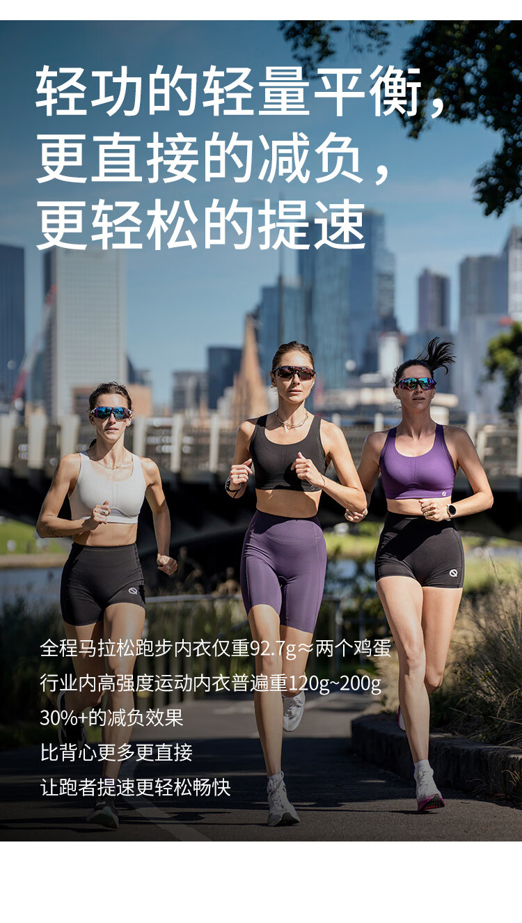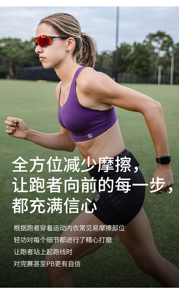 轻功(QINKUNG)全程马拉松跑步内衣运动背心赛道高强度专业文胸BRA春夏新款 黑色 L