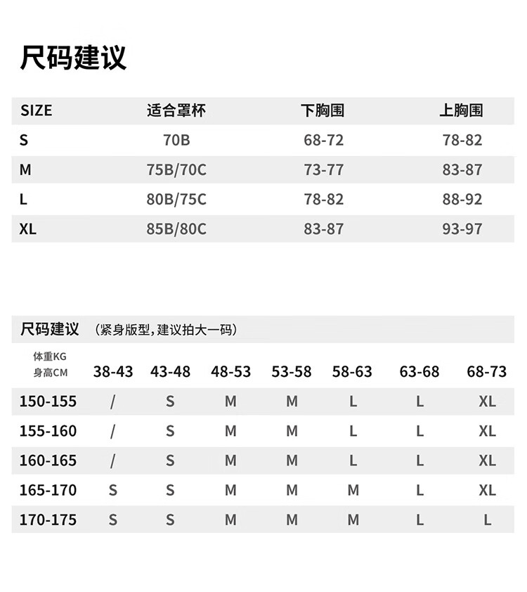 China (cm) 160-165/84-86 165-170 / 88-90 167-172 / 92-96 168-173 / 98-102 170-176 / 106-110