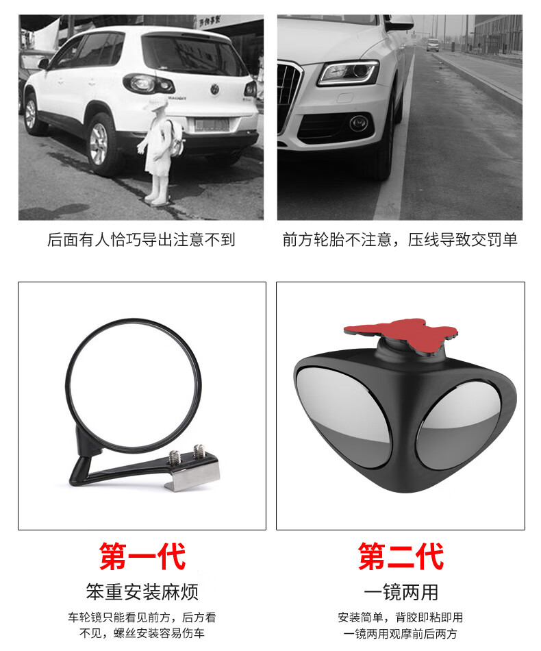 迪加伦汽车后视镜小圆镜前后轮盲区倒车镜子360度无边超清可调辅助镜 正驾驶-黑色单个装