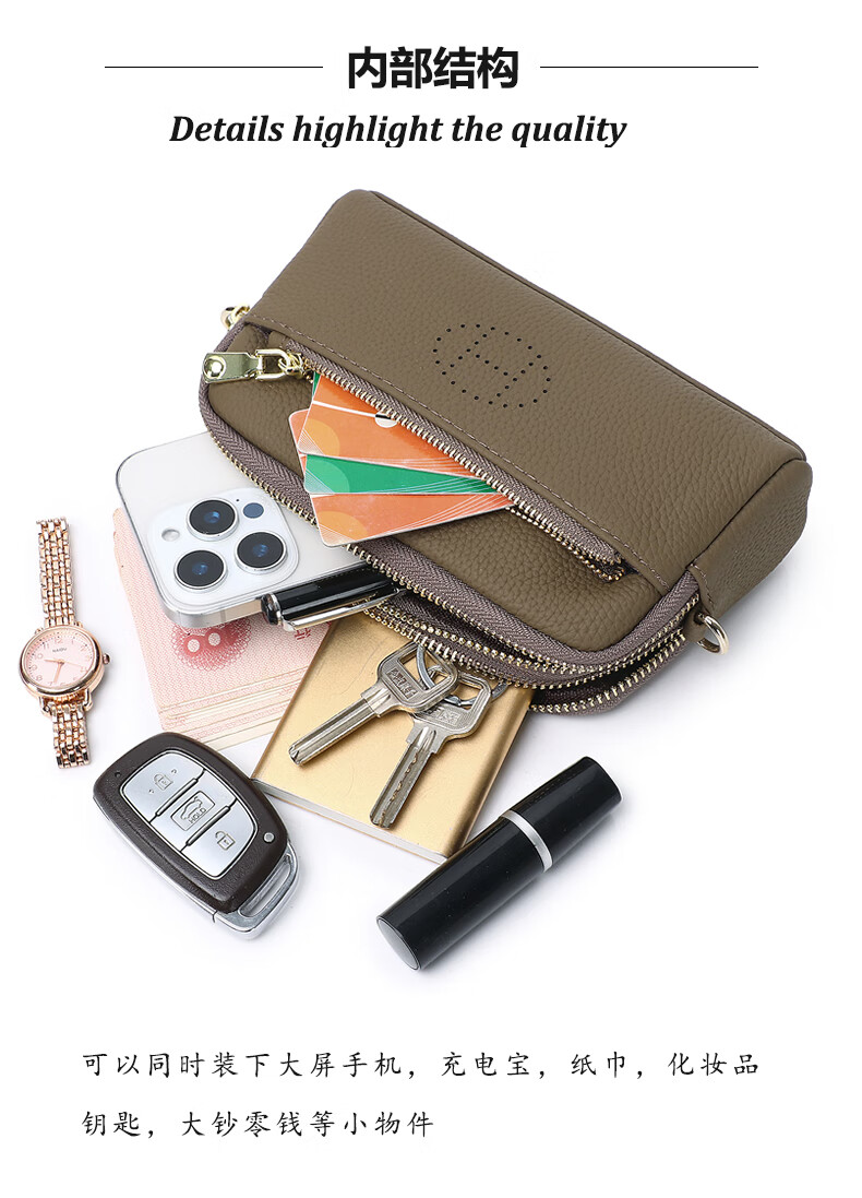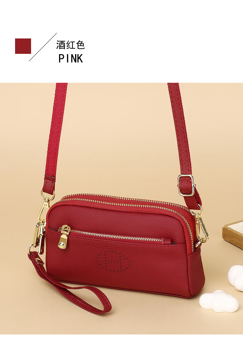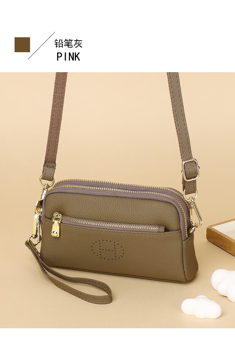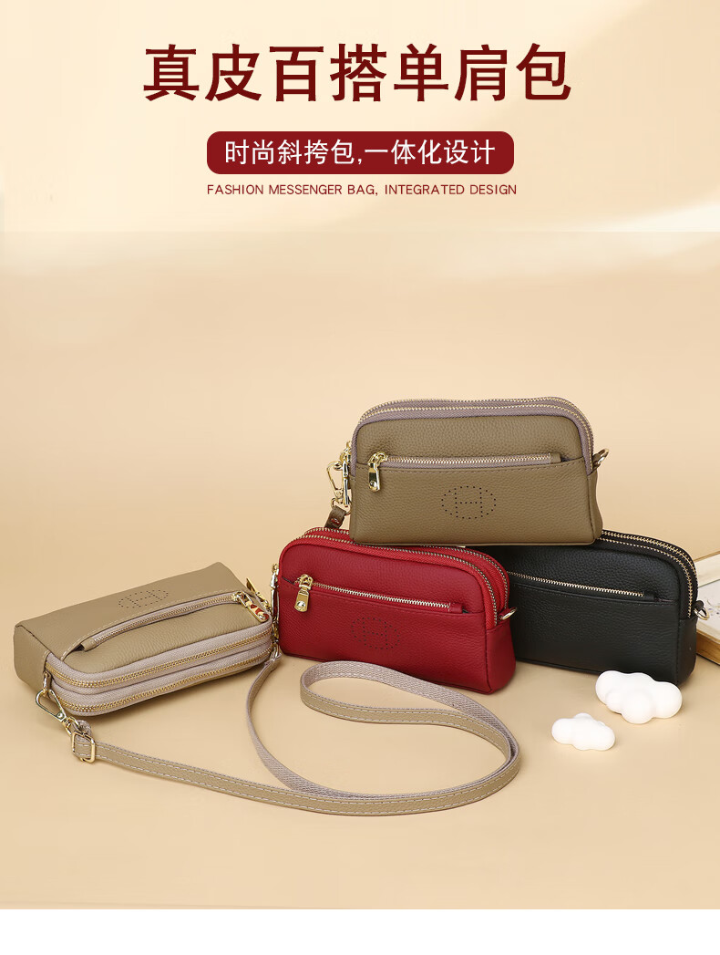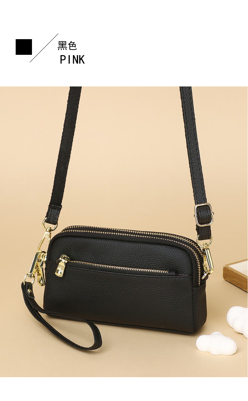 南啵丸真皮手拿包女2025新款时尚韩版单肩斜挎包百搭多层小包手抓贝壳包 黑色