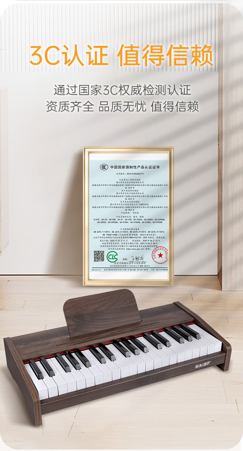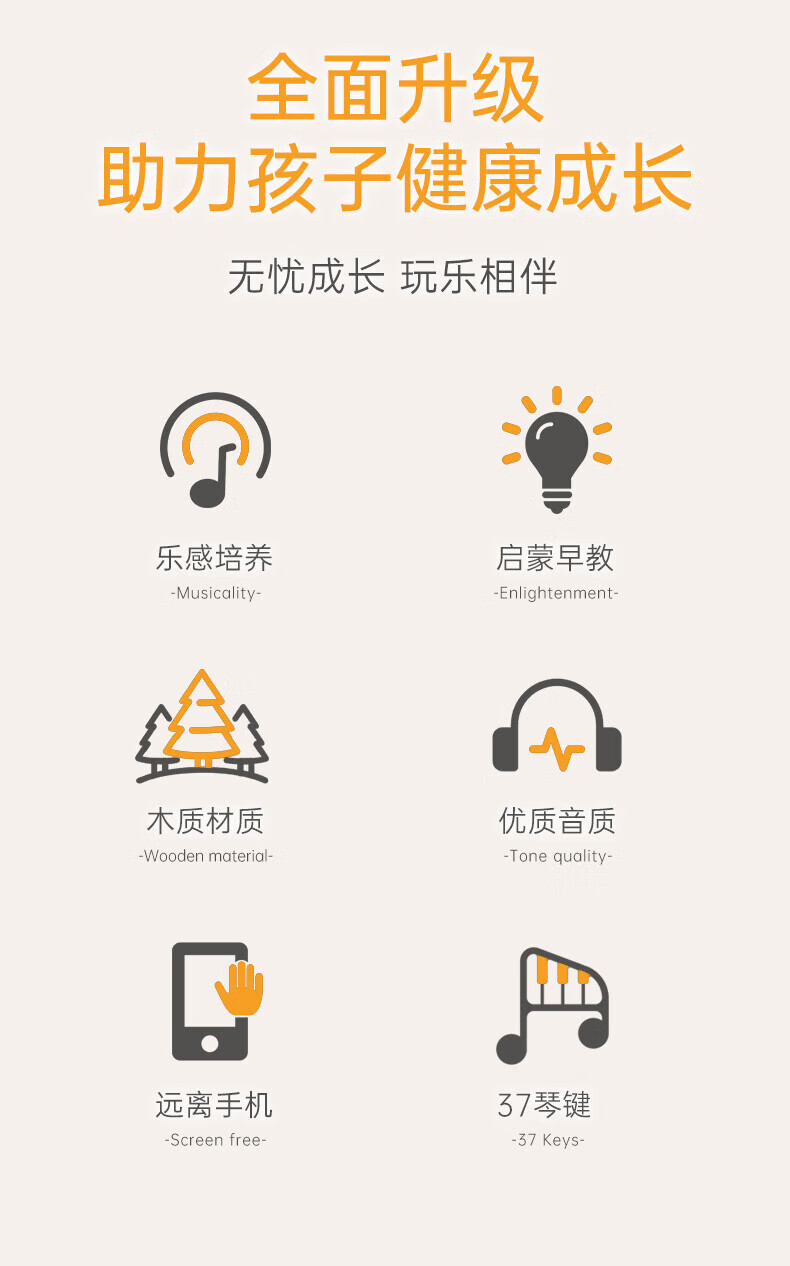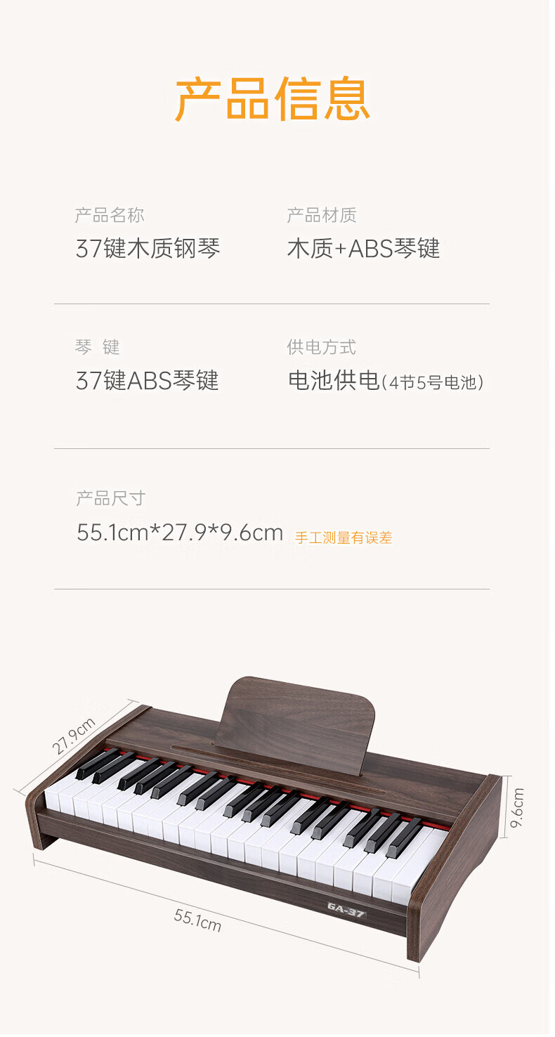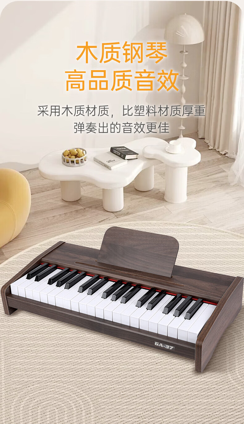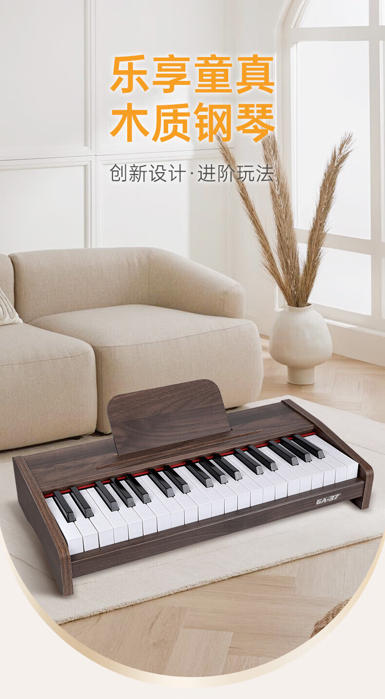 ZOCO儿童钢琴玩具男女孩电子琴一岁宝宝婴儿三早教六一儿童节生日礼物 桃木色钢琴37键+音符贴+乐谱