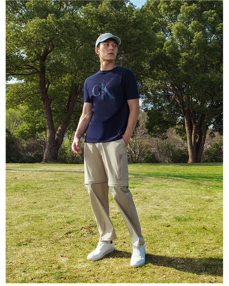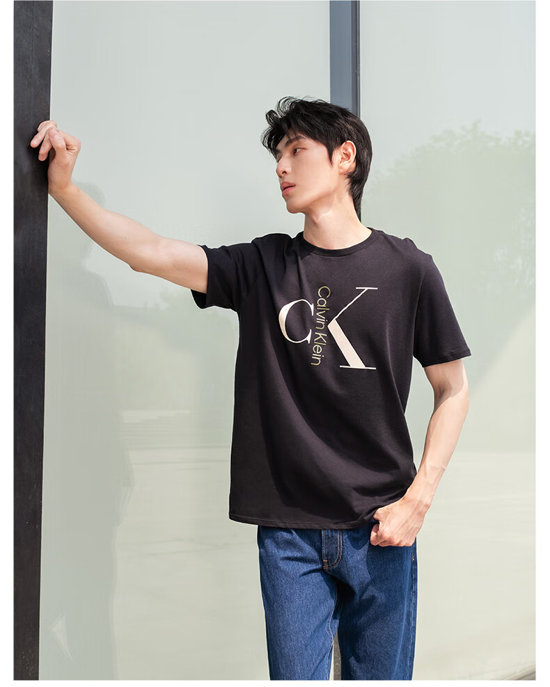 Calvin KleinCK Jeans Quarter Herren-Casual-Pendler-Kurzarm-T-Shirt aus Baumwolle mit klassischem Briefdruck 40KC829 CEF-Navy XL