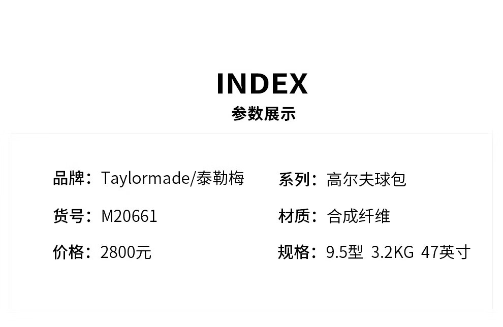 Taylormade泰勒梅高尔夫球包男女士25新款大容量轻量标准球包便携车载球杆包 M13562 白色 高尔夫球包