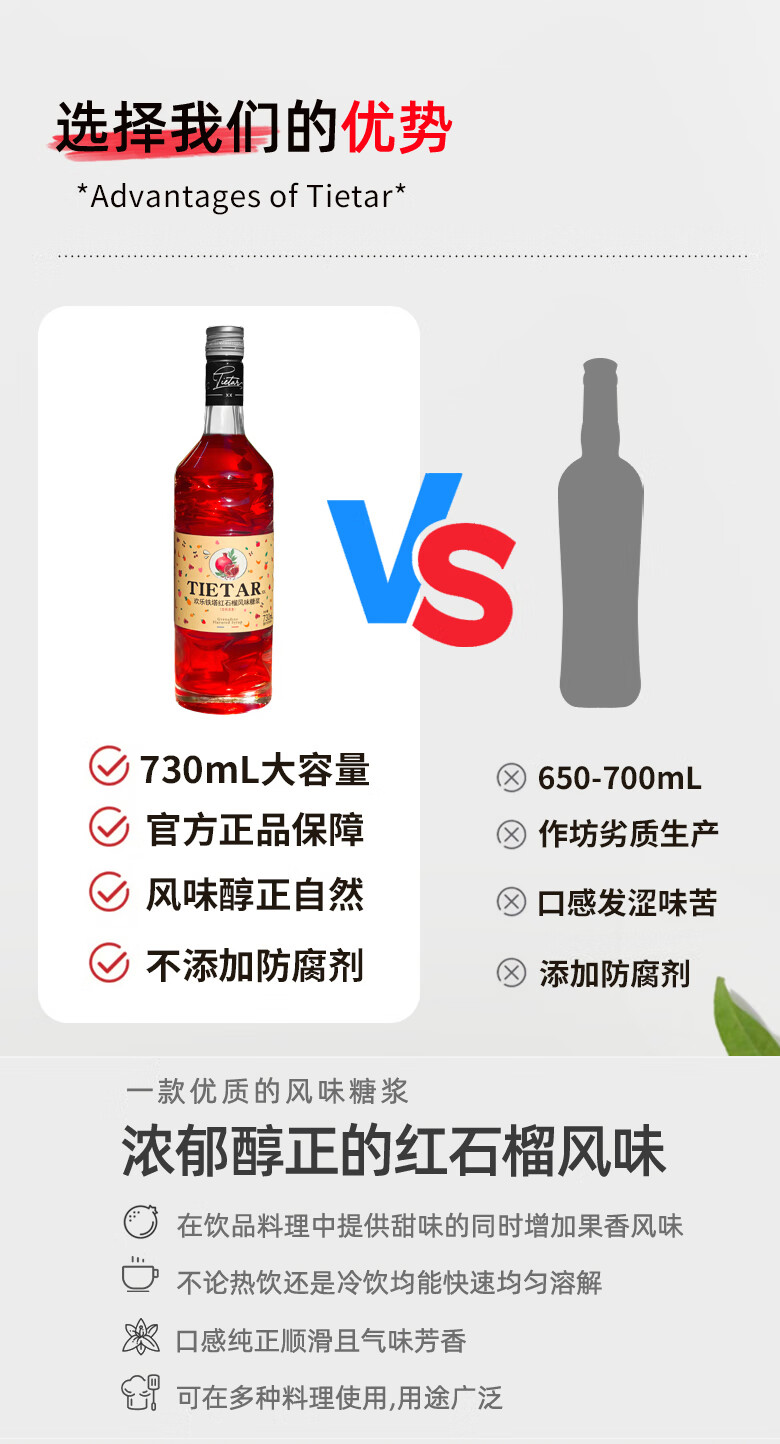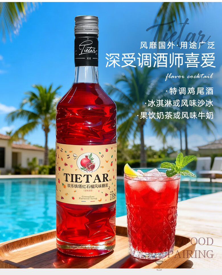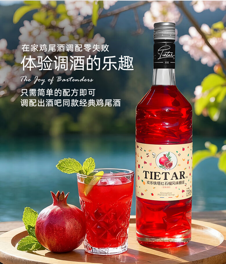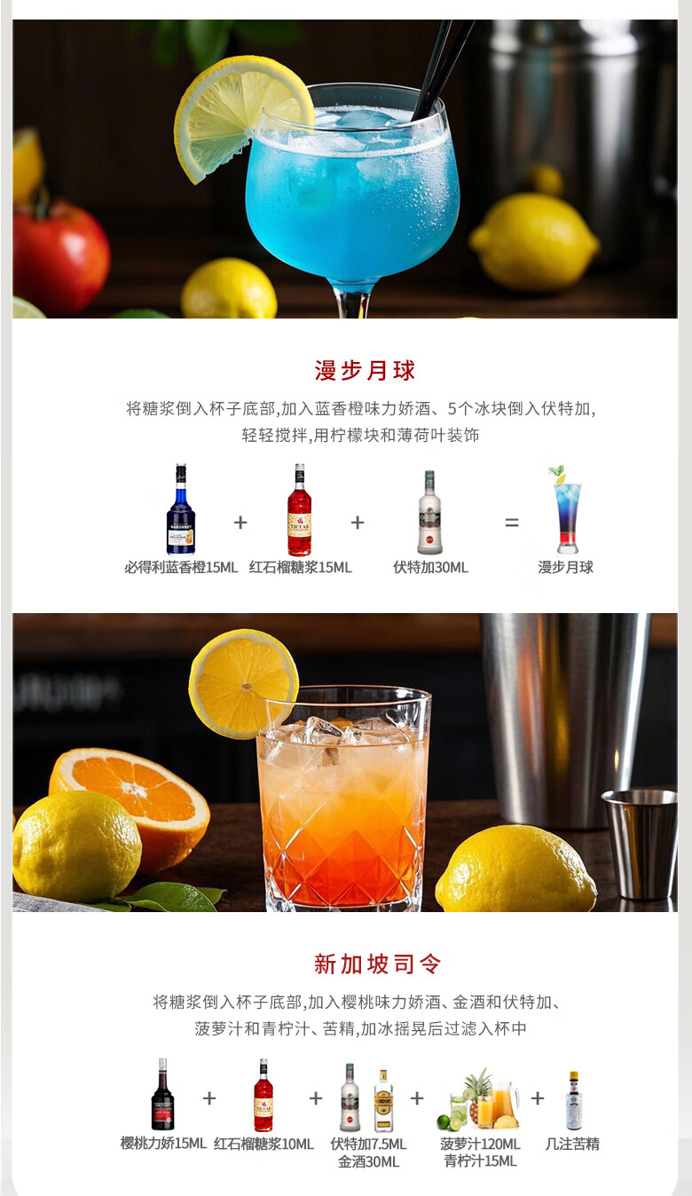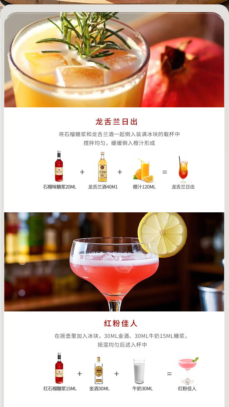 欢乐铁塔年货节 必得利红石榴糖浆调酒咖啡伴侣鸡尾酒基酒莫林力娇酒糖浆 【红石榴糖浆730ml*2】