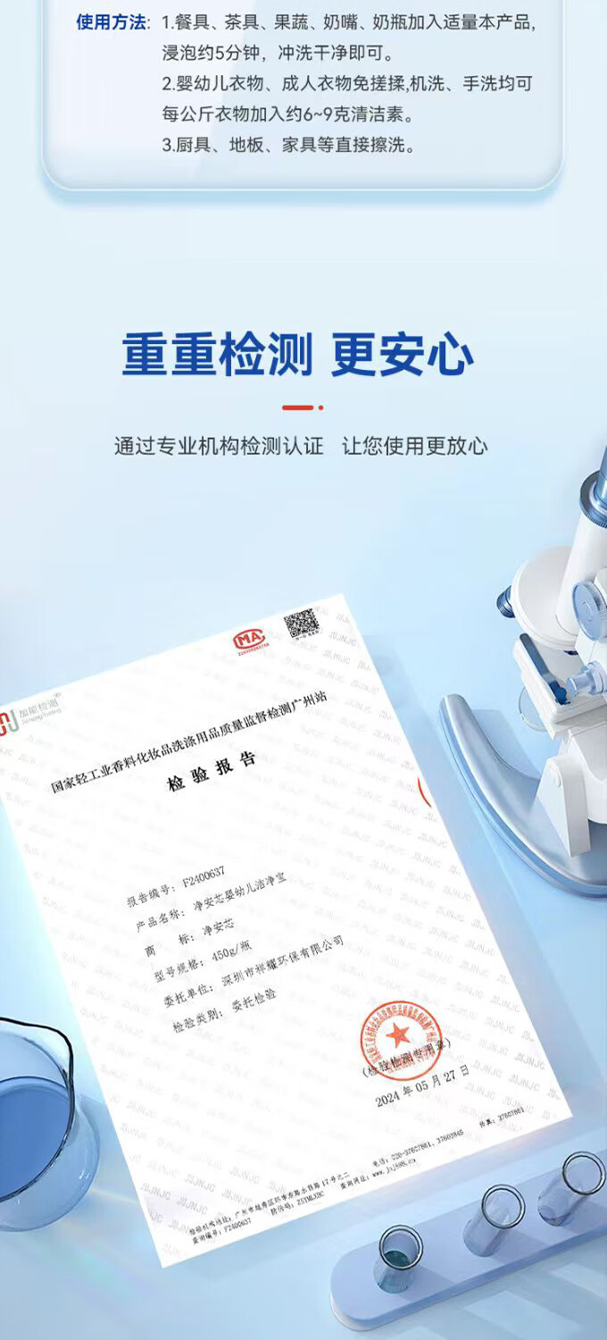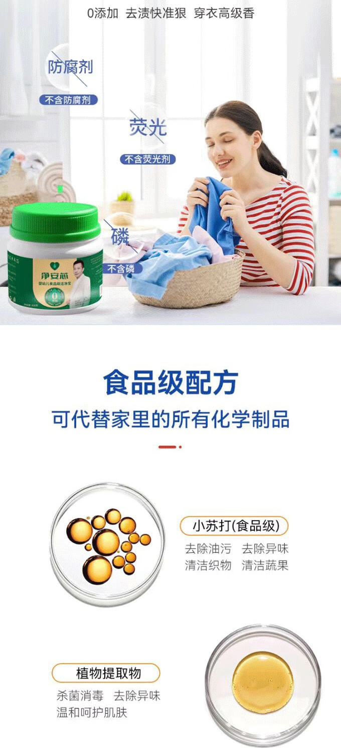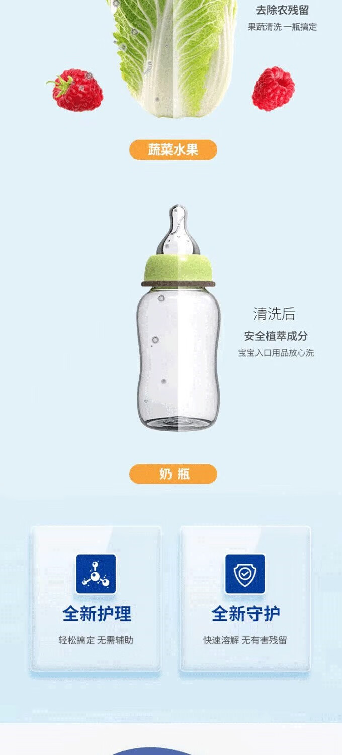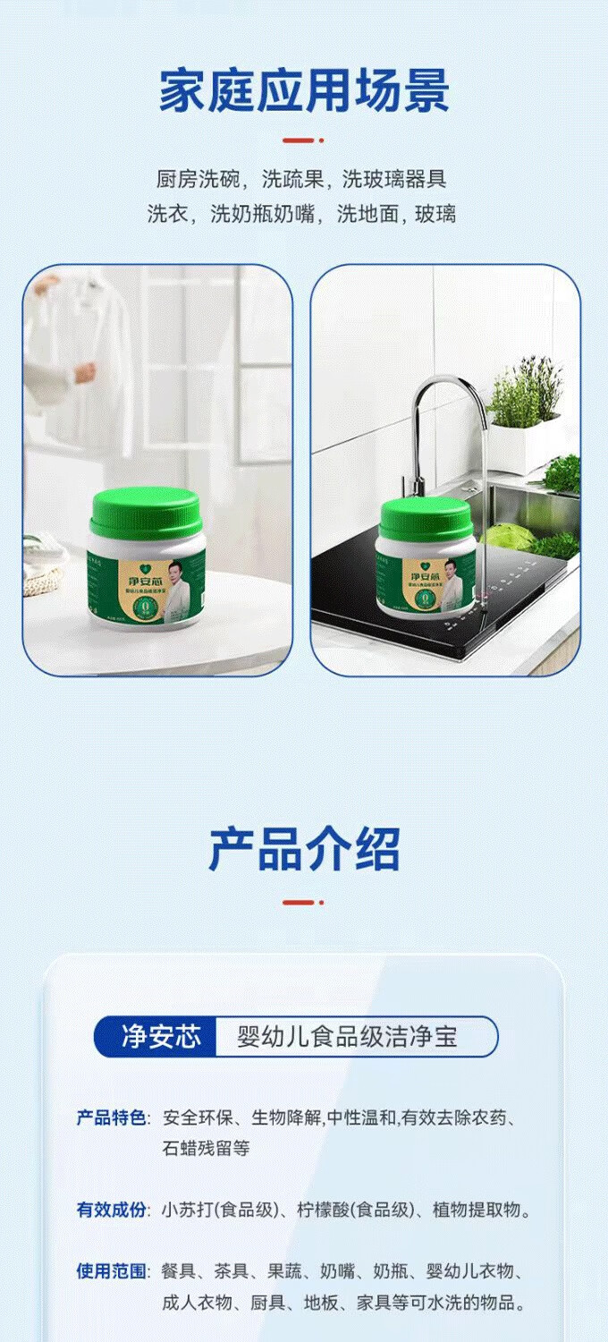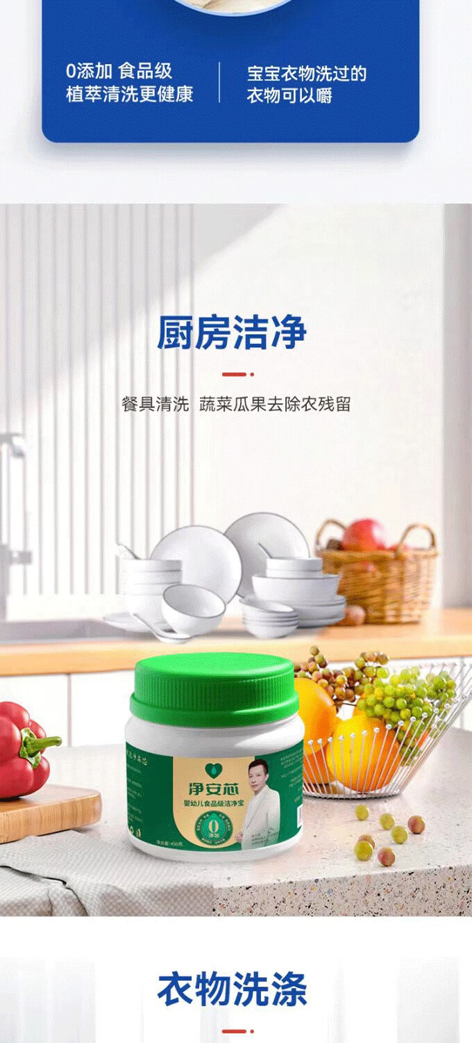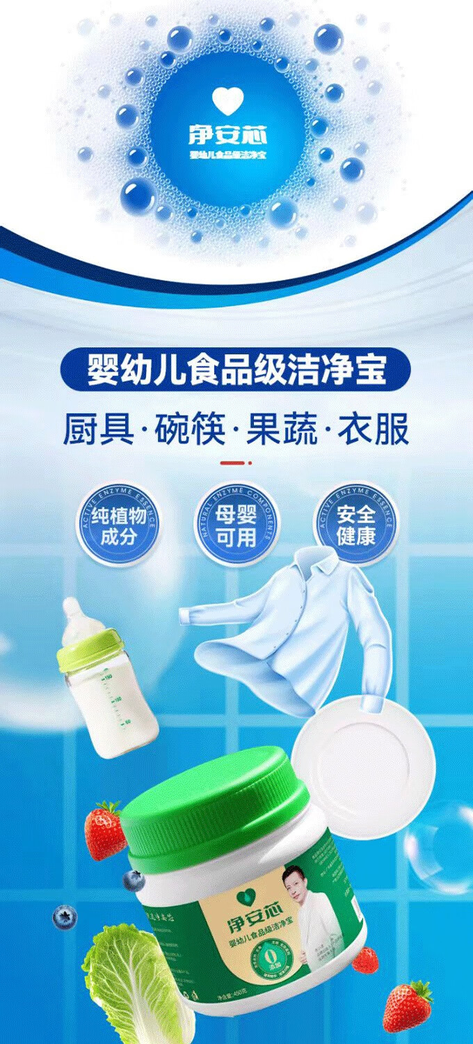 【净安芯】婴幼儿果蔬洁净宝 食品级配方 洗净餐具蔬果 450g/瓶