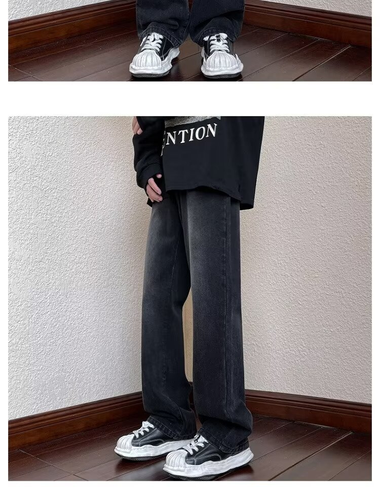 美式复古高街嘻哈春夏季渐变黑灰牛仔裤男宽松直筒阔腿潮长裤子男 XBNDMNZ-757黑色 S