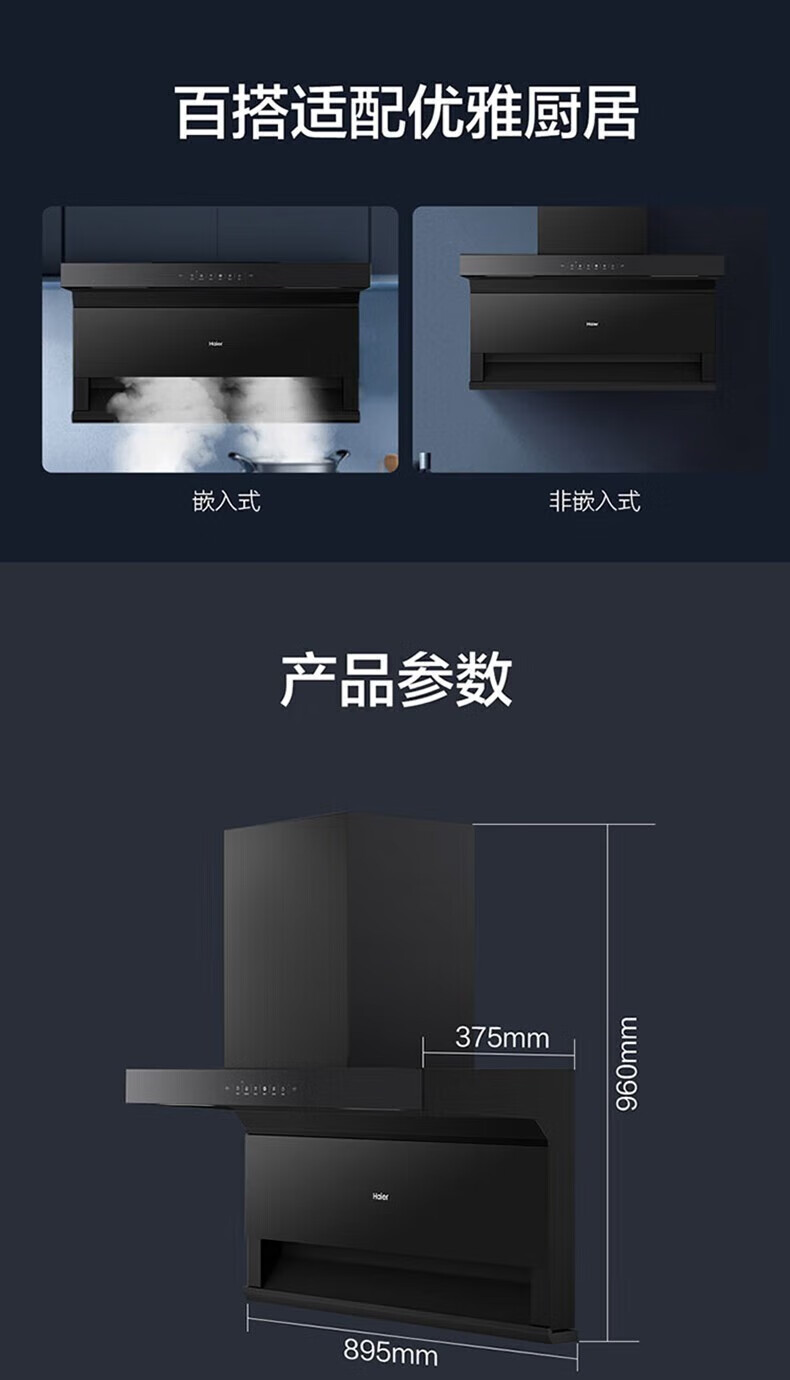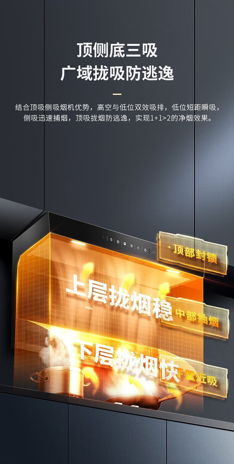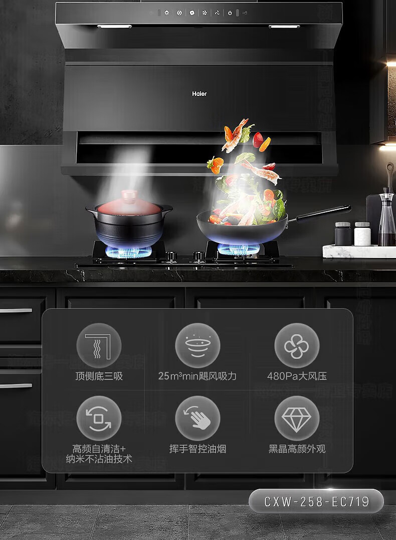 海尔家用抽油烟机燃气灶具套装 顶侧双三吸25立方大吸力强力吸排烟机一级能效以旧换新十大品牌EC719 CXW-258-EC719UD