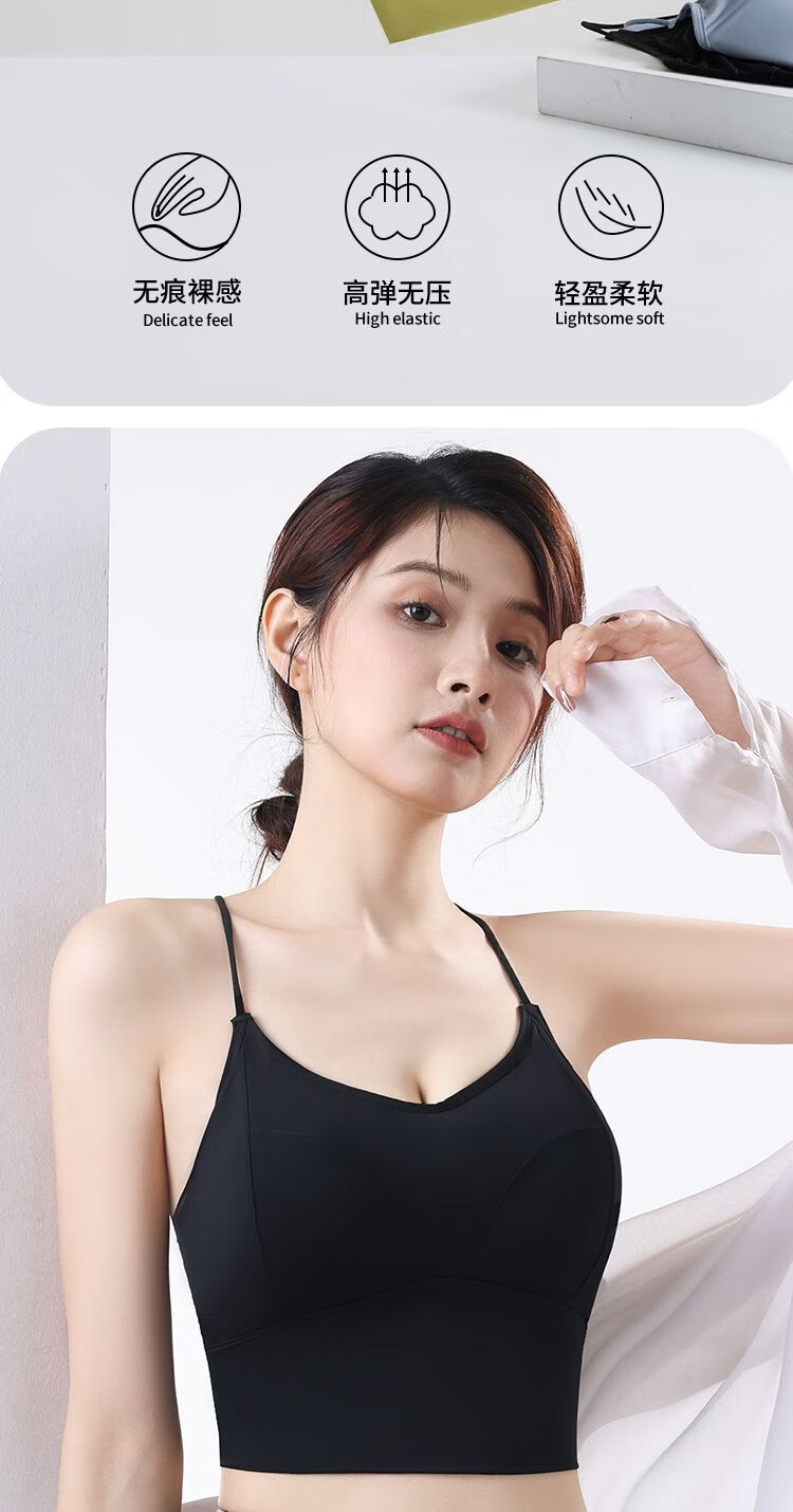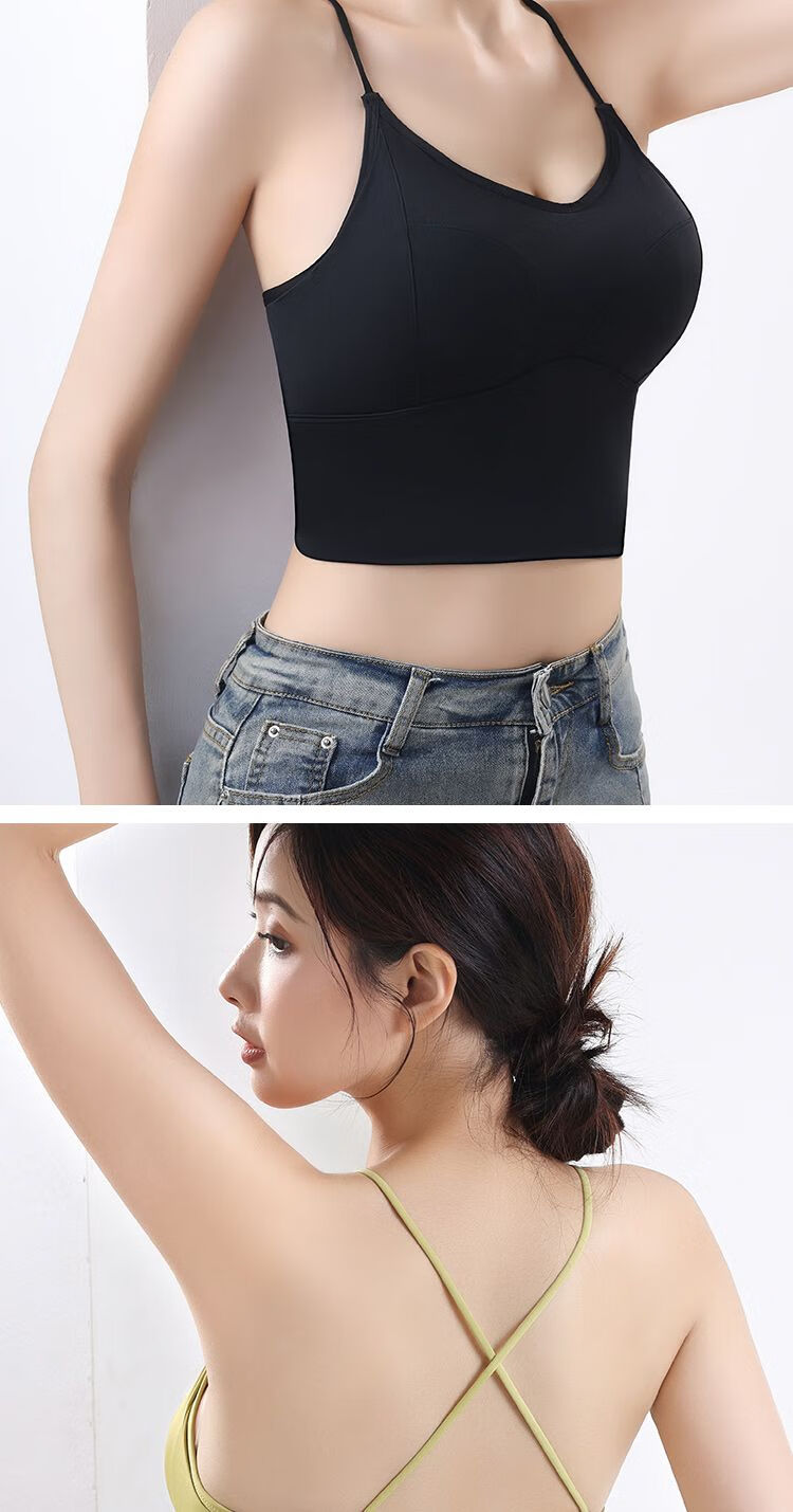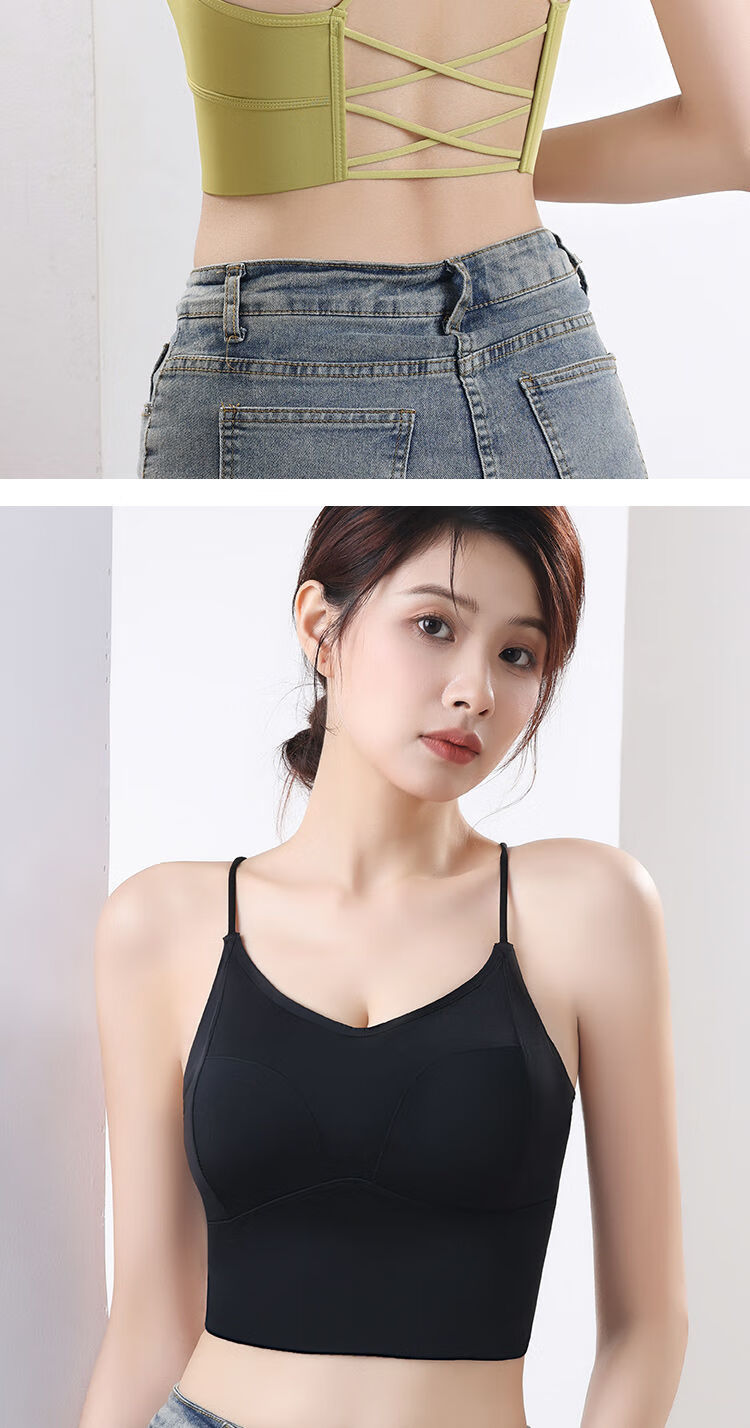 古今(GUJIN)细肩带美背小胸显大内衣防走光聚拢一体式无钢圈抹胸吊带背心打底 8829 黑色++果绿色 L  105-125斤内中厚1.8厘米
