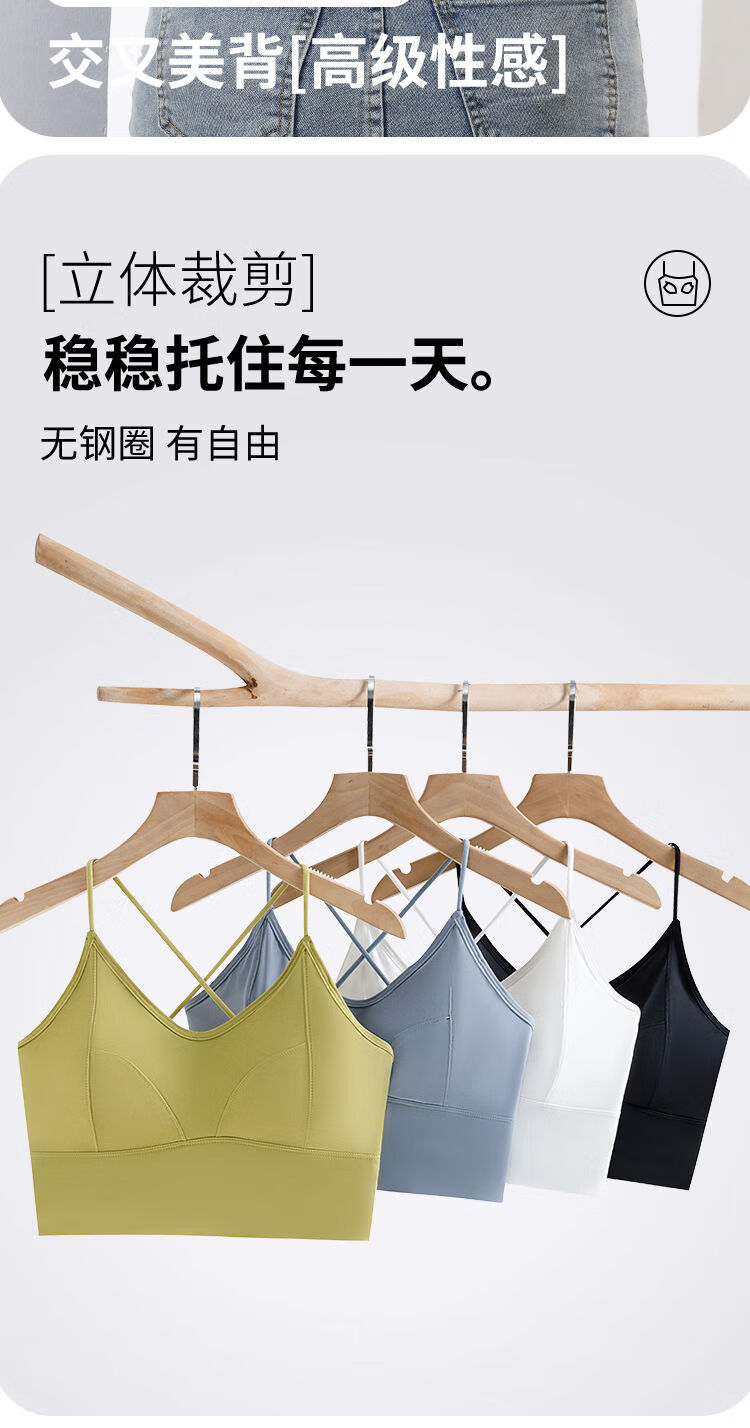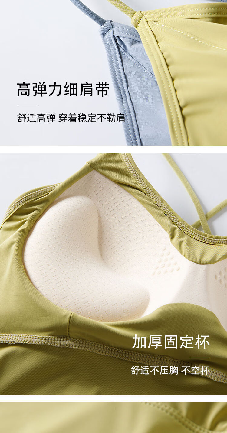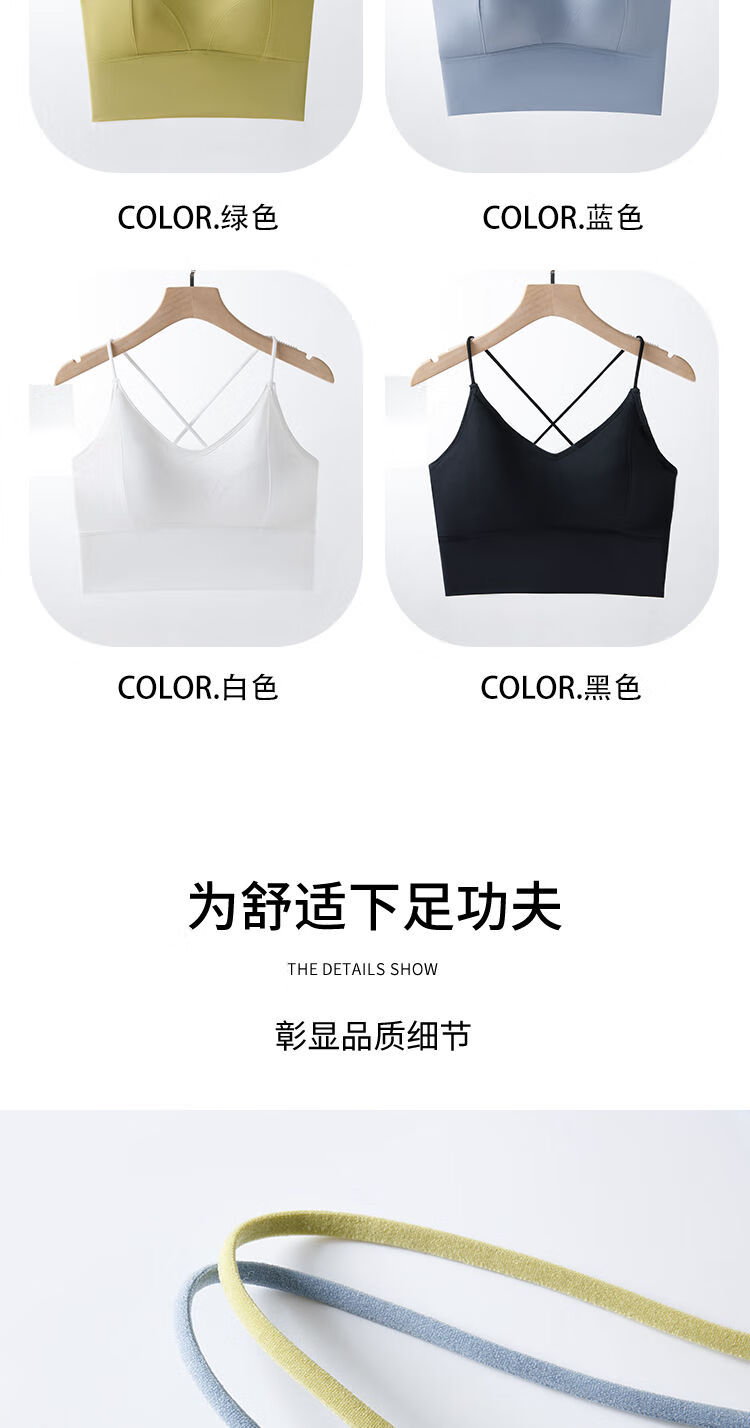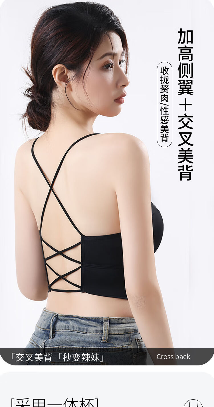 古今(GUJIN)细肩带美背小胸显大内衣防走光聚拢一体式无钢圈抹胸吊带背心打底 8829 黑色++果绿色 L  105-125斤内中厚1.8厘米