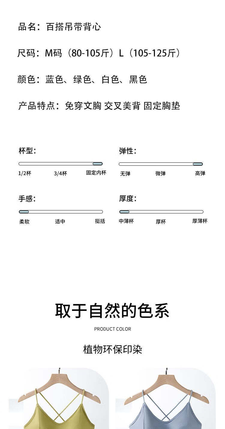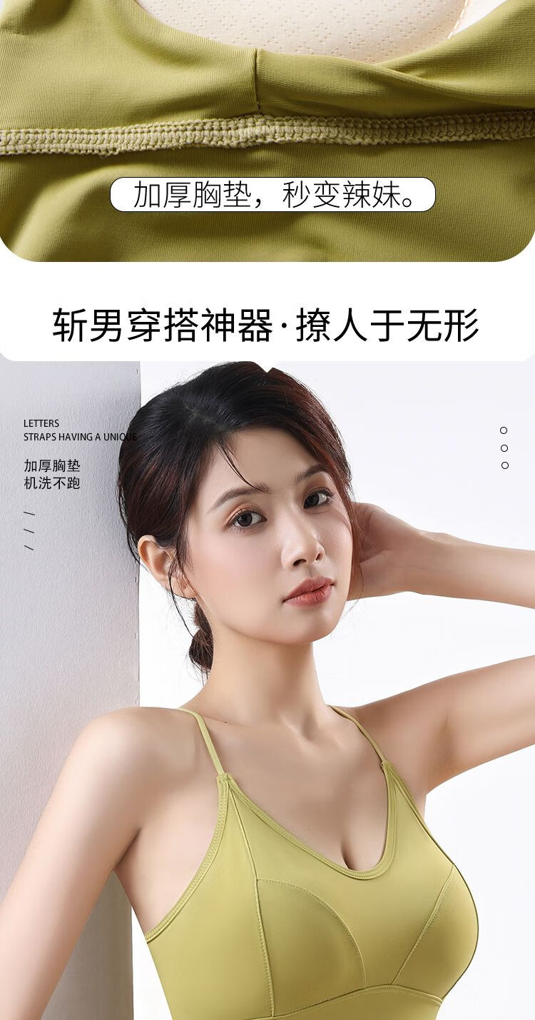 古今(GUJIN)细肩带美背小胸显大内衣防走光聚拢一体式无钢圈抹胸吊带背心打底 8829 黑色++果绿色 L 105-125斤内中厚1.8厘米
