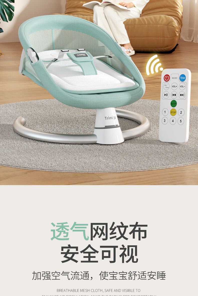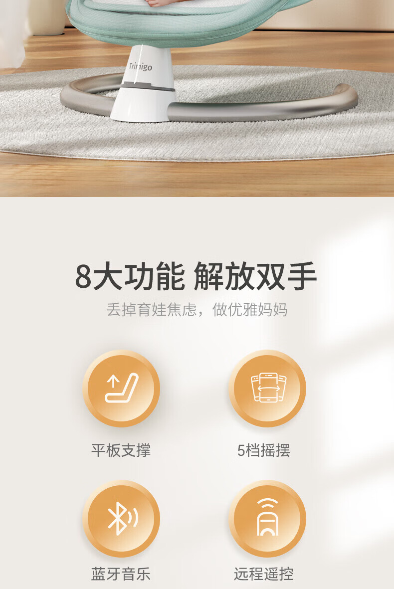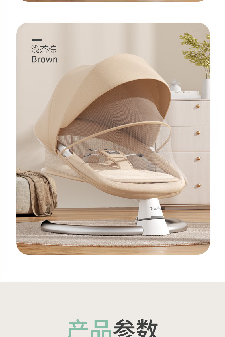 泰美高可躺婴儿摇摇椅新生儿哄娃神器婴儿用品宝宝摇椅安抚摇篮男女礼物 出生见面礼婴儿用品摇摇-棕