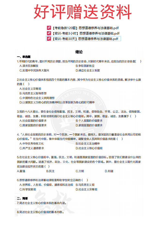 自考15042(原03706)思想道德修养与法律基础历年真题视频网课资料 押题班(咨询客服)