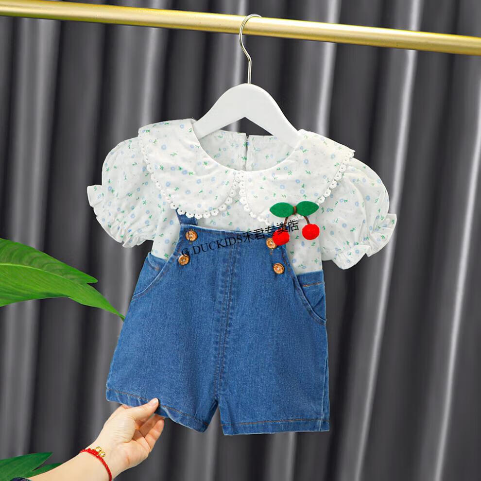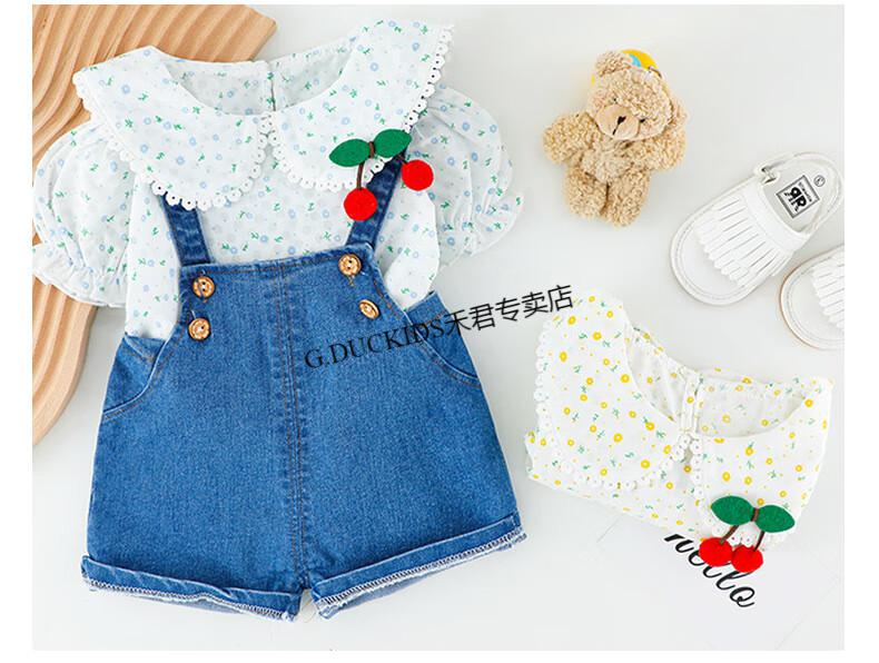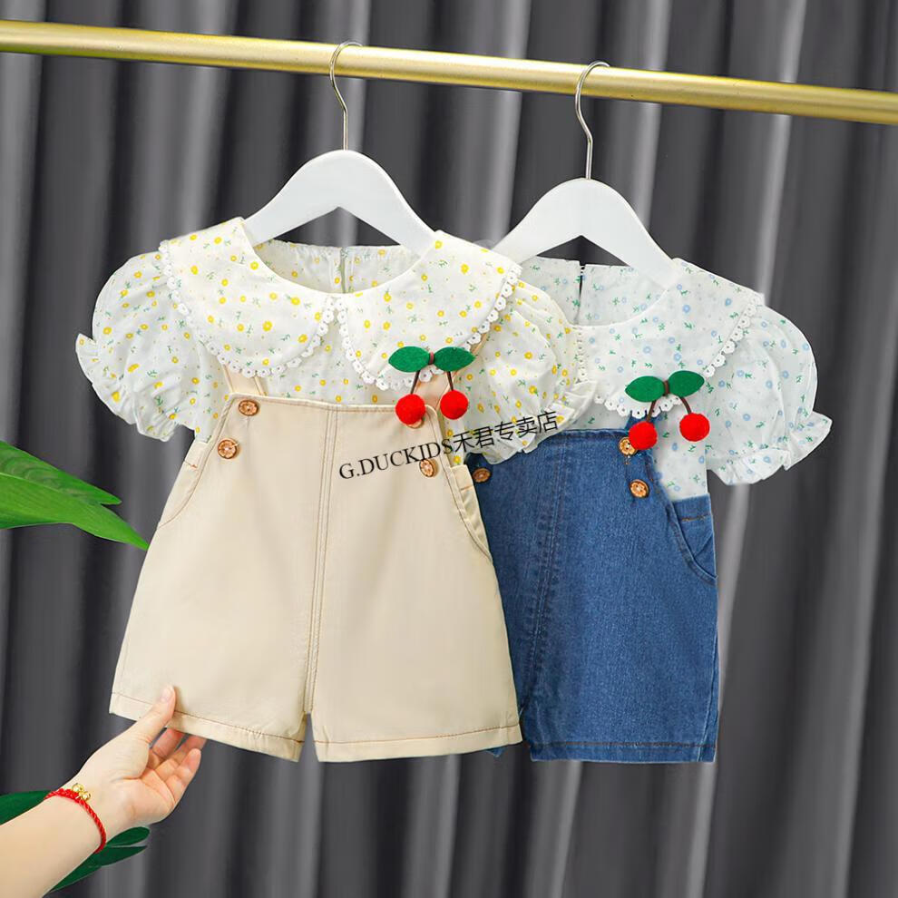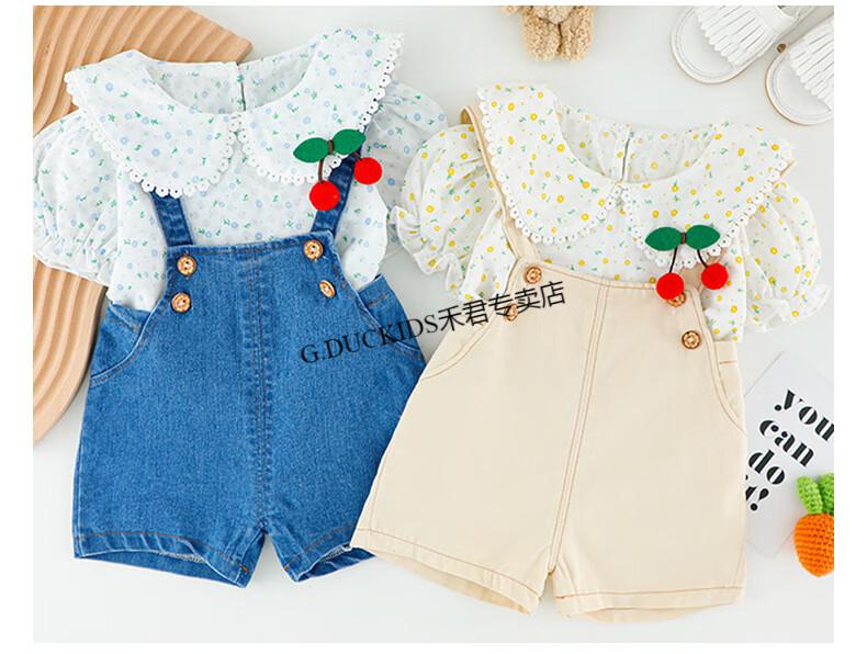 G.duck pequeño pato amarillo bebé niña pantalones cortos con tirantes de manga corta traje nuevo estilo de verano ropa de bebé niñas delgadas de dos piezas traje corto con tirantes beige 100 cm