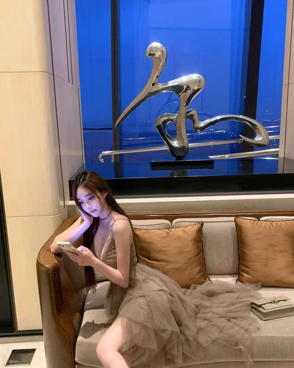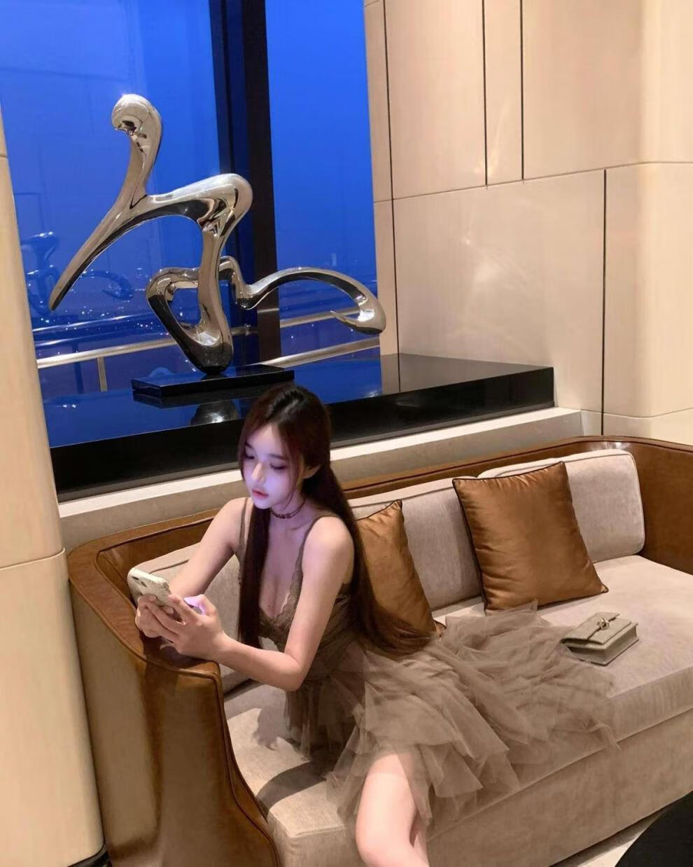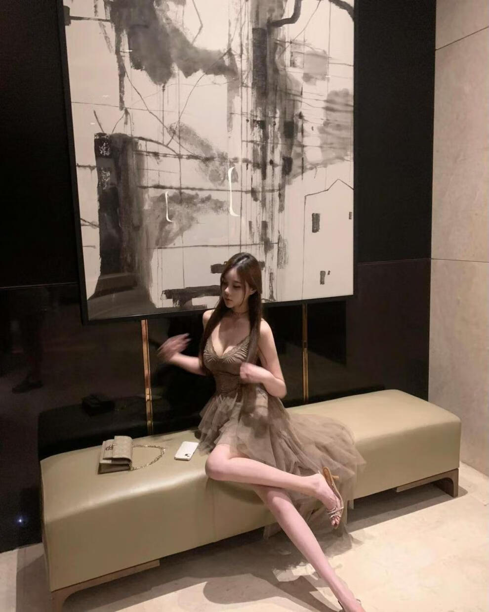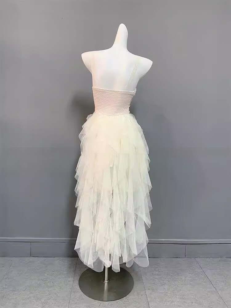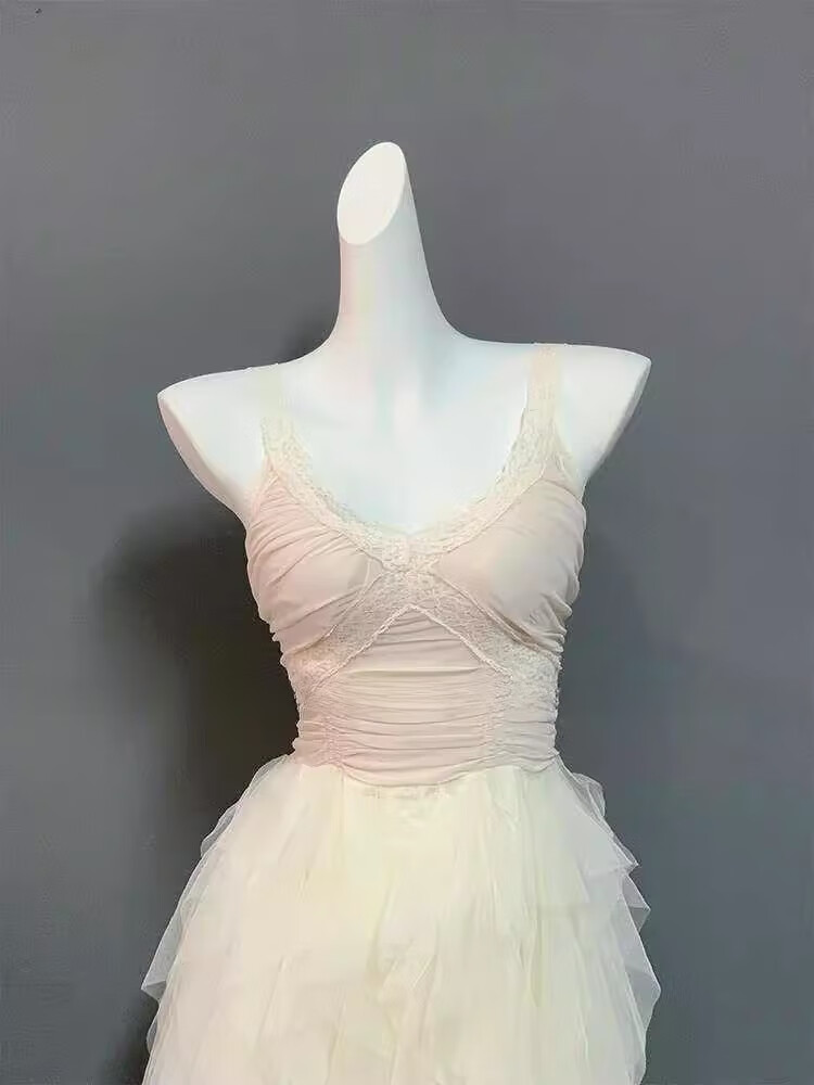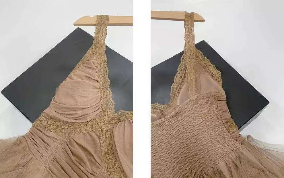 闪动少女(SHANDONGSHAONV)法式吊带连衣裙女感气质名媛生日party小礼裙网纱拖尾公主裙 咖色吊带连衣裙(版) M