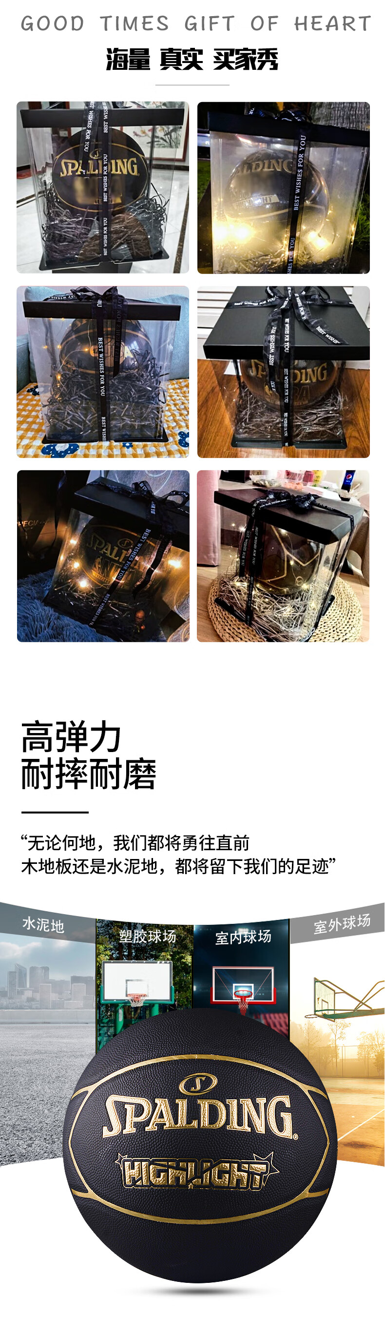 SPALDING Basketball Gift Valentine's Day for Boyfriend No. 7 PU Luminous Reflective Birthday Gift Box Boys' Ball 76-867Y Silver Blue Five-Pointed Star Gift Box Safety-Free No. 7 Basketball (Standard Ball)
