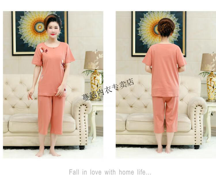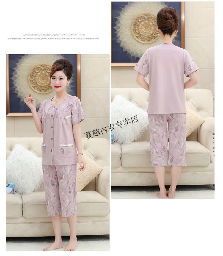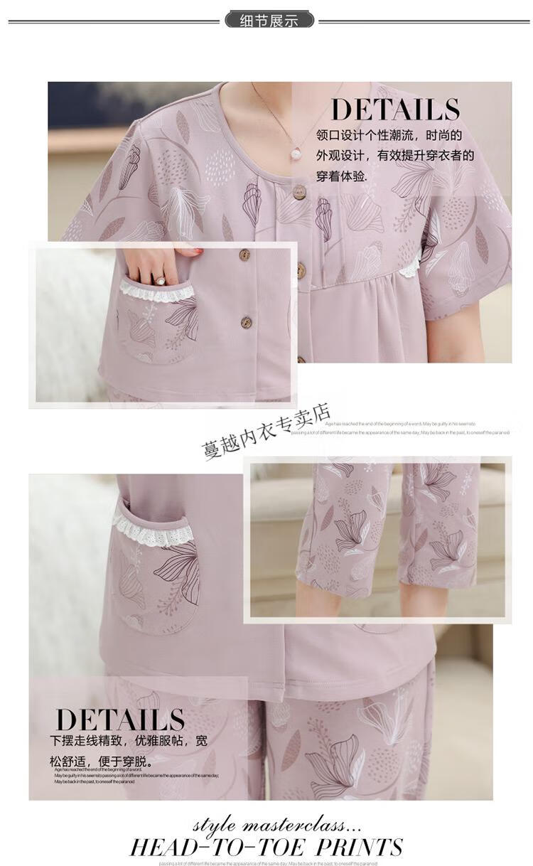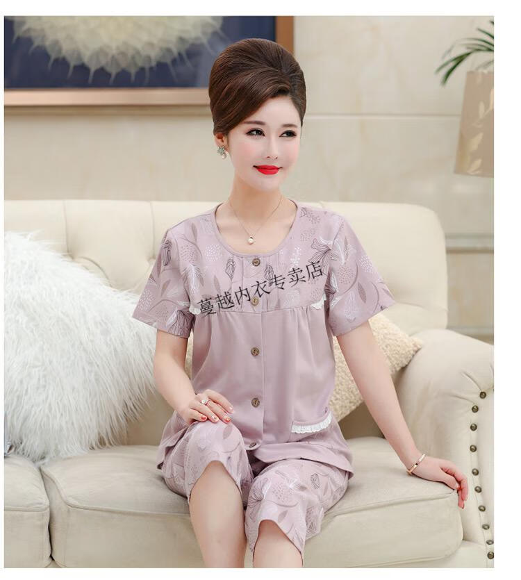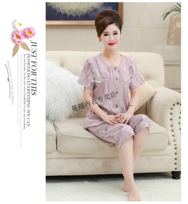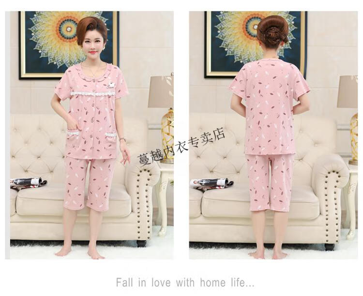 莫代尔睡衣女2026新款中年妈妈短袖七分裤夏季纯棉开衫加大码家居服套装 LM-6626【开衫款】 2XL 【建议140-160斤】